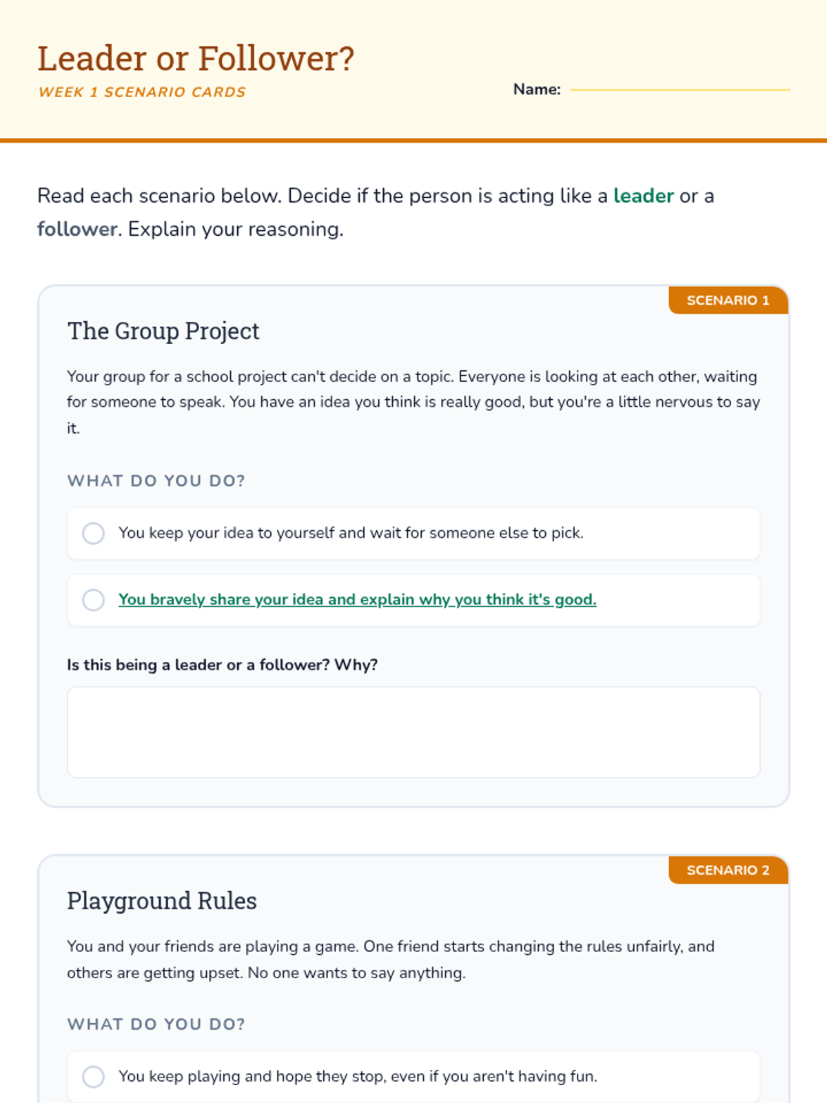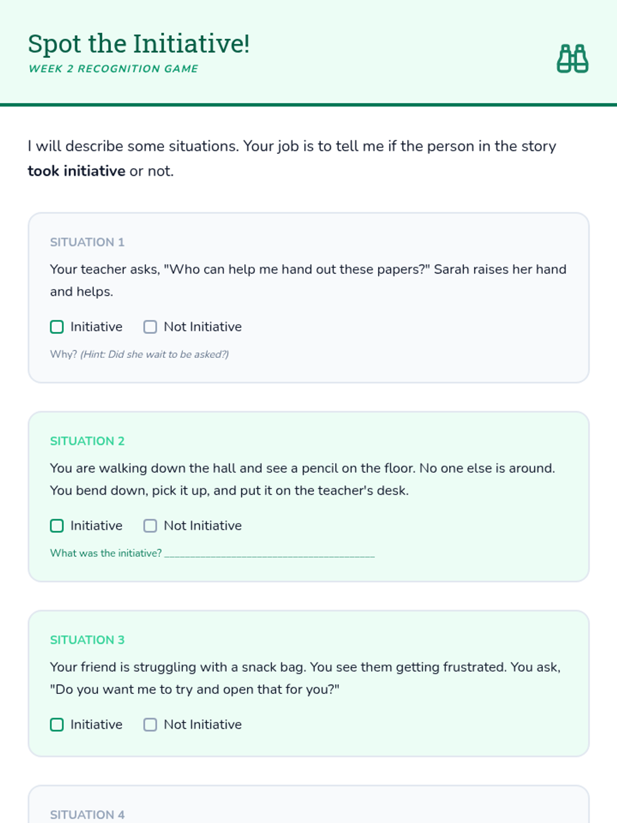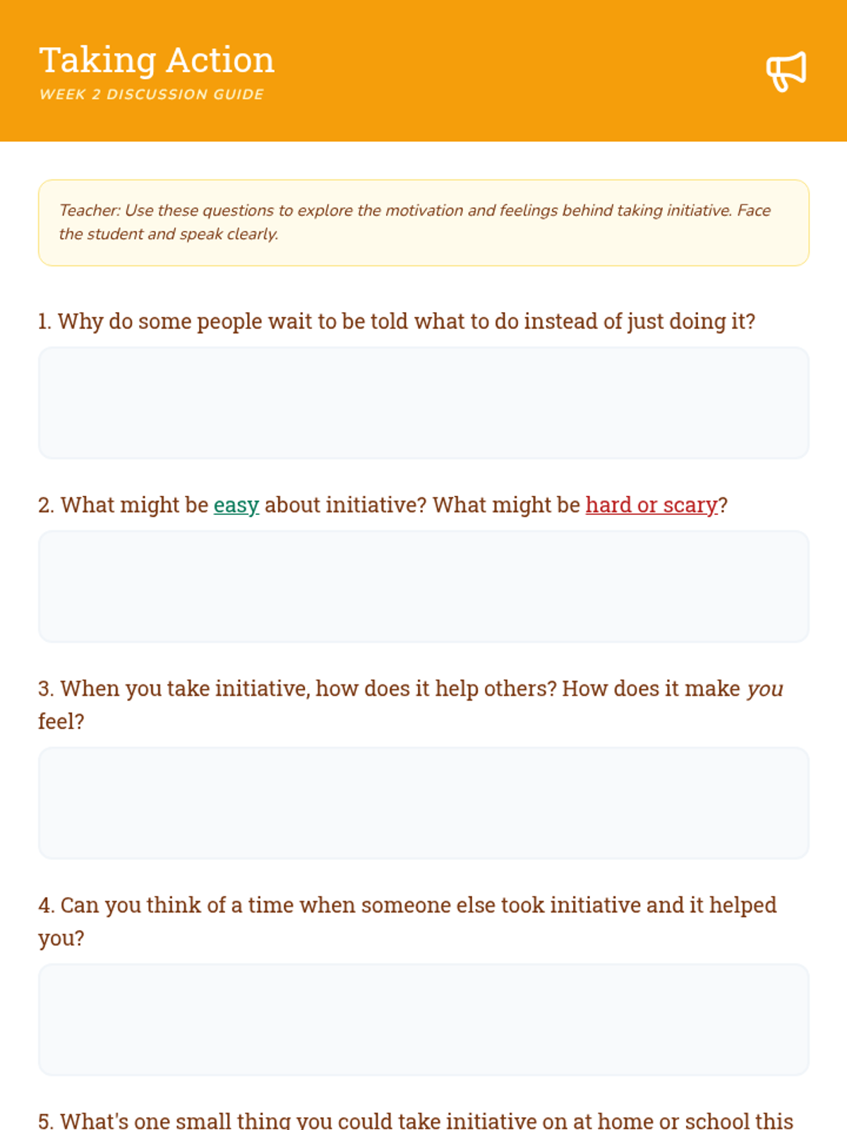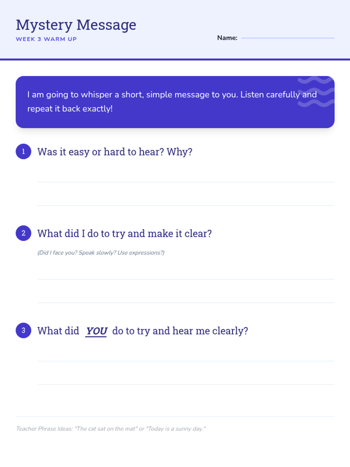 A 5-week leadership development series for 4th-grade students, specifically designed to be accessible for students who are hard of hearing. This sequence focuses on initiative, communication, problem-solving, empathy, and confidence.