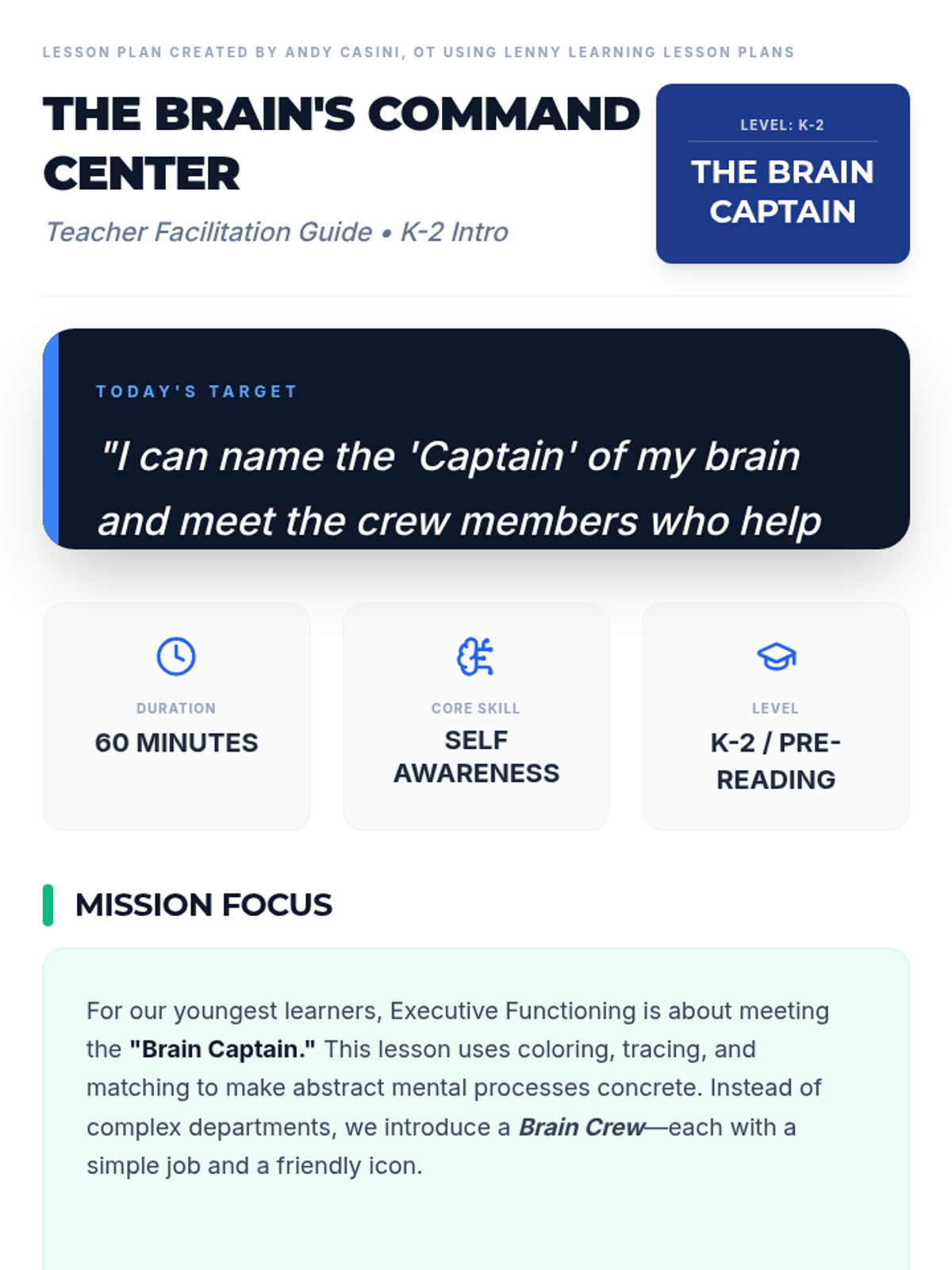 A 10-week comprehensive module designed to teach and strengthen core Executive Functioning skills in K-3 students. The module uses a 'Command Center' theme to make abstract mental processes concrete and manageable.