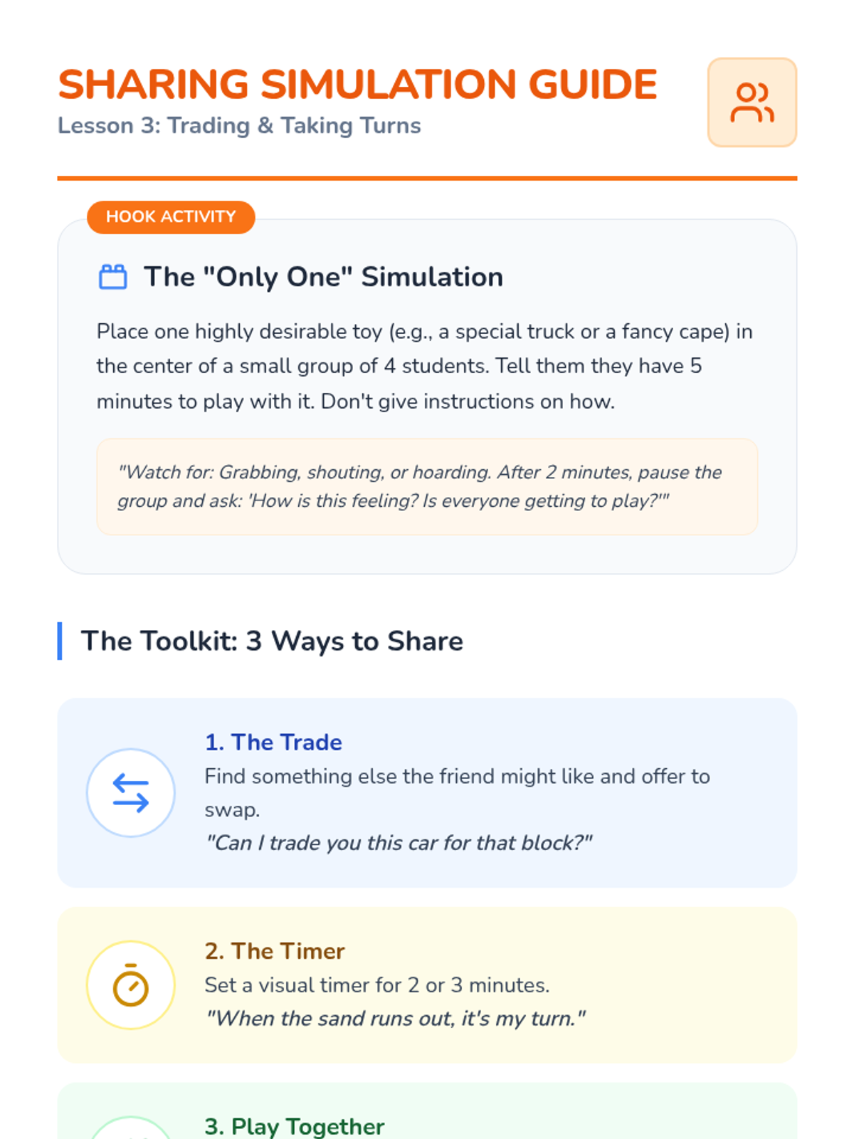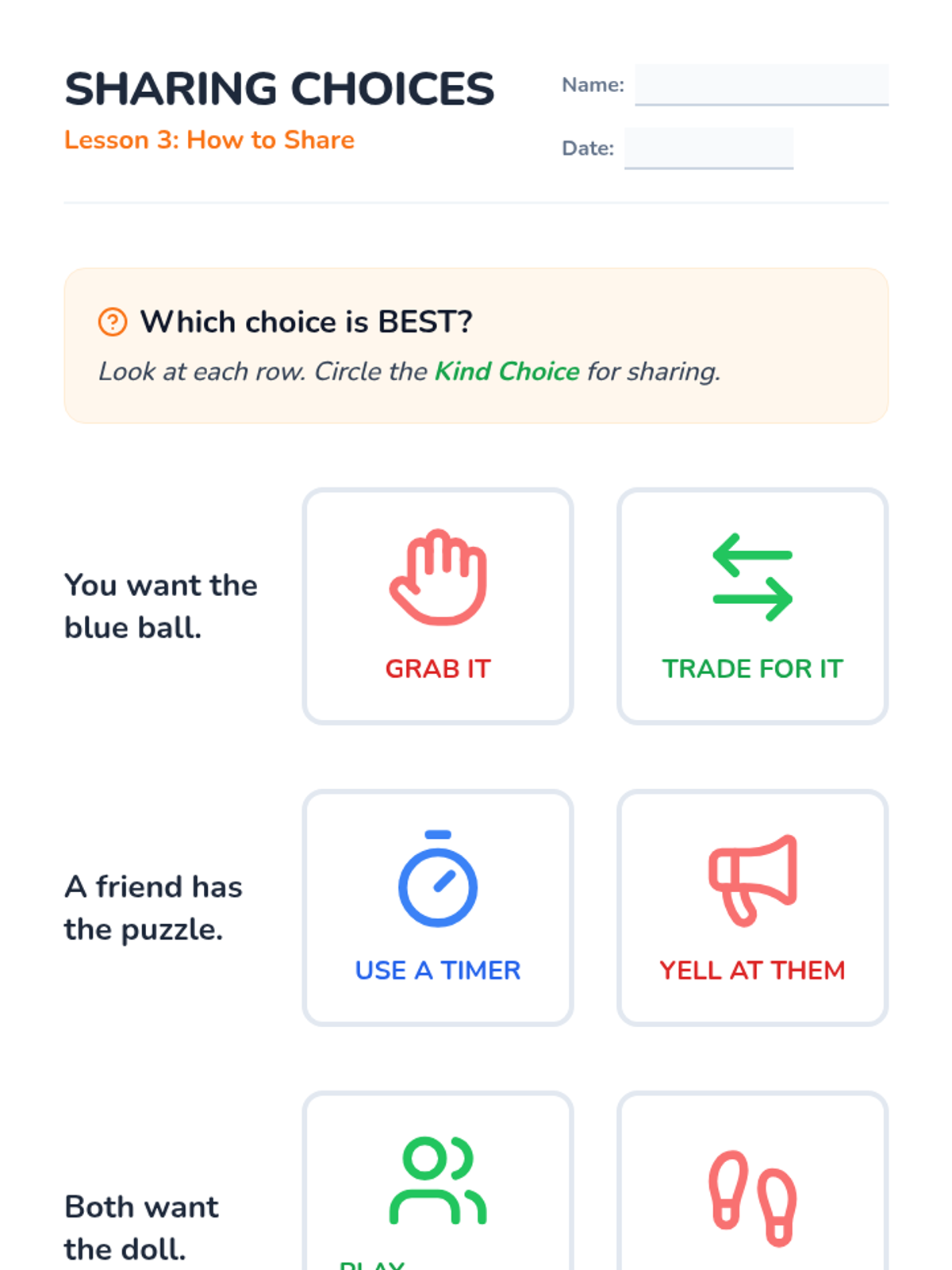 A 6-lesson sequence for preschool students focusing on a 5-step problem-solving process applied to common social scenarios like sharing, joining play, personal space, and accidents.