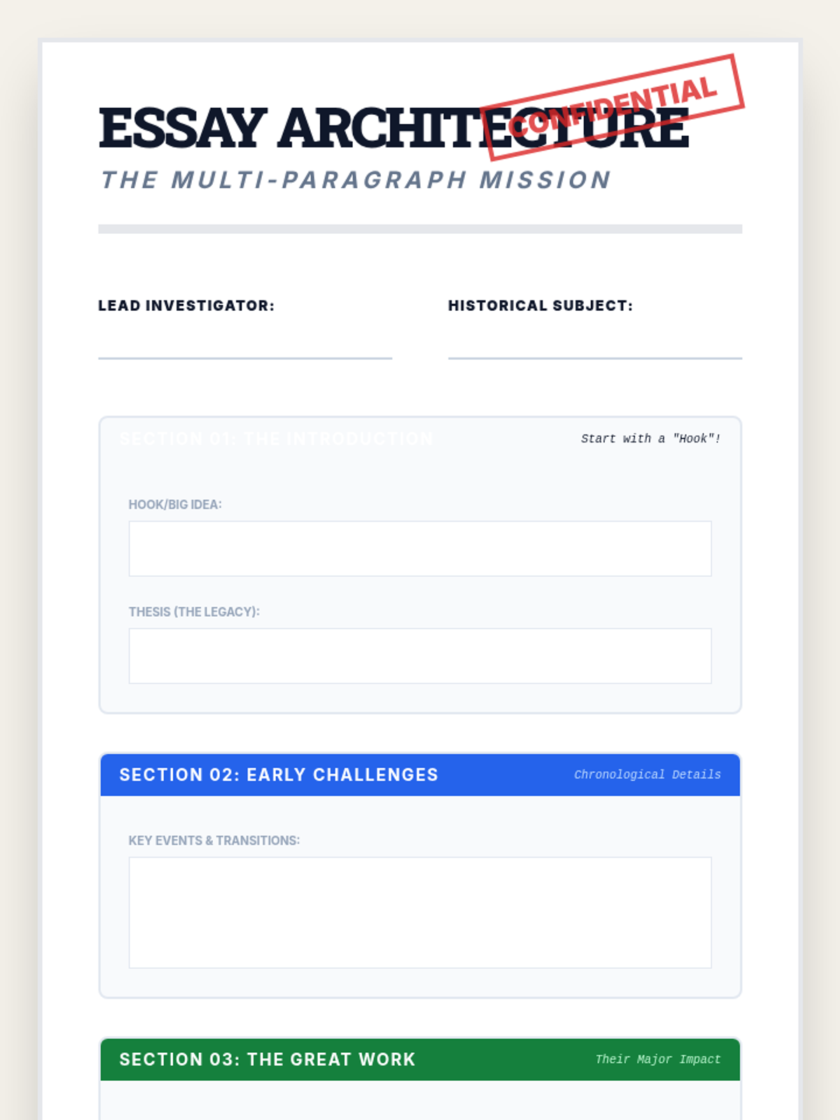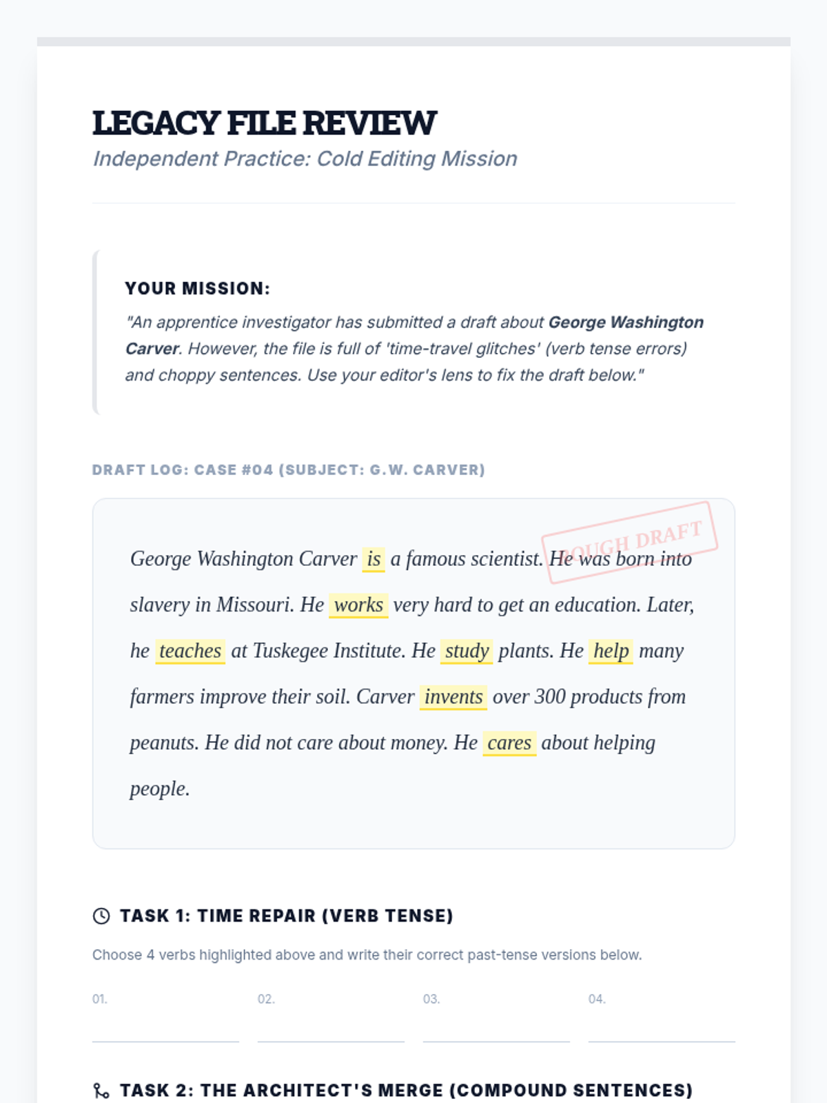A 10-session unit for 5th graders focusing on the transition from paragraph to essay writing through the lens of biography. The unit covers sentence variety, chronological sequencing, paragraph structure, and grammar, tailored for small group instruction with differentiated support.