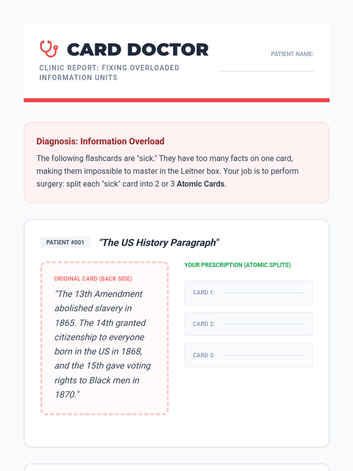 A comprehensive workshop sequence for 11th-grade students to master information using the physical Leitner System. Students build a tactile organization system, learn to synthesize complex content into atomic units, and develop executive function habits for consistent memory retention.
