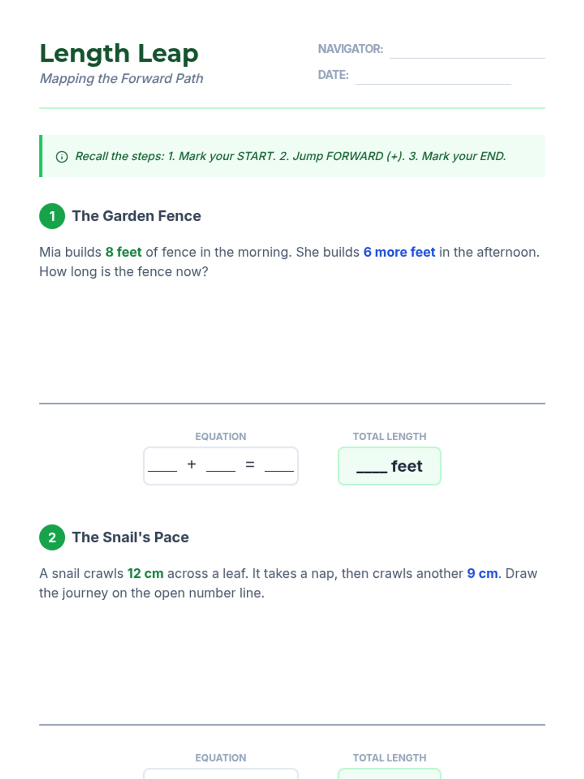 A 3rd-grade sequence focused on representing length problems using number line diagrams, transitioning from concrete rulers to abstract visual models. Students learn to model addition and subtraction word problems as movements along a number line.