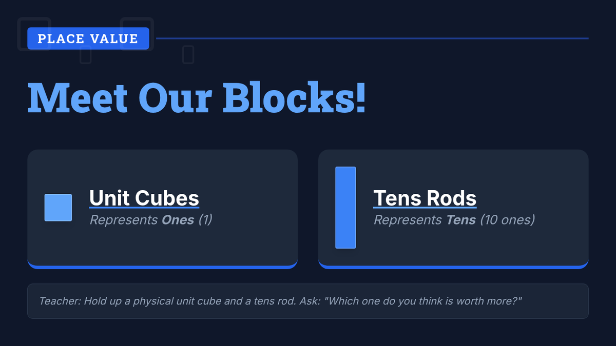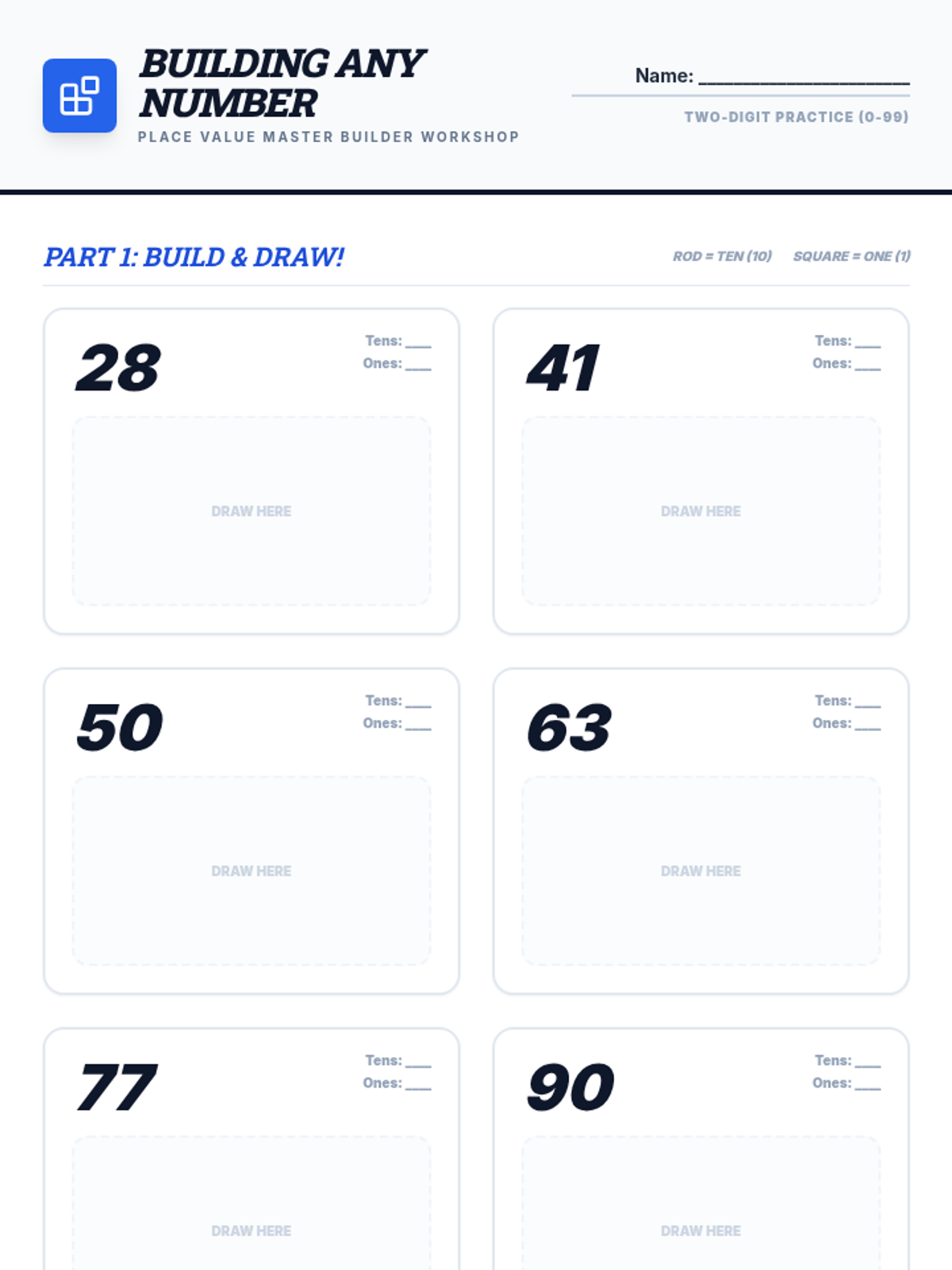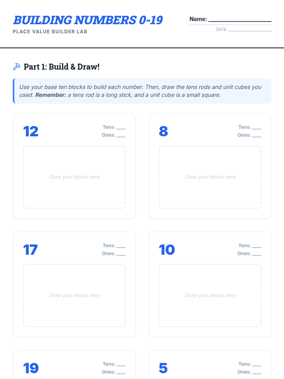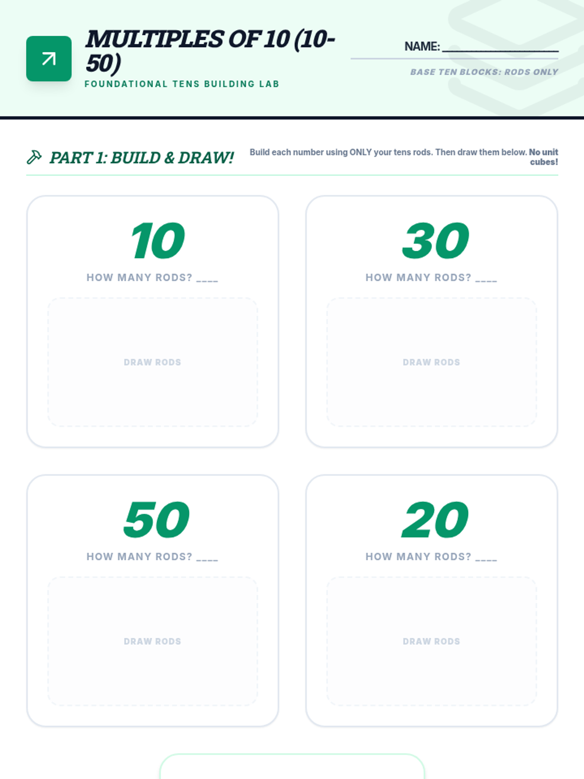 This four-day 1st-grade sequence integrates length comparison and measurement with foundational place value and number building. Students explore direct comparison, ordering, and non-standard measurement while simultaneously mastering the representation of numbers 0-99 and multiples of 10 using base ten blocks.