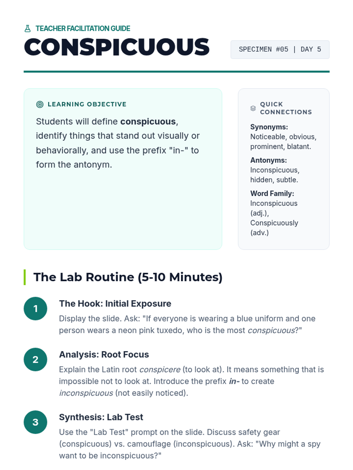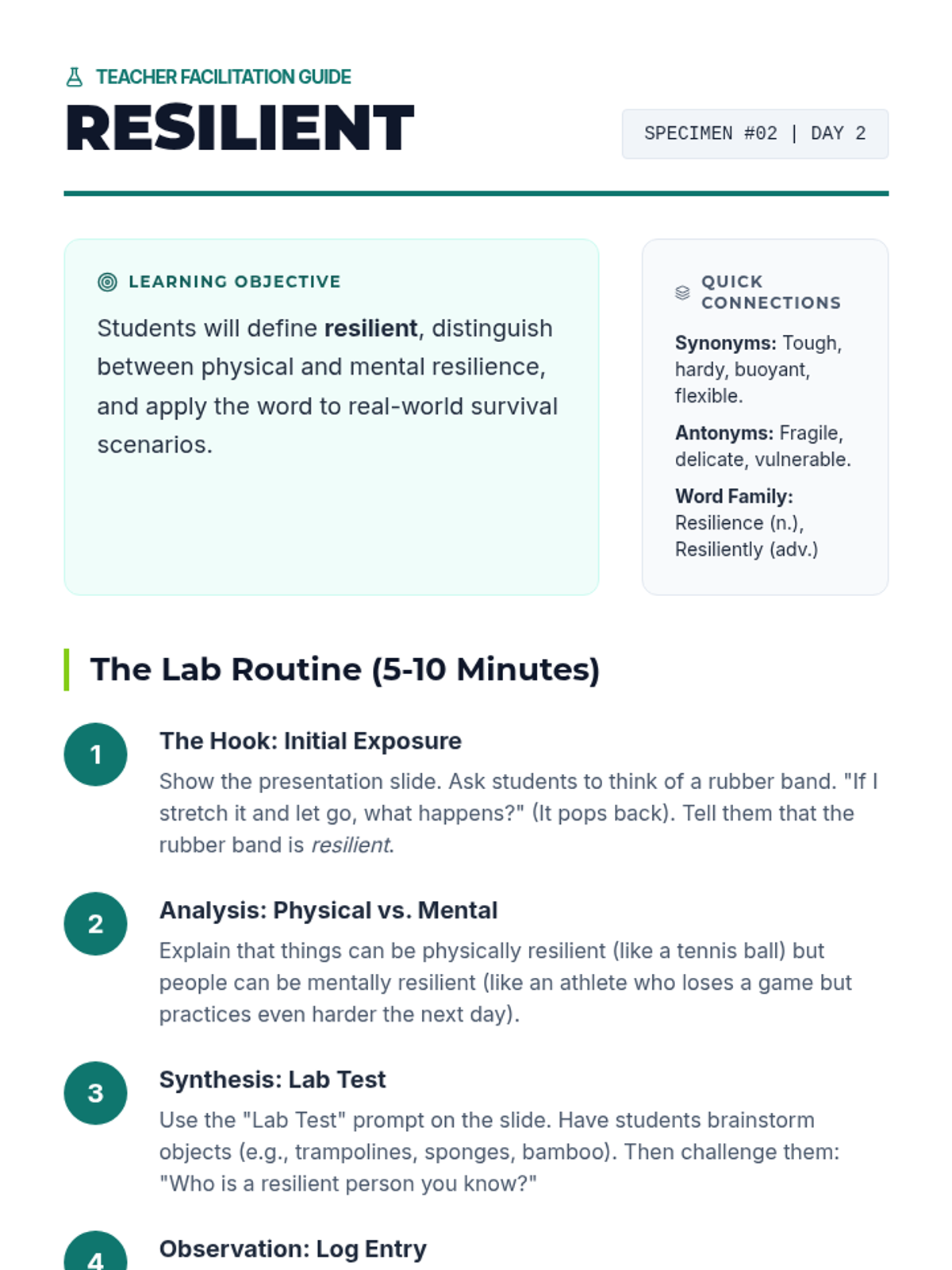 A 5-day vocabulary intensive for sixth-grade students focused on high-utility tier-2 words. Includes daily mini-lessons, presentation slides, and a weekly student tracking log.