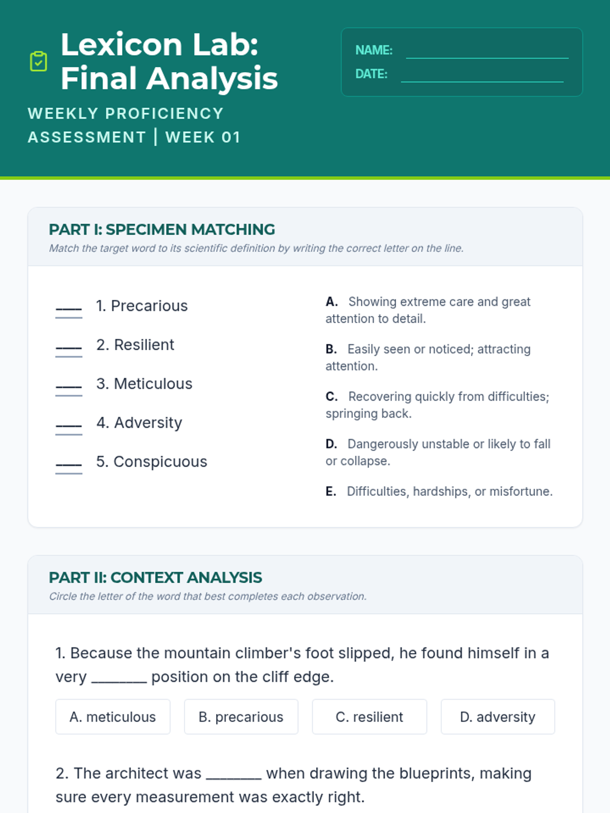 A series of mini-lessons exploring literary elements through the lens of a 'Word Lab', focusing on how precise word choices function like chemical ingredients to build atmosphere and character.