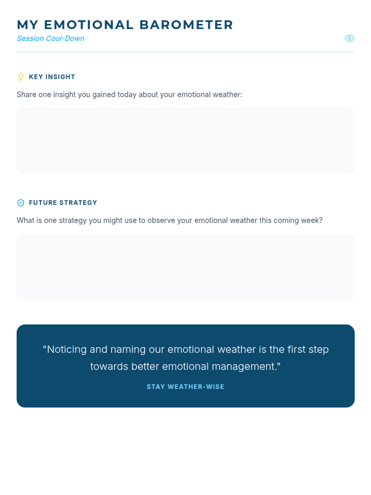 A series of three interactive counseling sessions for middle and high school students, focusing on self-discovery, emotional regulation, and future planning. Using a 'Blueprint' aesthetic, students engage in hands-on activities to map out their internal identities, manage external stressors, and construct actionable goals.
