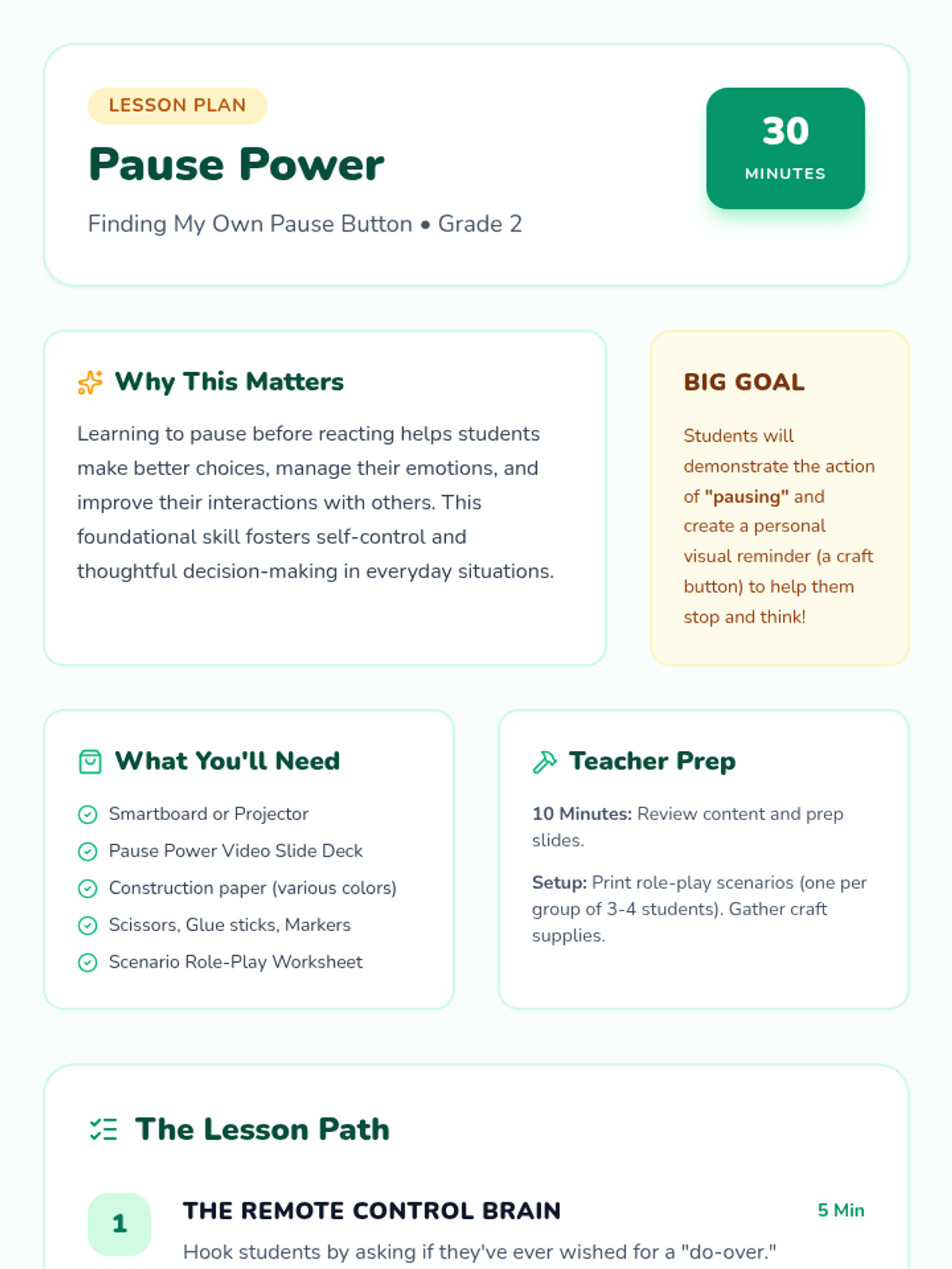 A high-impact 5-lesson sequence designed for credit-deficient high school sophomores to reclaim their academic path. The curriculum reframes impulse control as a strategic 'power move' for achieving independence, career success, and graduation through cognitive discipline and environmental awareness.