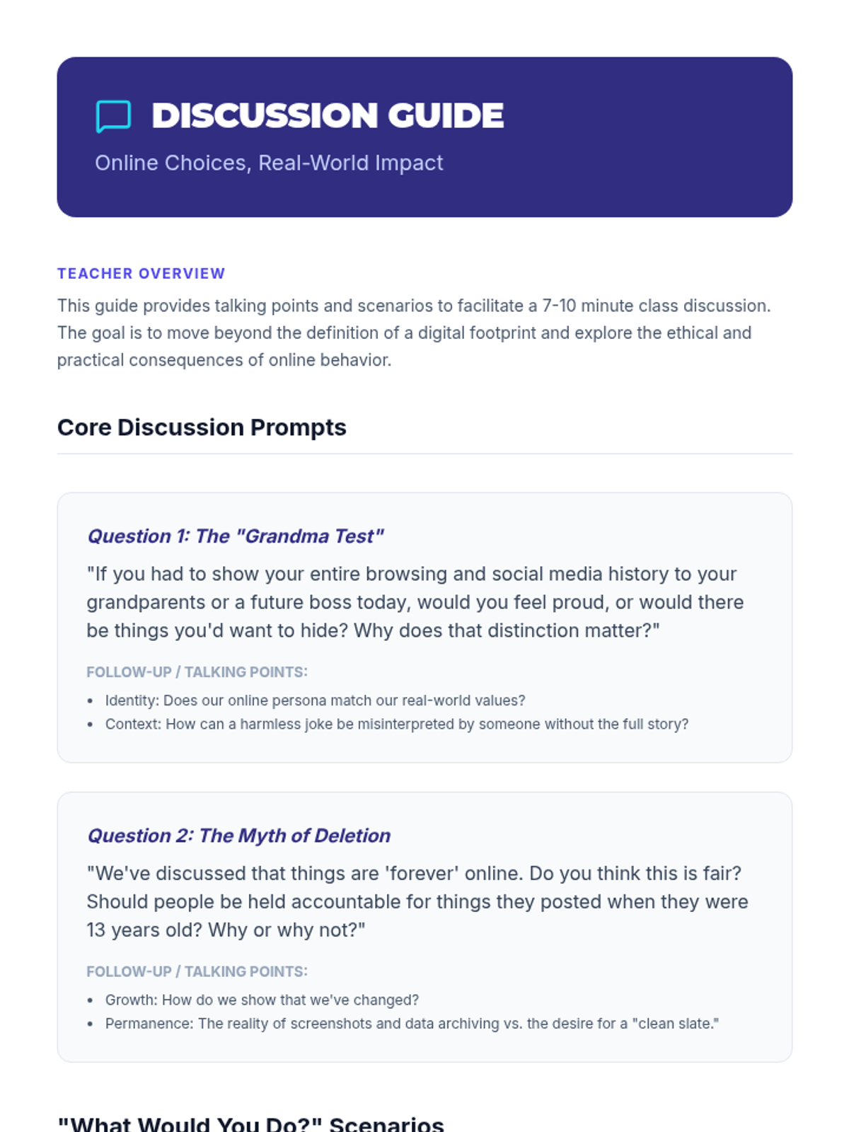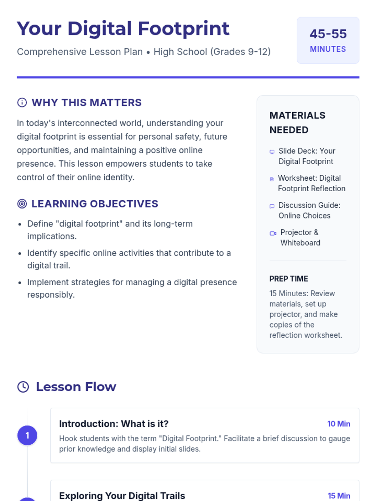 A collection of lessons designed to help students navigate their digital lives and emotional reactions with intention. Features a high school lesson on digital footprints and a 2nd-grade lesson on emotional self-regulation.