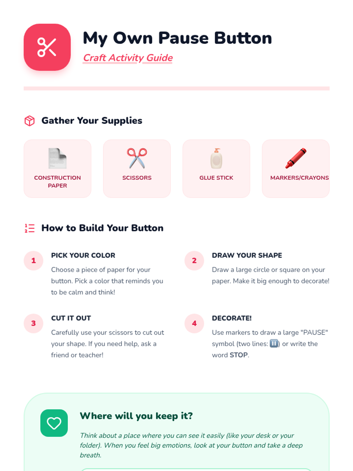 A 4-session small group counseling program for high school girls focused on identifying anxiety triggers, practicing mindfulness, and developing a personalized toolkit of coping strategies. The sequence emphasizes peer support, empowerment, and practical application within the school environment.