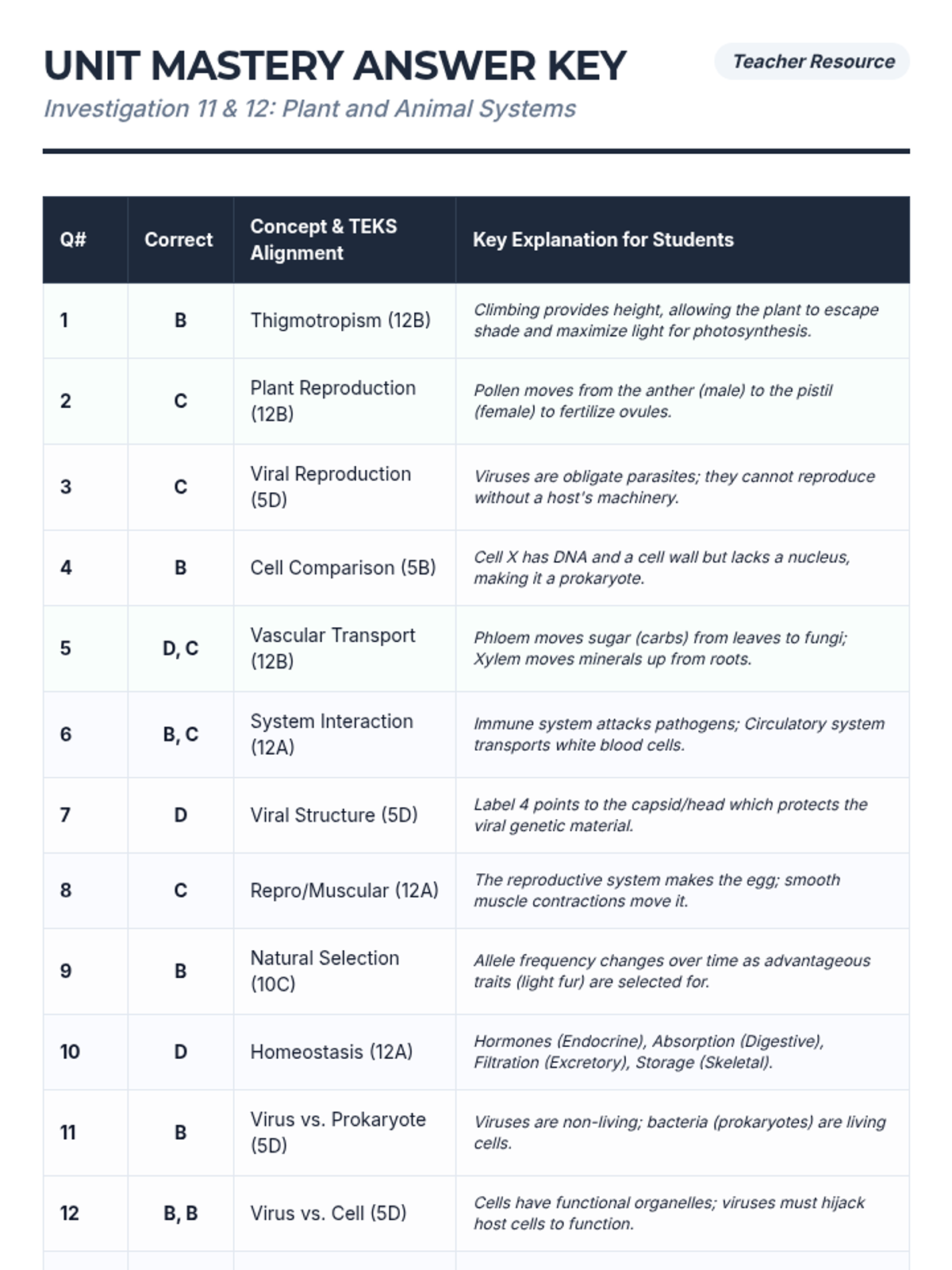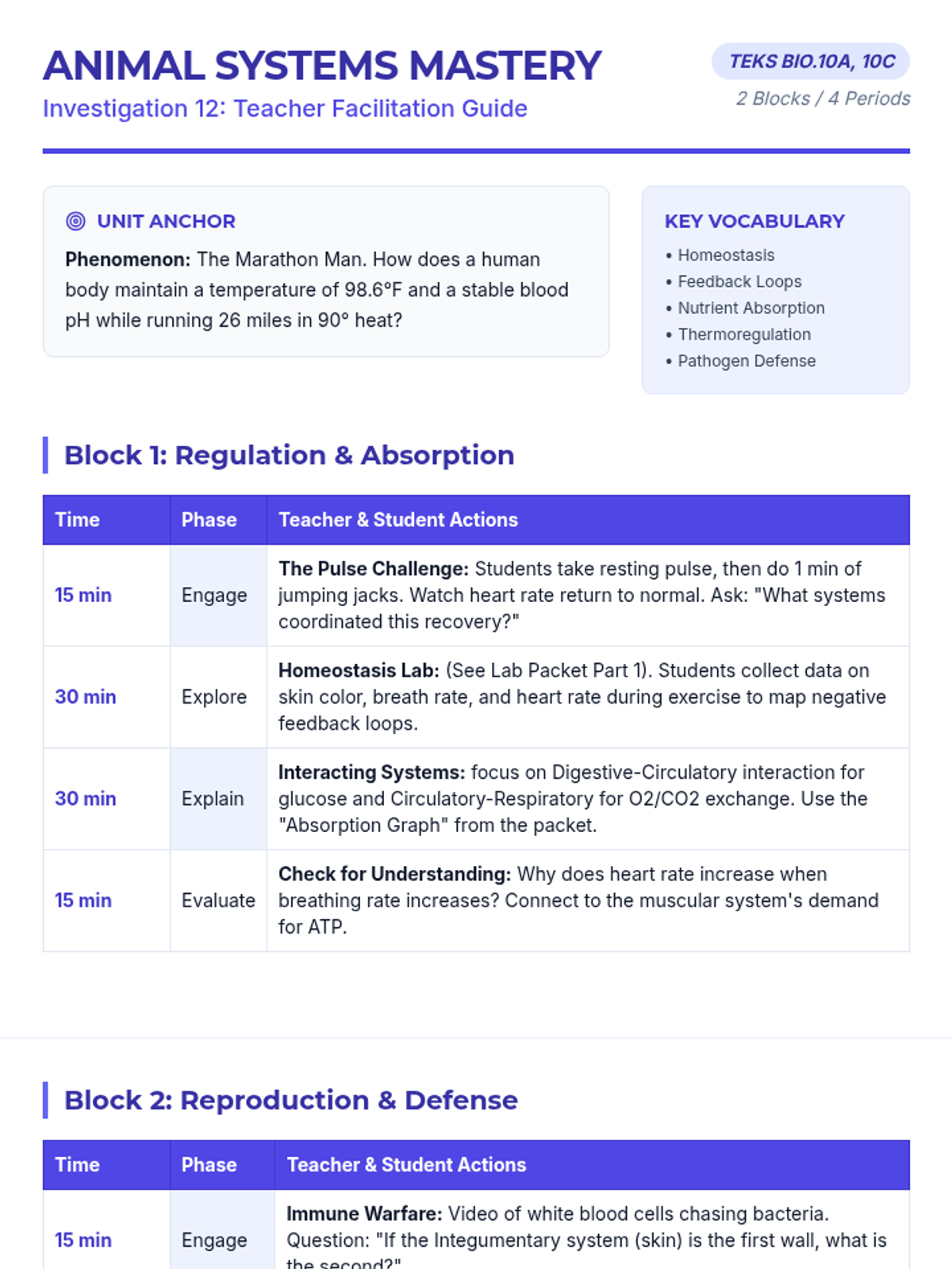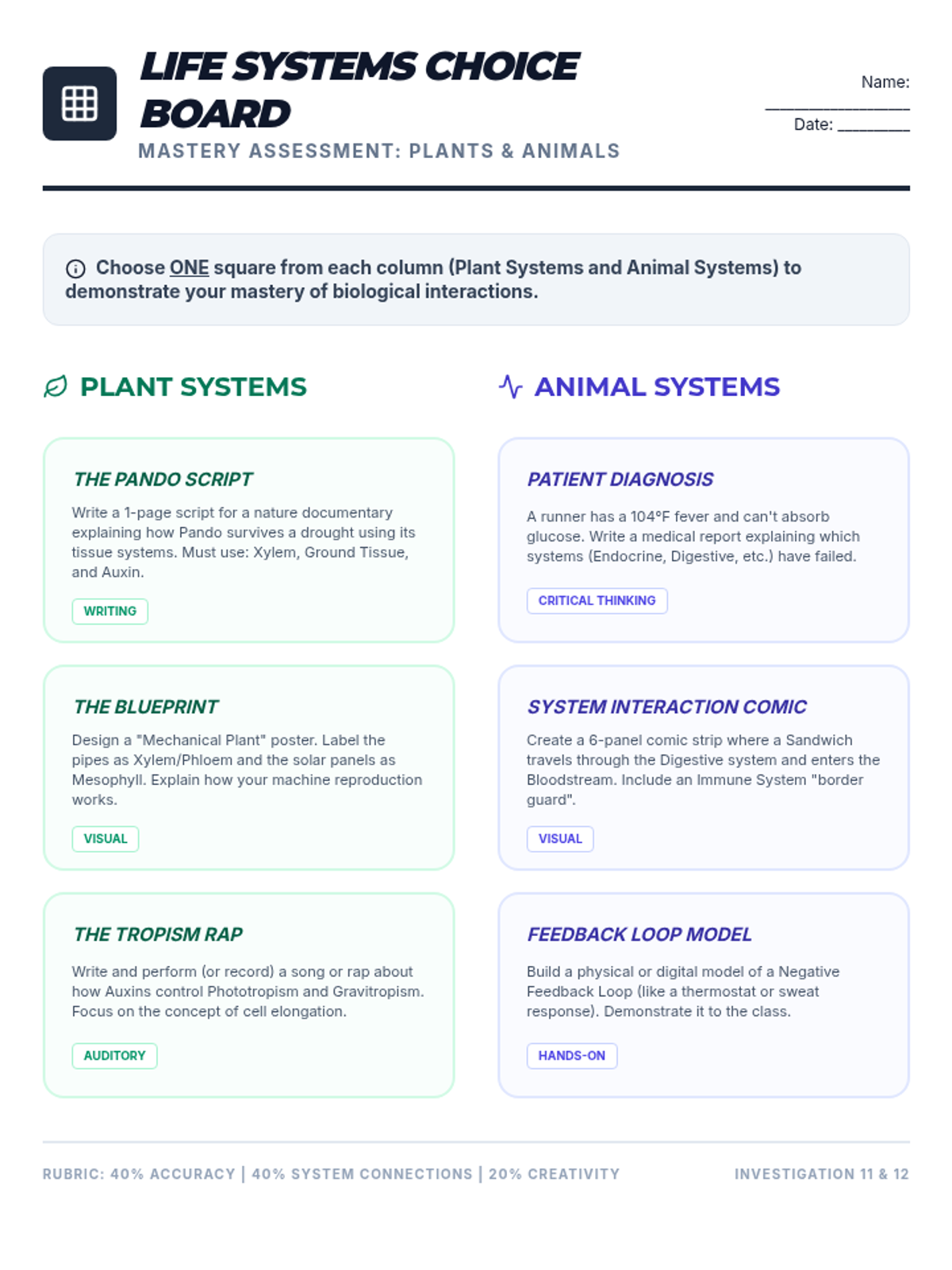 A comprehensive high school biology unit covering plant and animal systems, focusing on structure, transport, reproduction, and response through anchoring phenomena and hands-on labs.