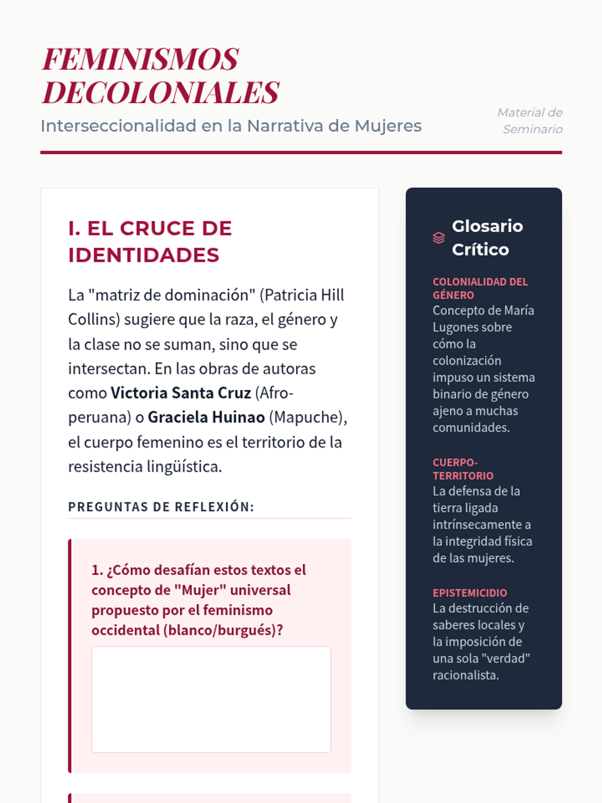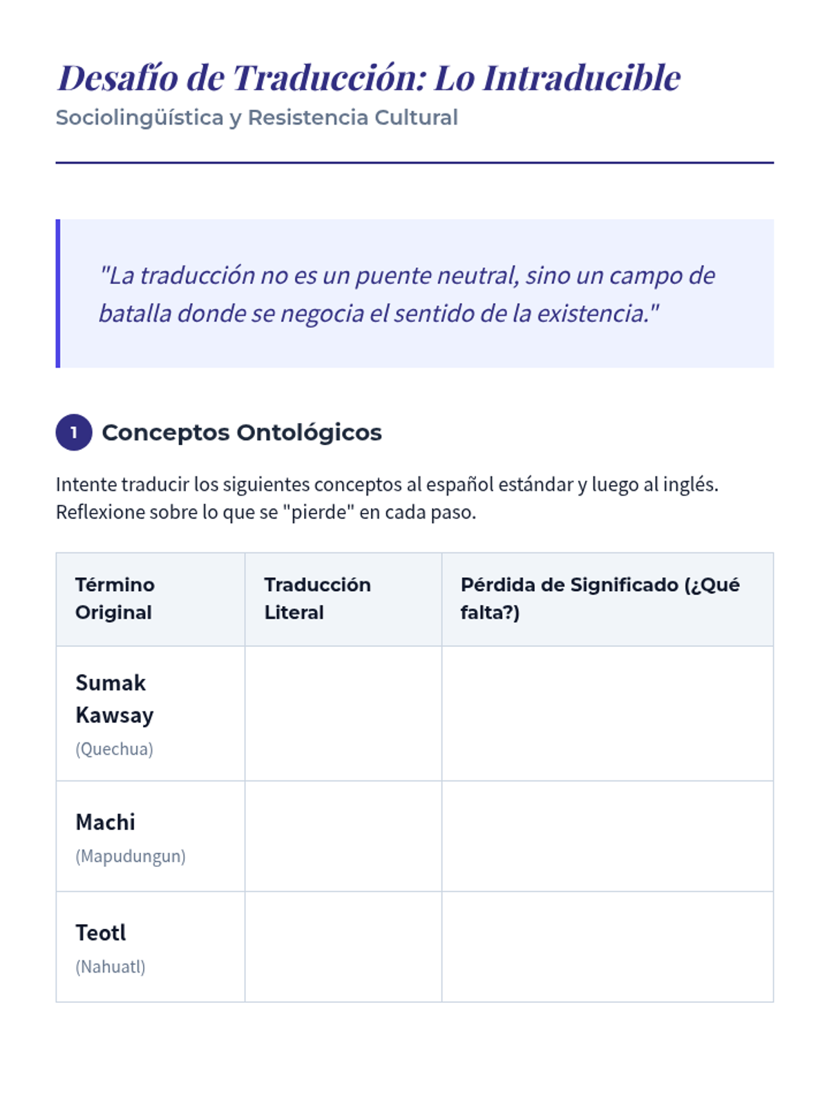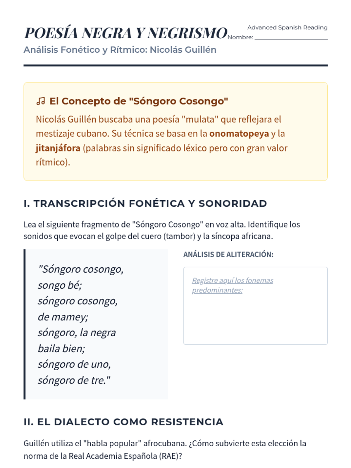 An advanced graduate-level sequence exploring how Afro-Latinx and Indigenous authors use Spanish as a tool of resistance, subverting colonial structures through testimonio, negrismo, and linguistic code-switching to represent marginalized worldviews.