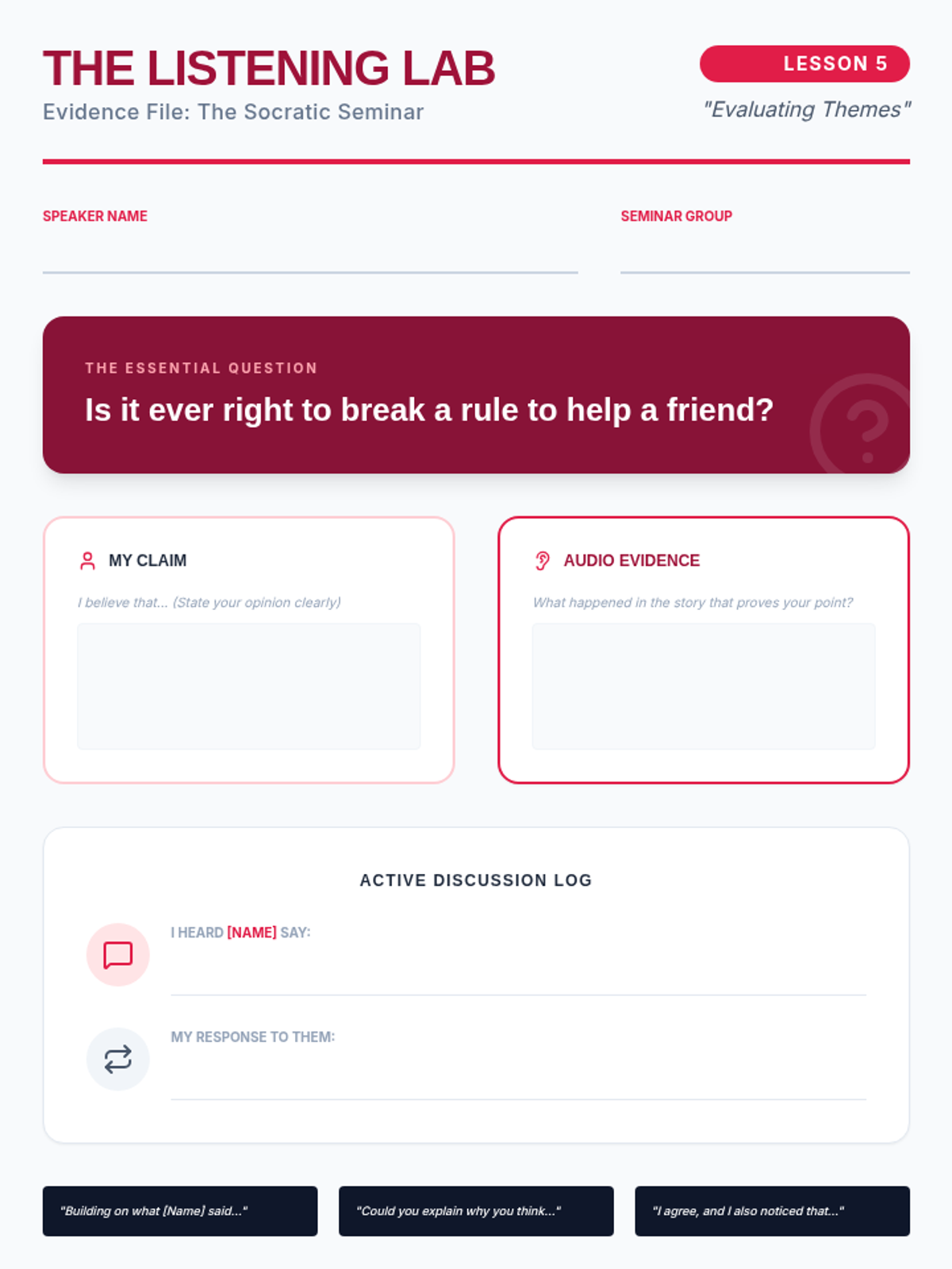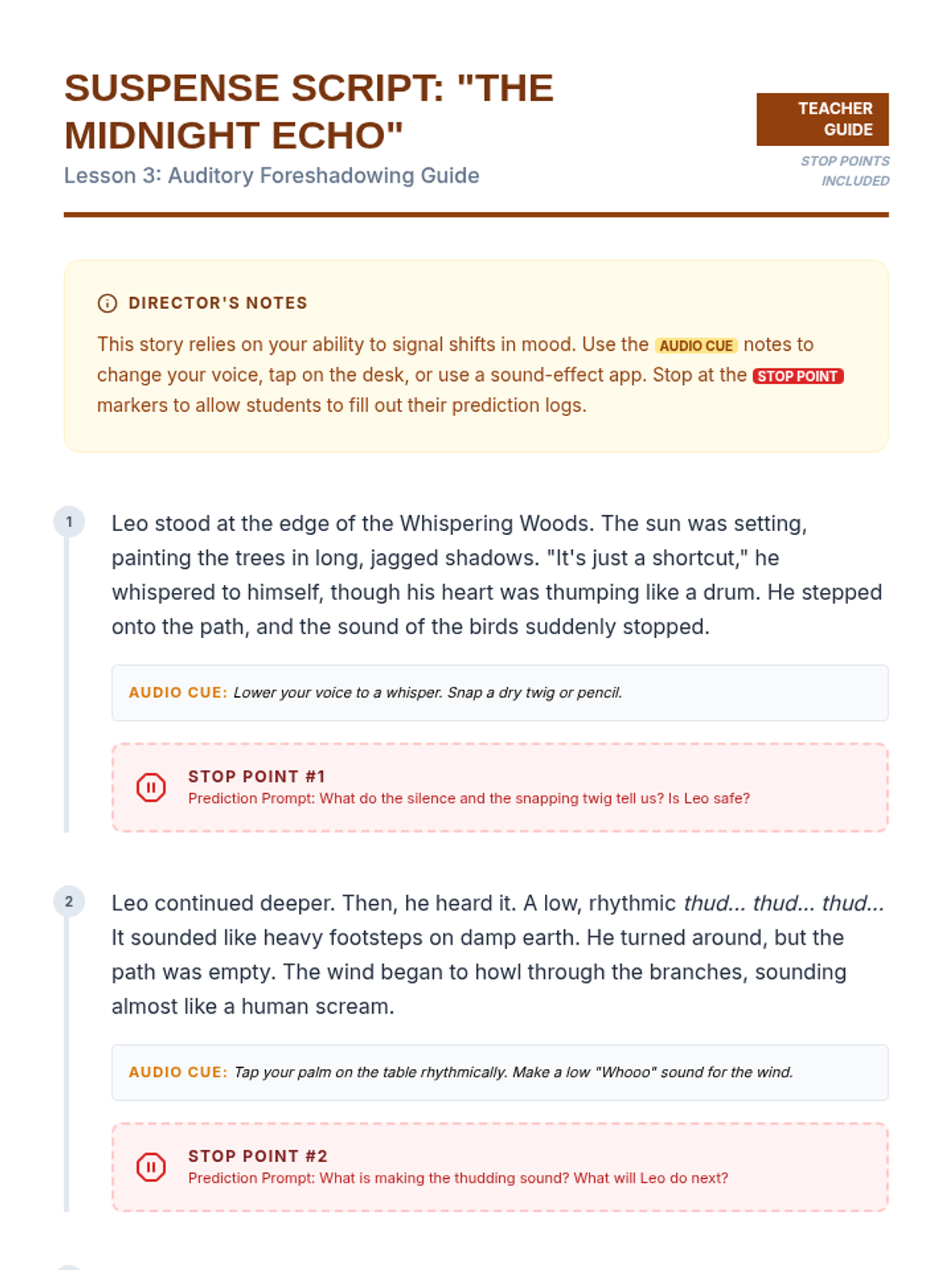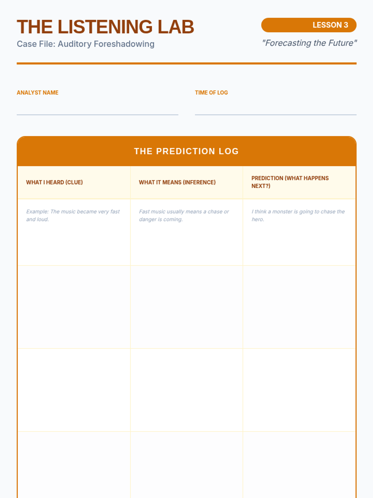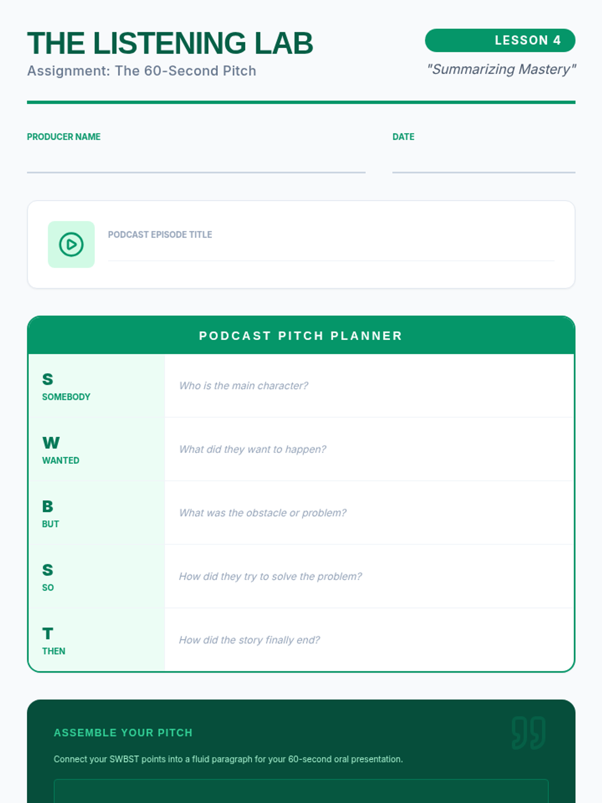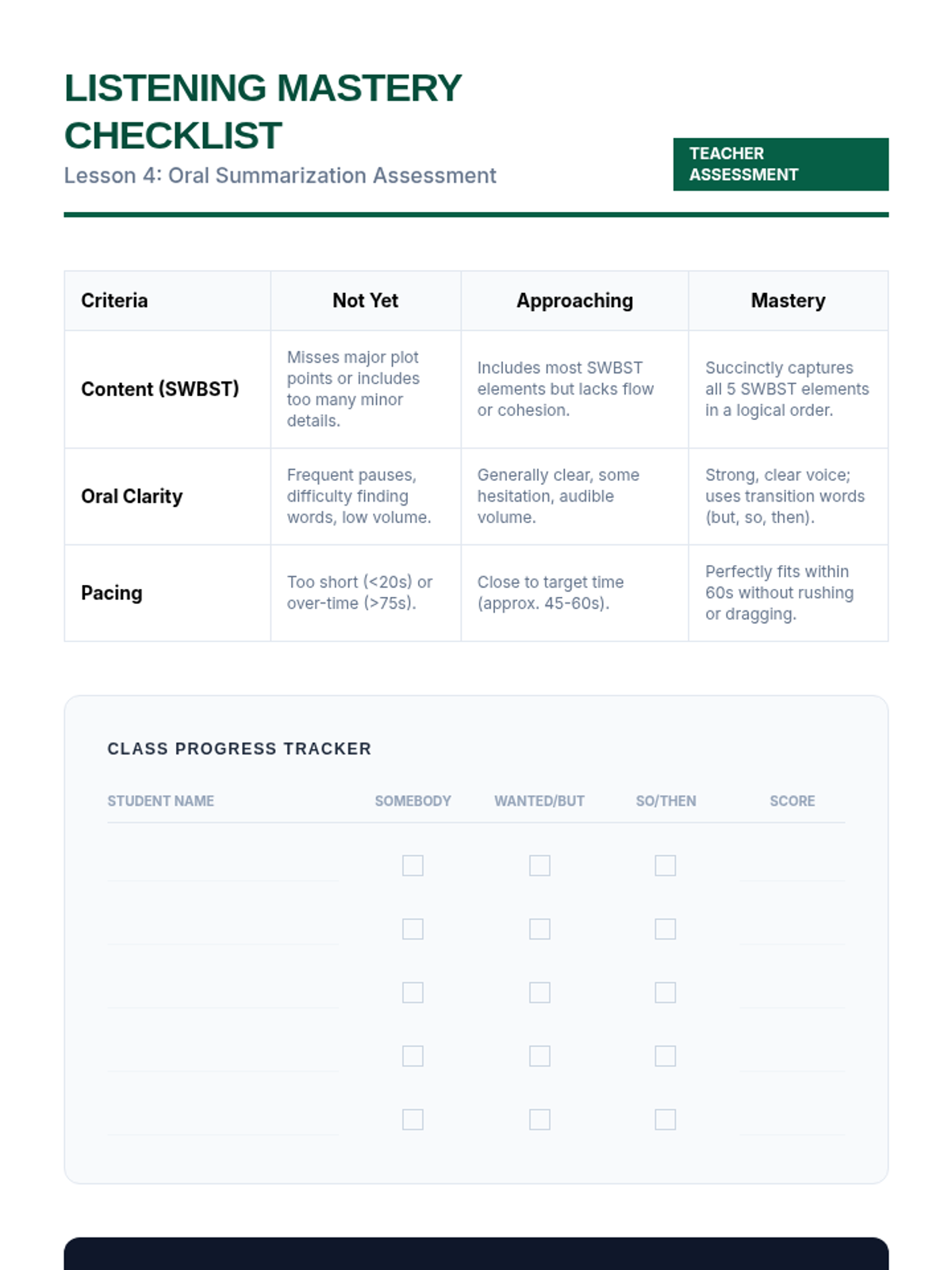 An ESL listening sequence for 5th-grade intermediate students focused on narrative comprehension through oral storytelling, podcasts, and auditory analysis. Students move from identifying basic story elements to evaluating complex themes and character motivations through spoken discourse.