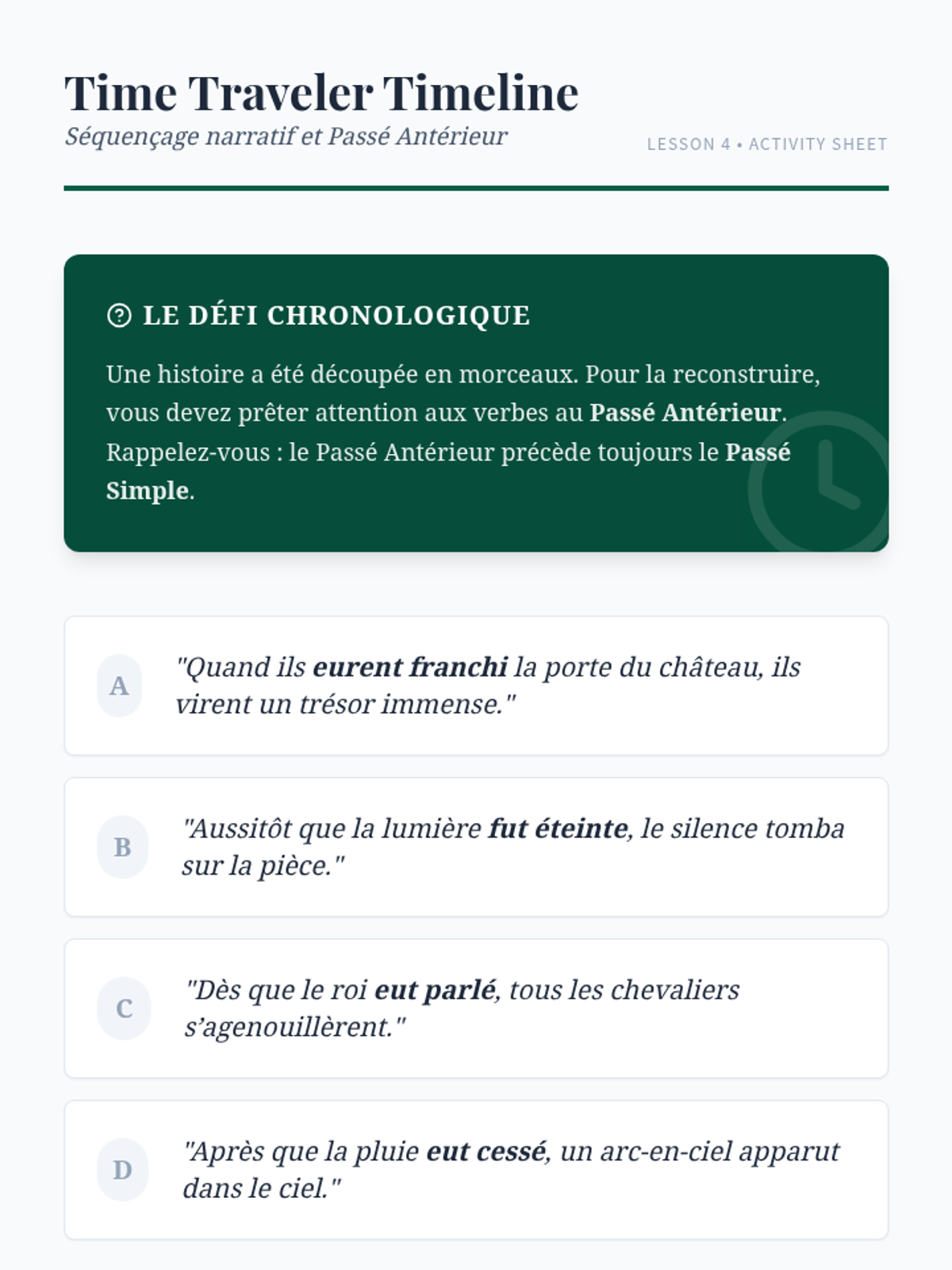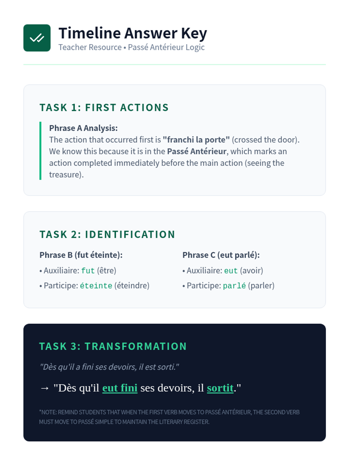A comprehensive unit for advanced French students focused on recognizing and analyzing literary tenses (Passé Simple and Passé Antérieur) to understand narrative pacing and linguistic register in classic literature.