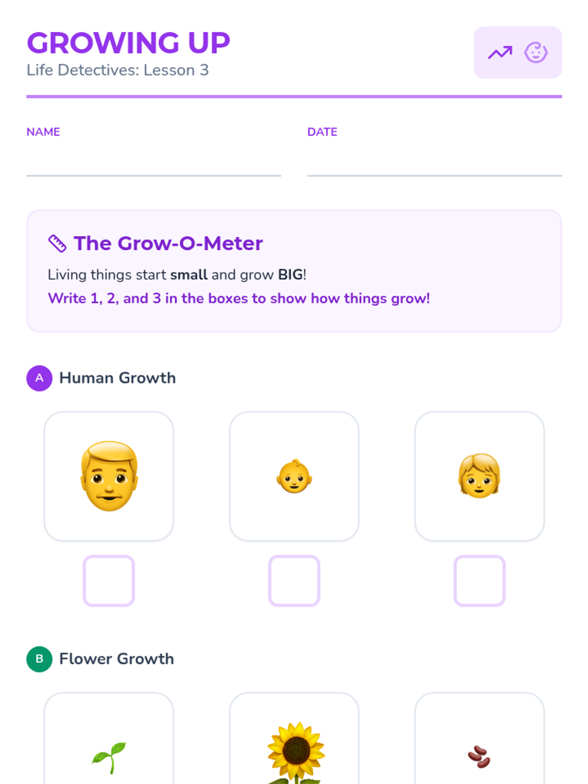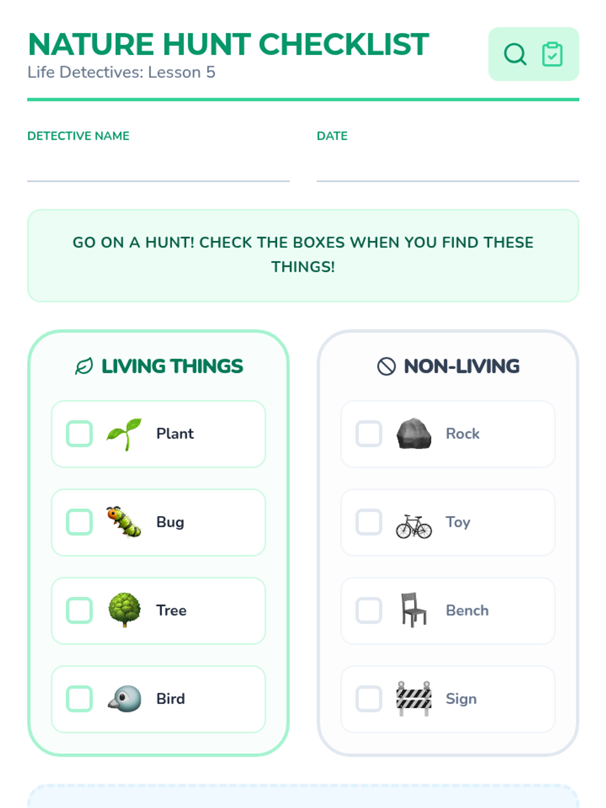 A foundational biology unit for Pre-K students that uses tactile exploration and observation to distinguish between living things (plants and animals) and non-living objects (rocks and toys). Students explore themes of movement, basic needs, growth, and respiration.