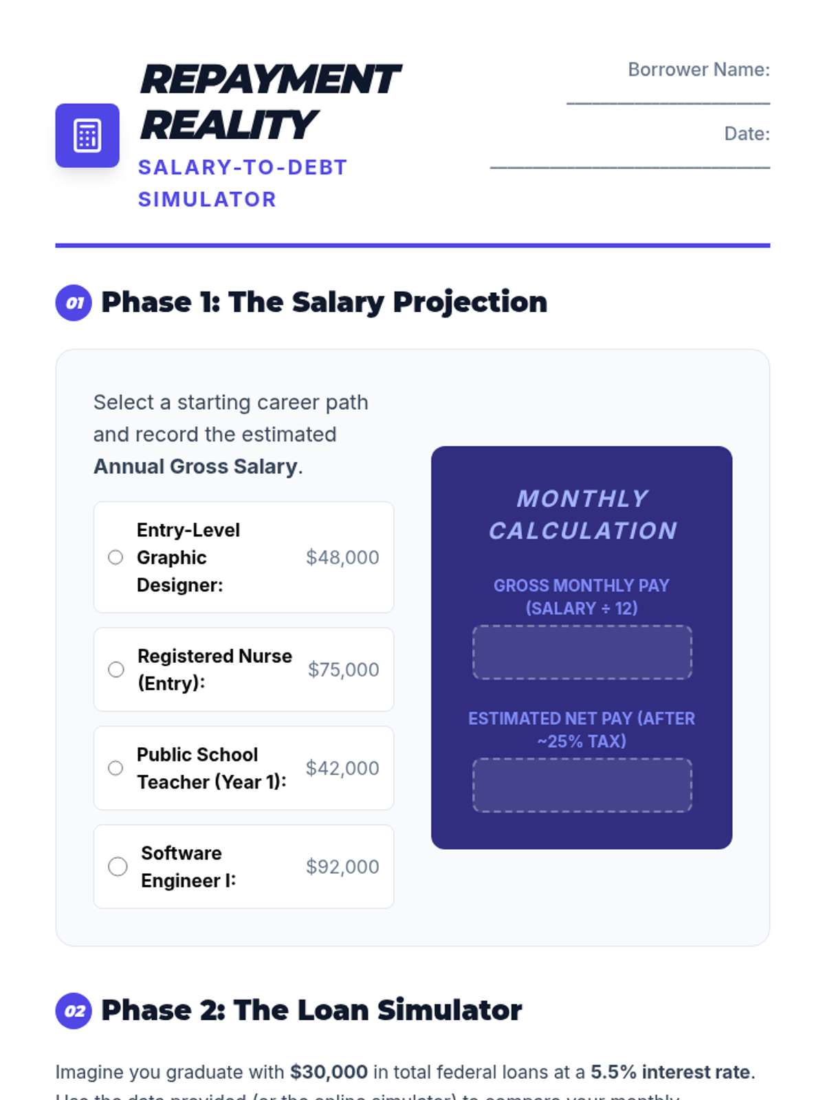 A comprehensive literacy sequence for 12th-grade students focusing on federal student aid, interest mechanics, legal obligations of the MPN, and strategic repayment planning to ensure responsible borrowing.