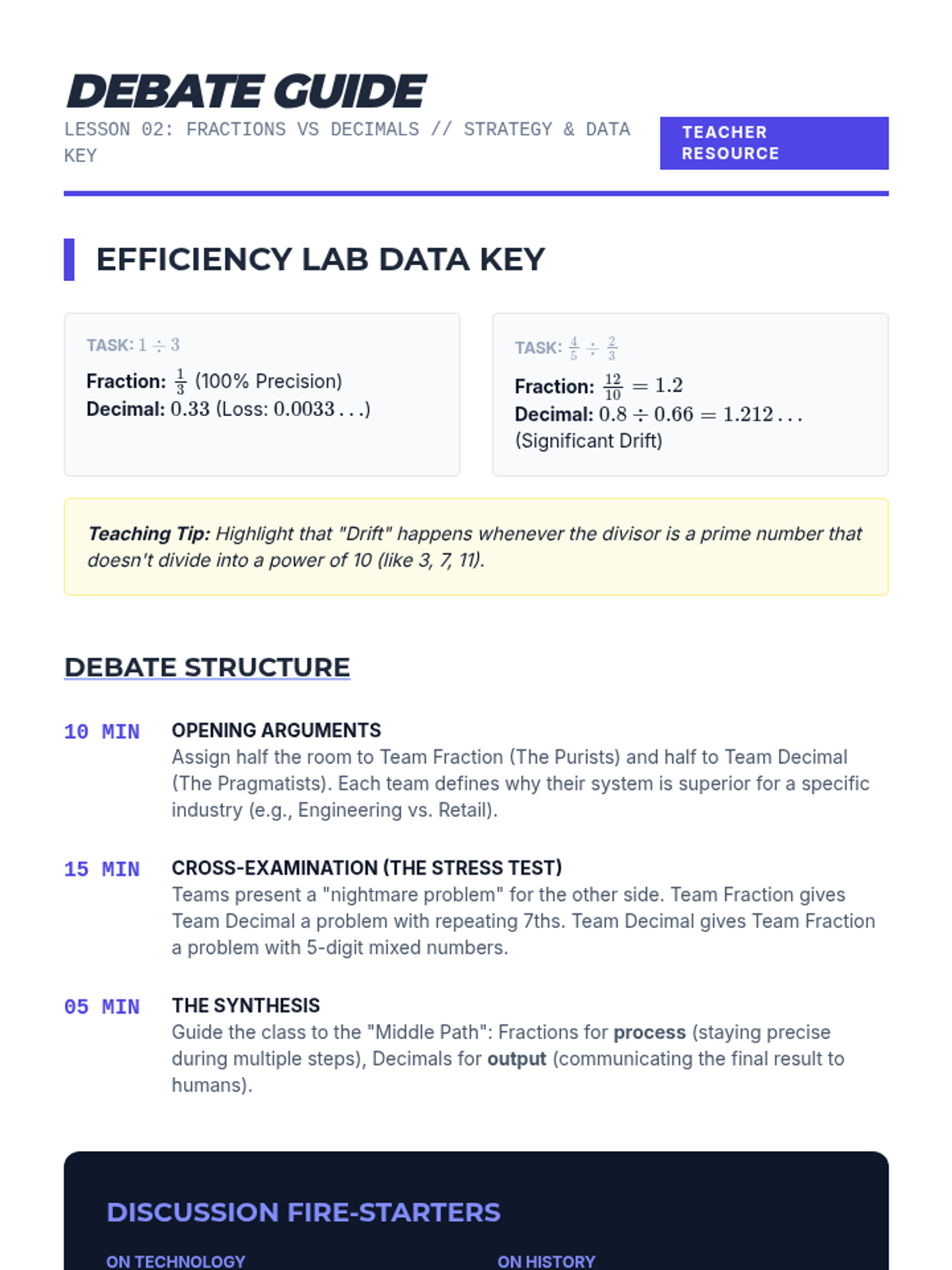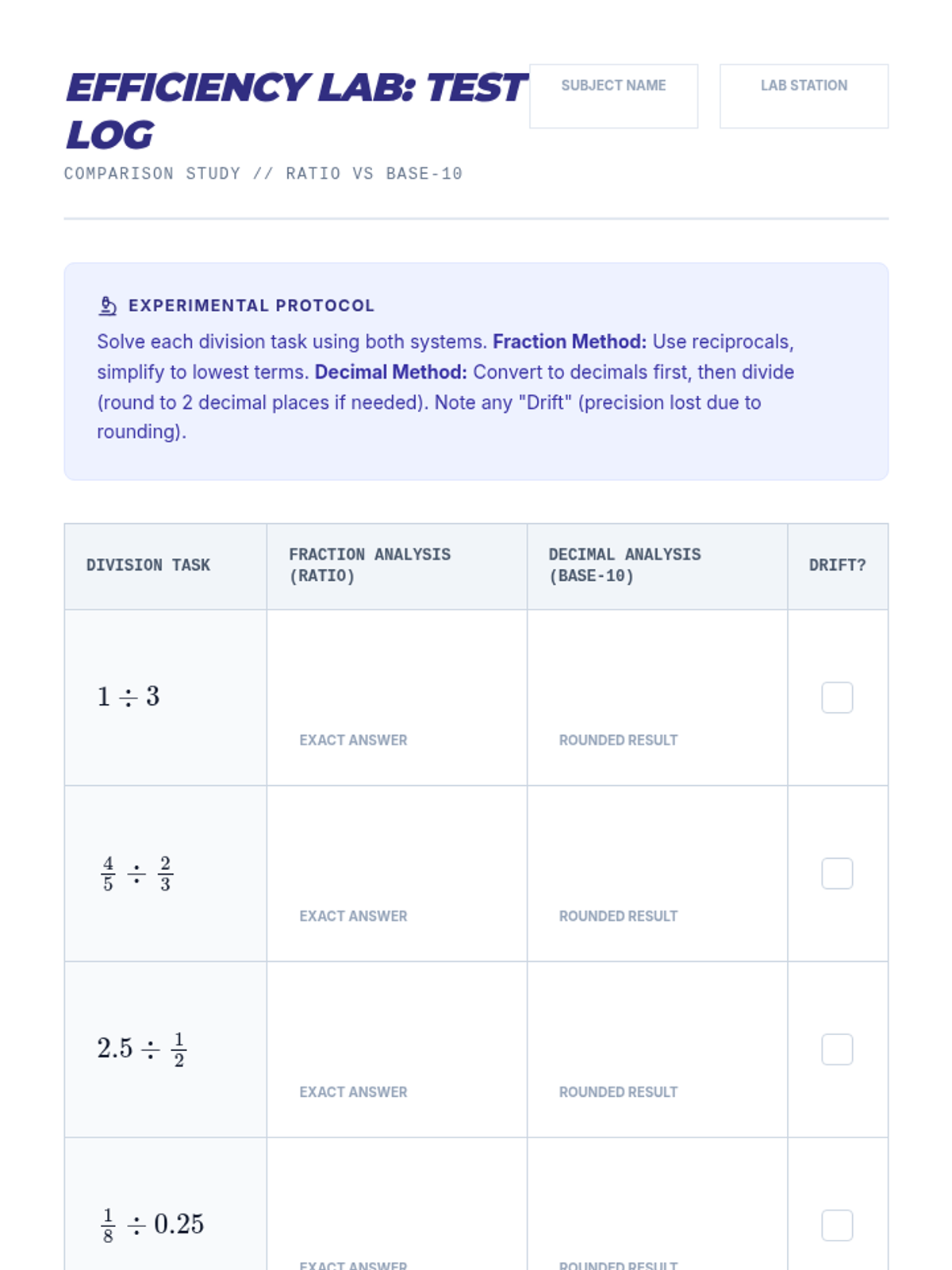 A 9th-grade math sequence focused on critical thinking and error analysis in fraction division. Students move beyond algorithms to understand the logic of reciprocals, the efficiency of different number systems, and the structural language of word problems.