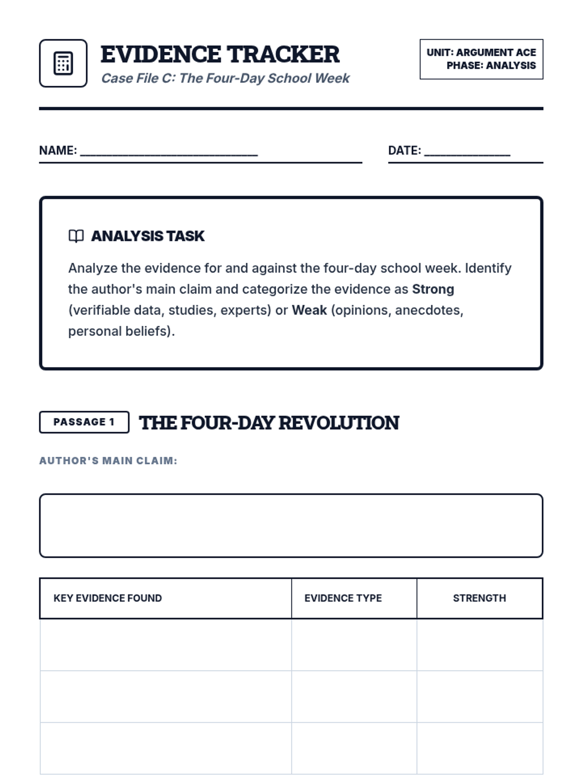 A comprehensive 3-lesson unit designed to prepare HSED/GED students for the RLA Extended Response by teaching them how to analyze opposing arguments, evaluate evidence, and craft a high-scoring argumentative essay.