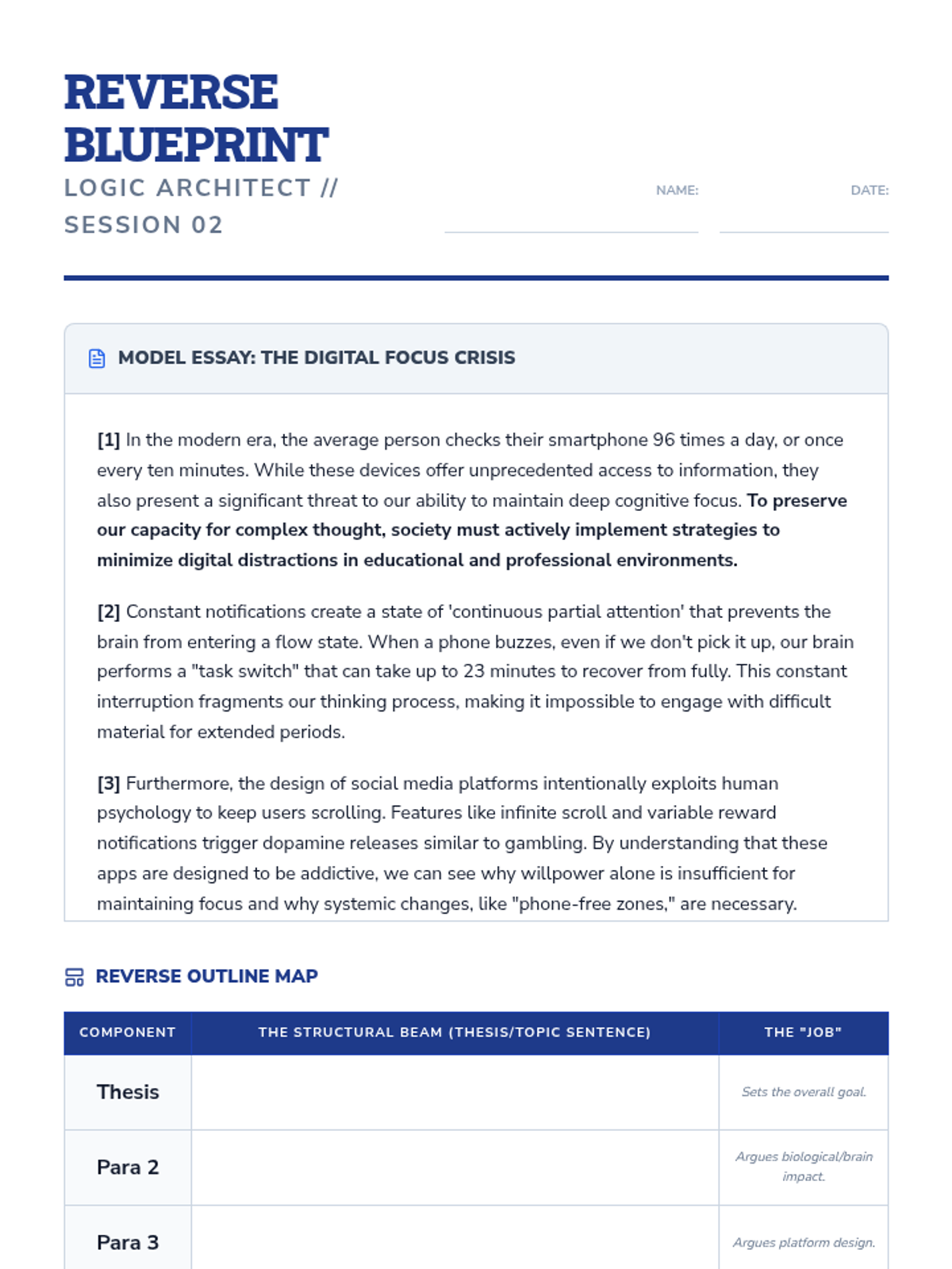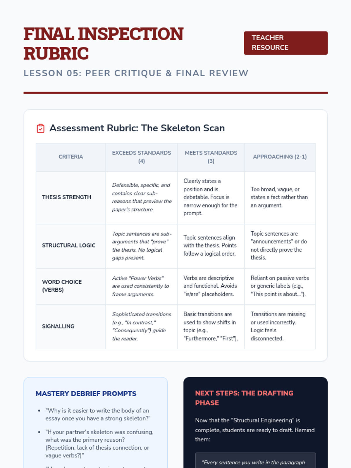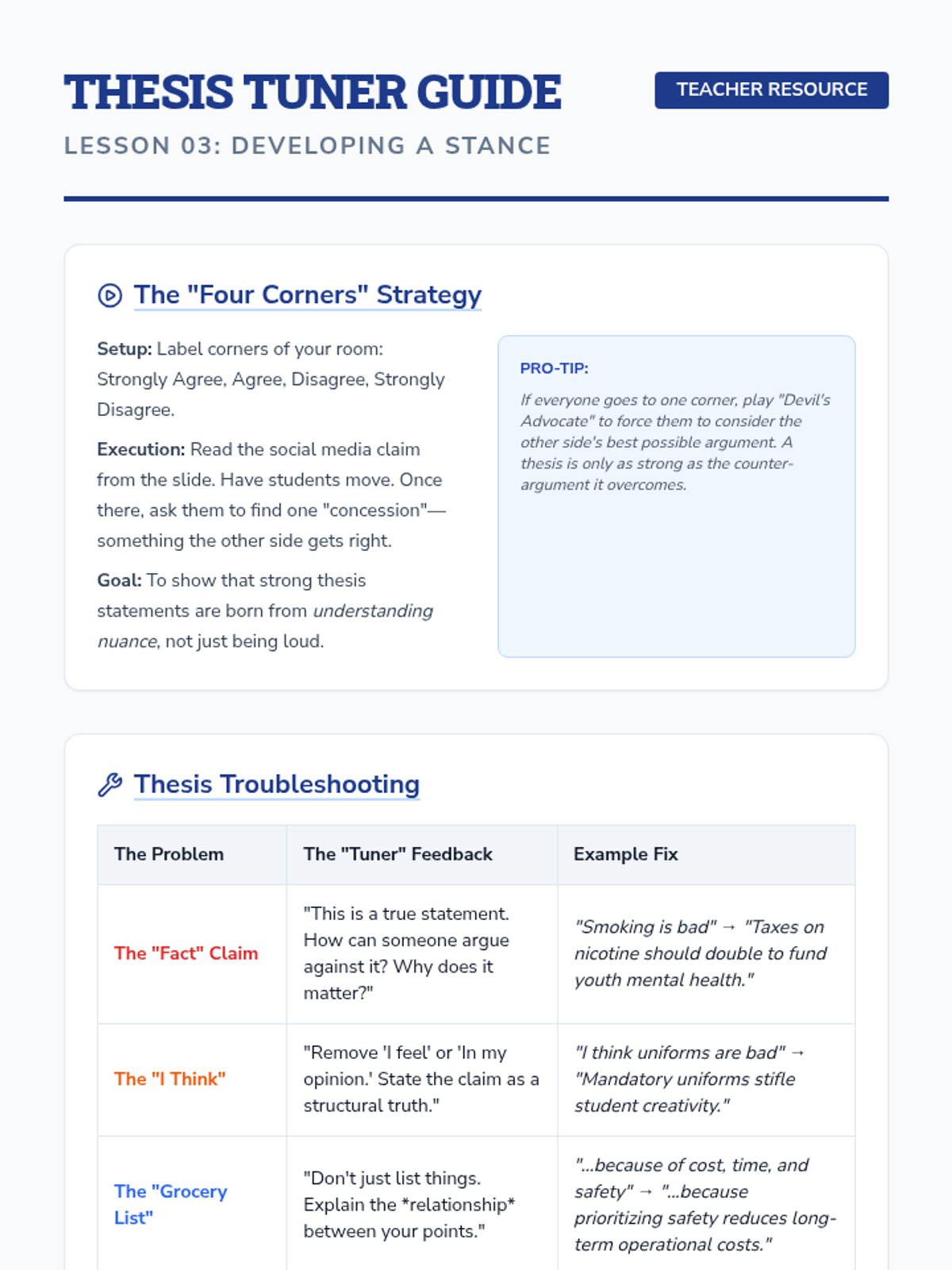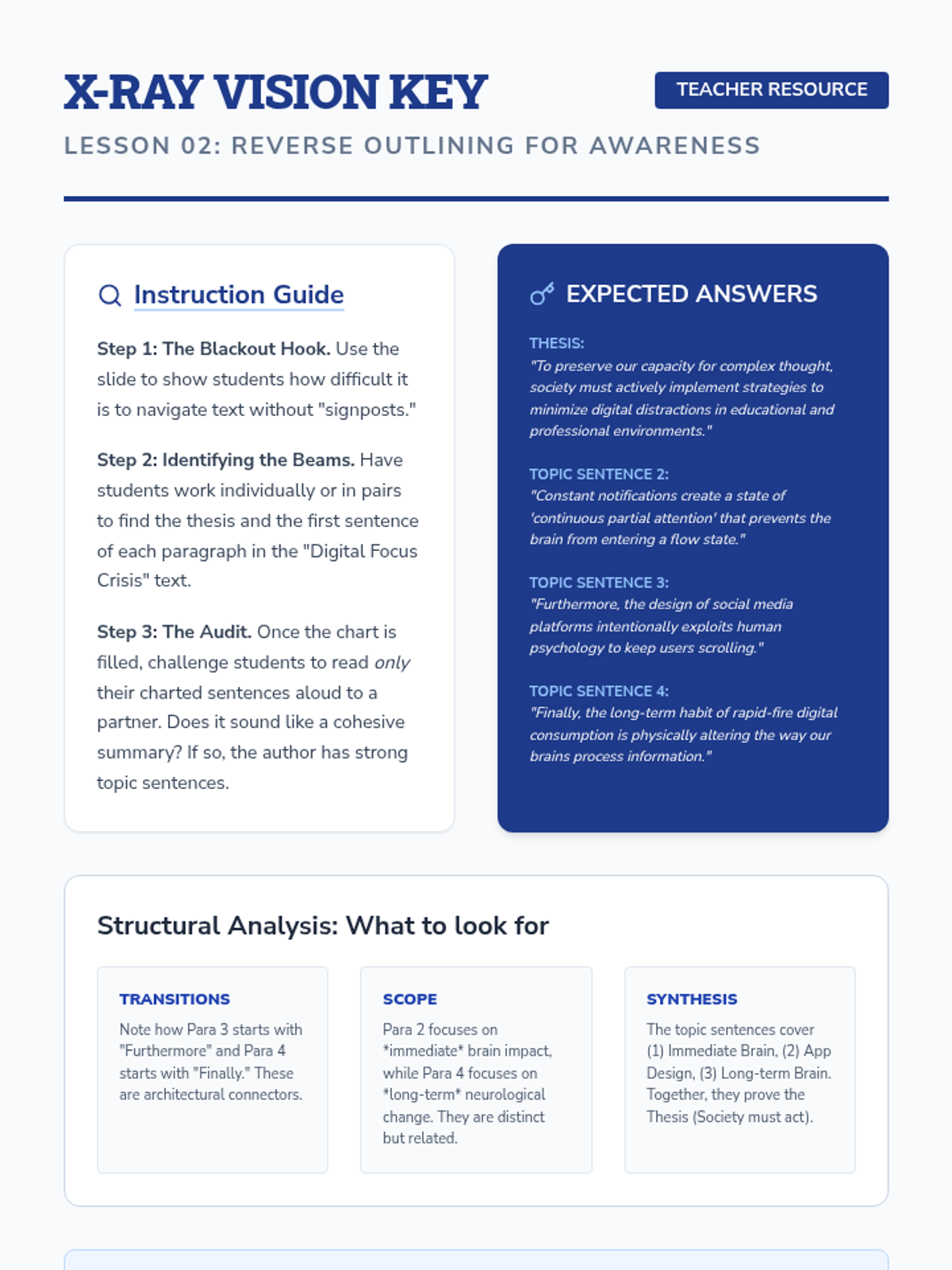 This inquiry-based writing sequence teaches 9th-grade students to master thesis statements and topic sentences by treating them as the structural engineering of an argument. Students reverse-engineer professional writing, analyze logical flow, and construct their own 'skeletons' for persuasive essays on community issues.