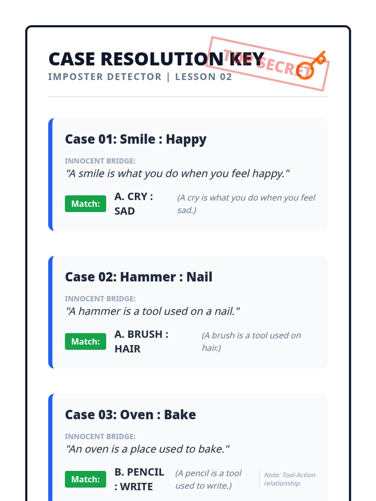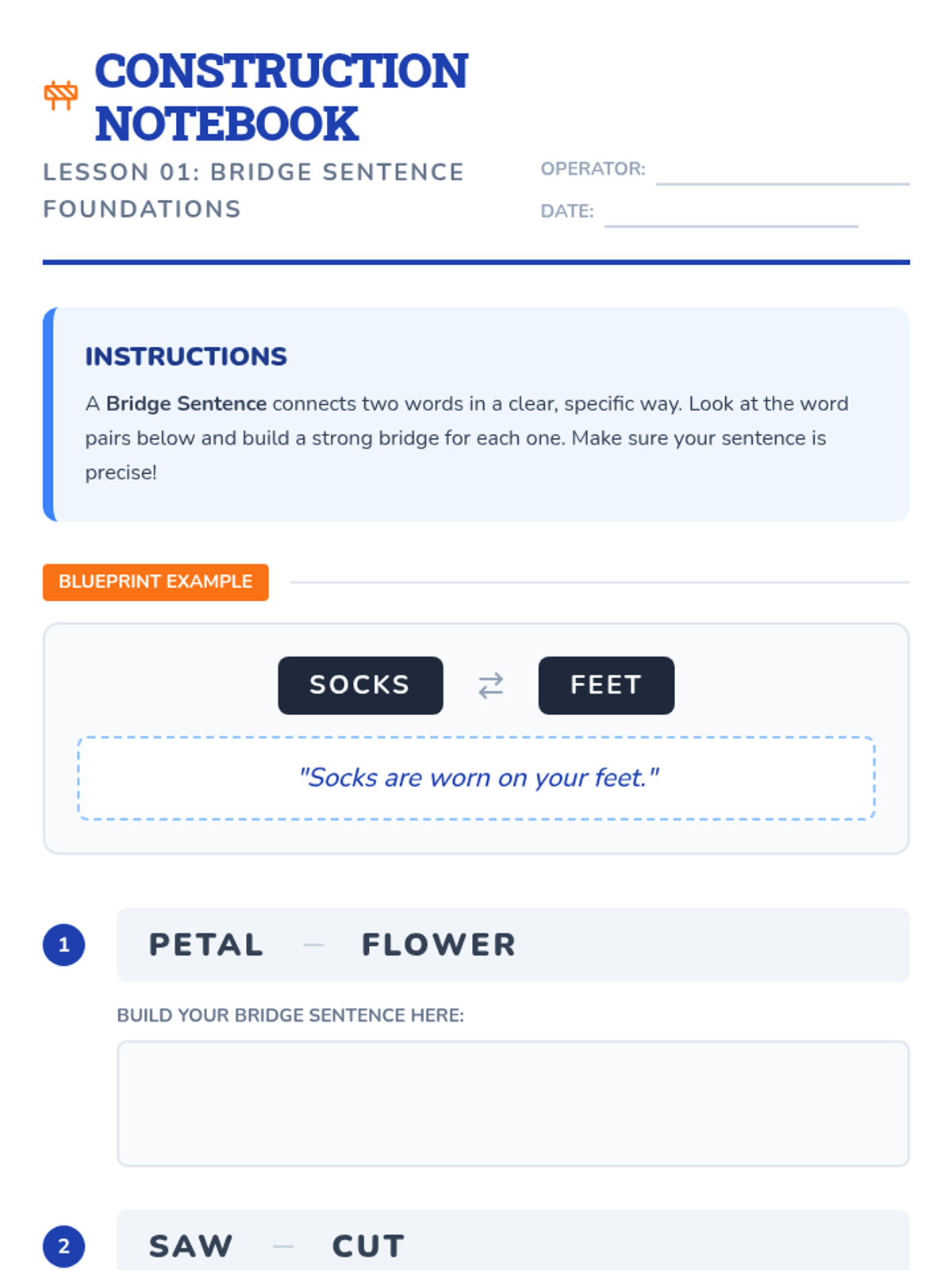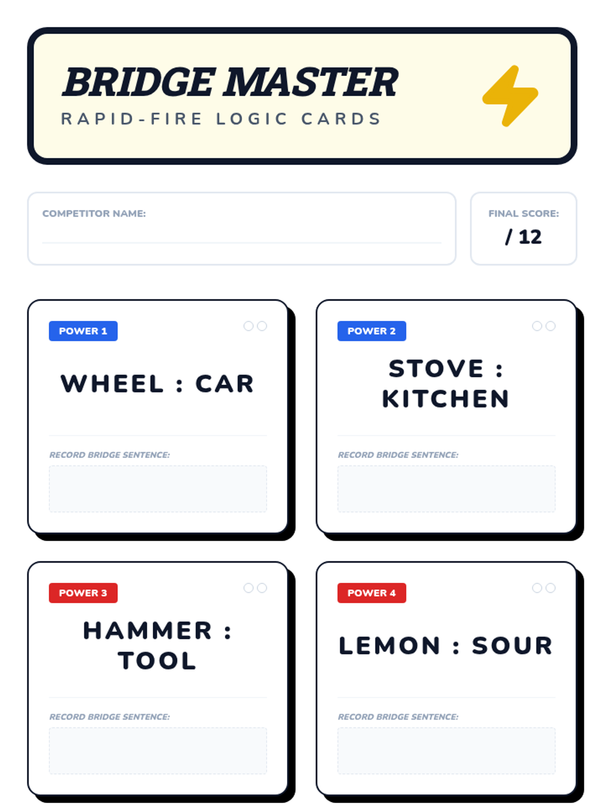 This sequence introduces 3rd-grade students to analogies through the 'Bridge Sentence' strategy. Students learn to construct precise sentences that define relationships, apply these sentences to solve puzzles, debug logical errors, visualize relationships, and build fluency in verbal reasoning.