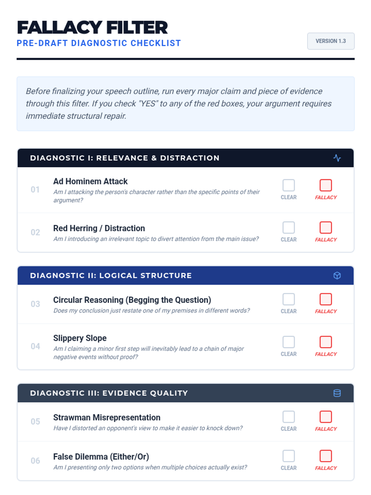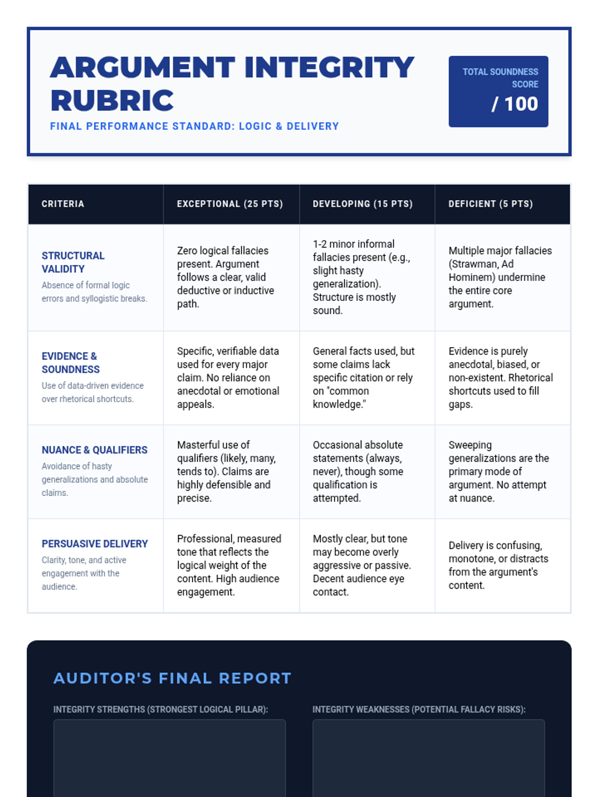 A comprehensive sequence for 12th-grade students that bridges the gap between identifying logical fallacies and constructing sound, formally valid arguments. Students move from the technical structures of formal logic to drafting and delivering speeches that have been 'stress-tested' for rhetorical integrity.
