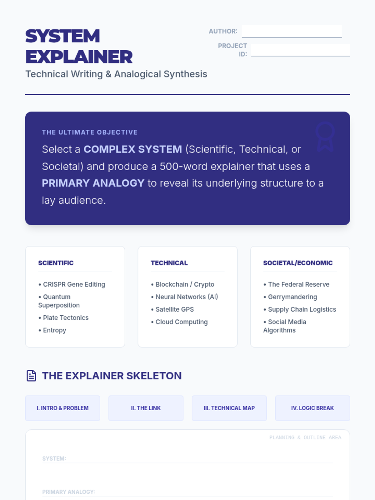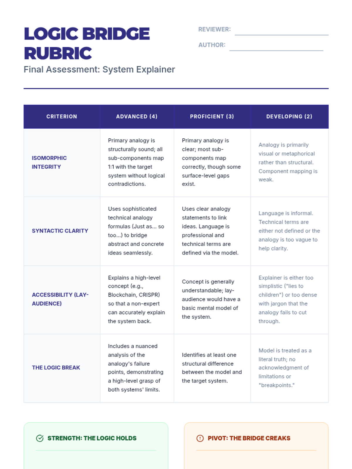A 12th-grade ELA sequence exploring analogies as structural models across science, history, and technology. Students move from analyzing existing models to designing their own analogical solutions for complex systems.
