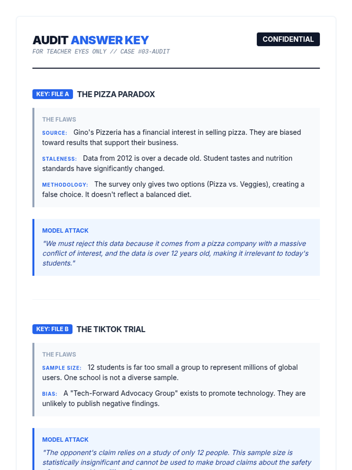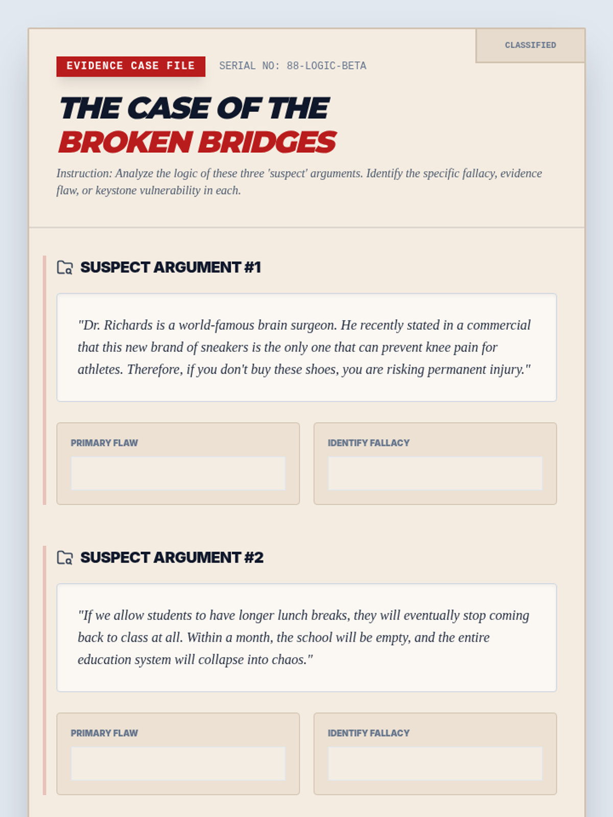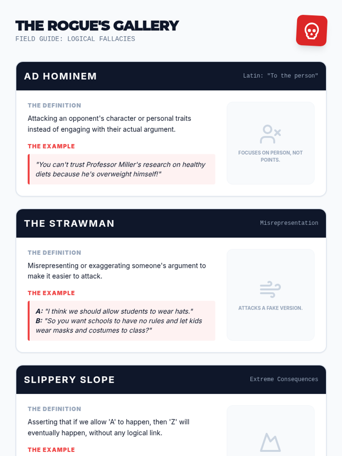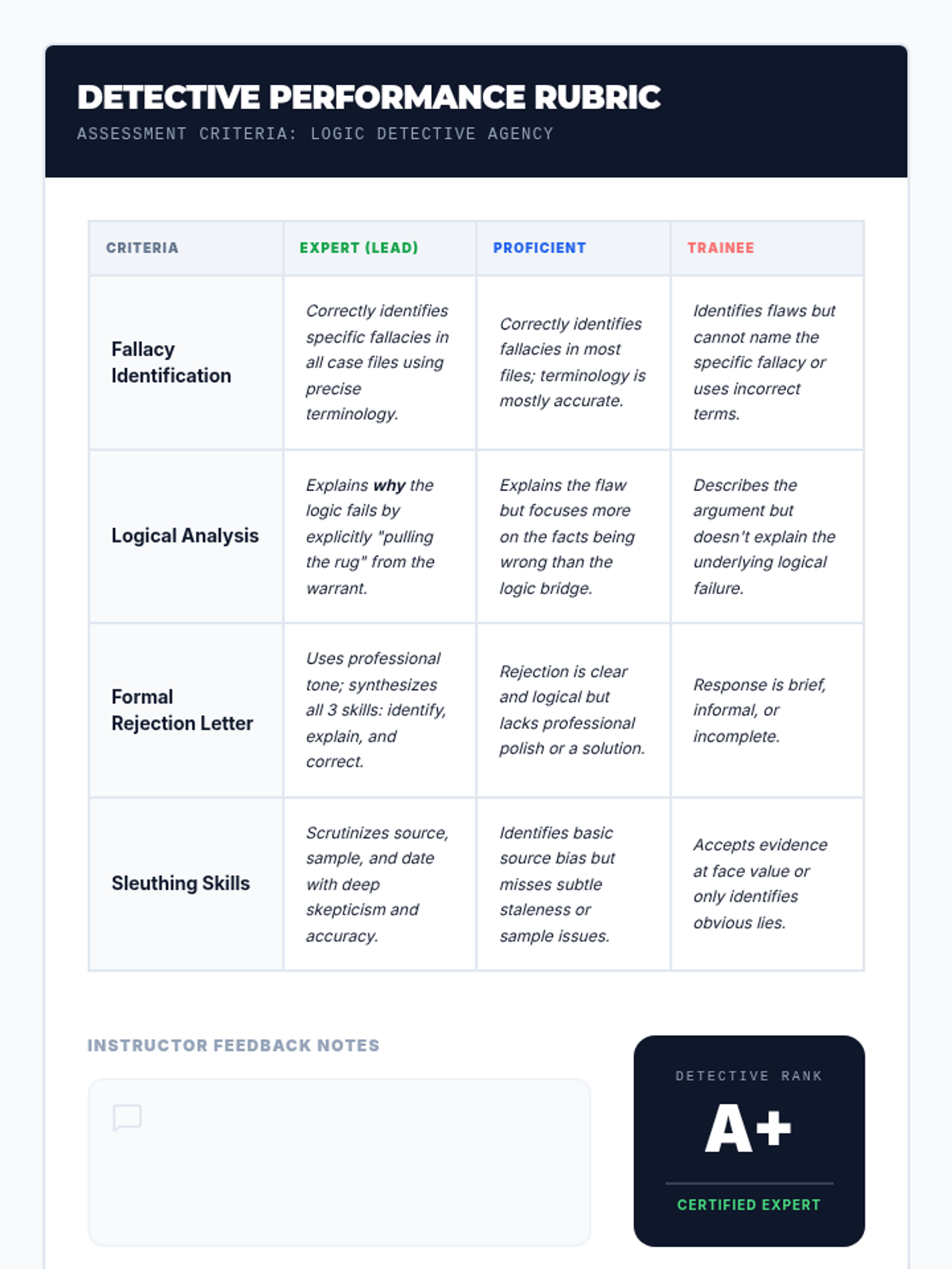 A 5-lesson sequence for 7th-grade students on identifying and challenging logical fallacies in debate. Students move from understanding argument structure (Toulmin) to identifying common fallacies, evaluating evidence, and executing 'turns' to win clashes.