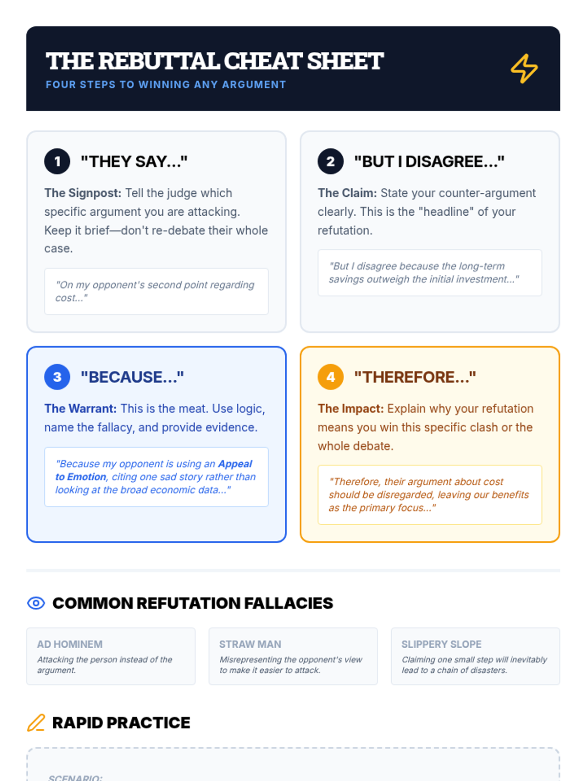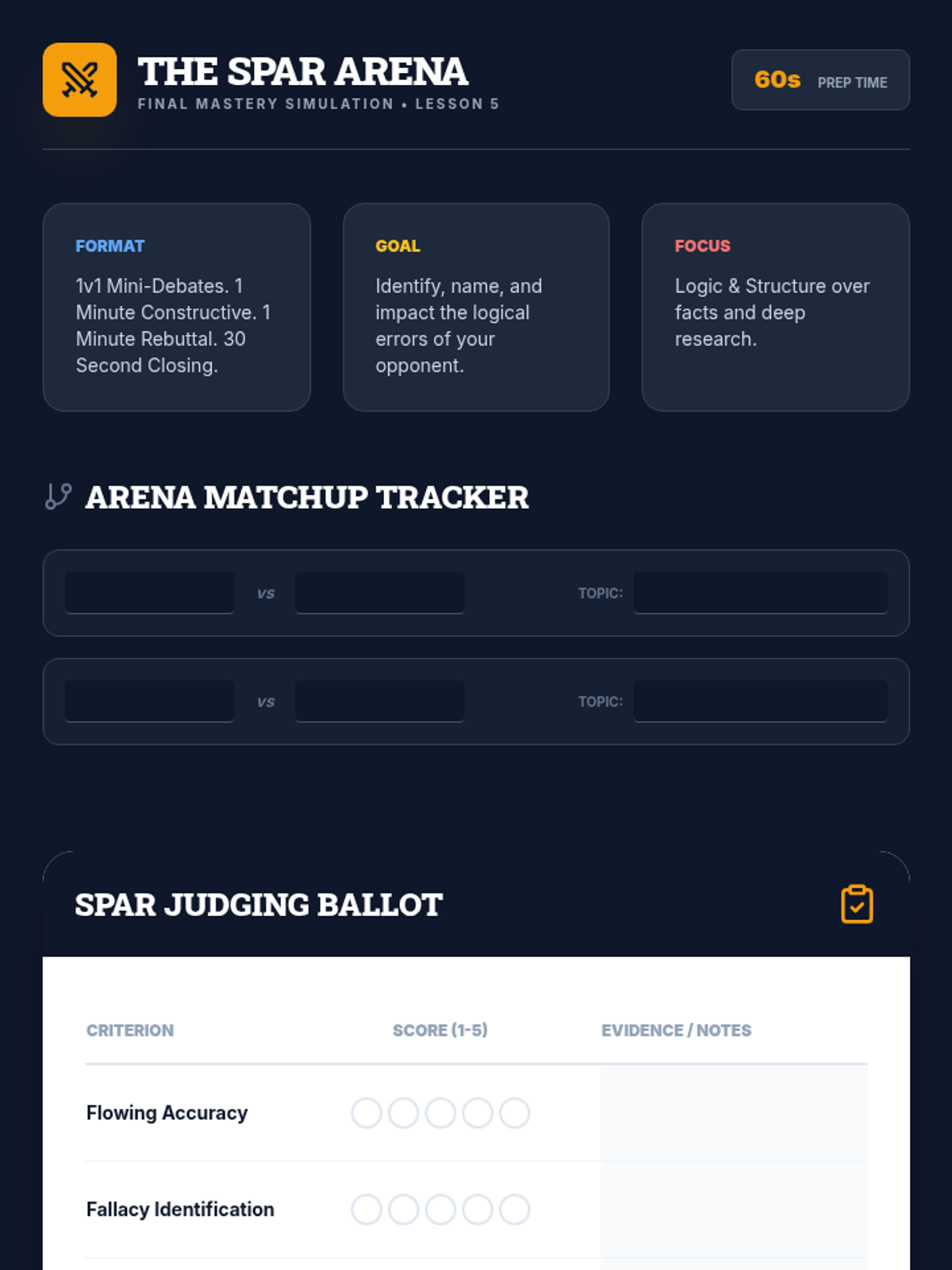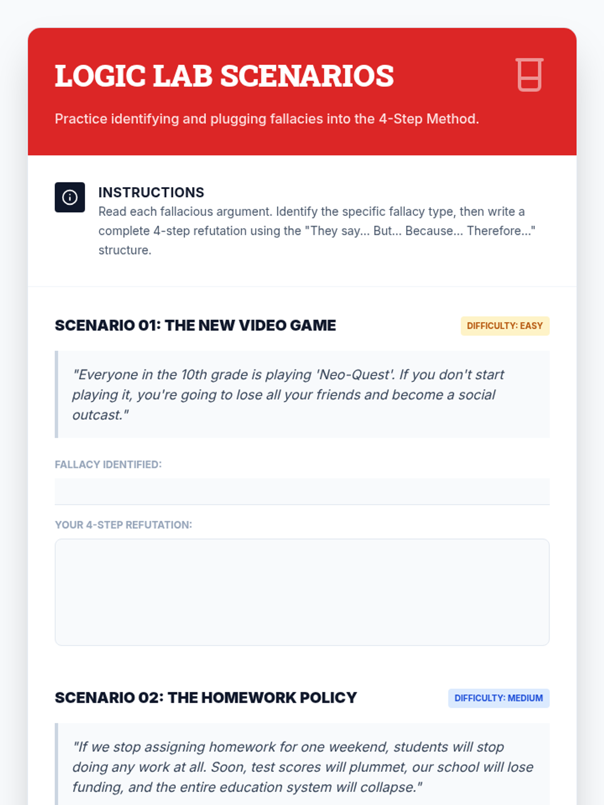 A 10th-grade ELA sequence focused on identifying, naming, and refuting logical fallacies in live debate settings using formal 'flowing' techniques and the four-step refutation method.