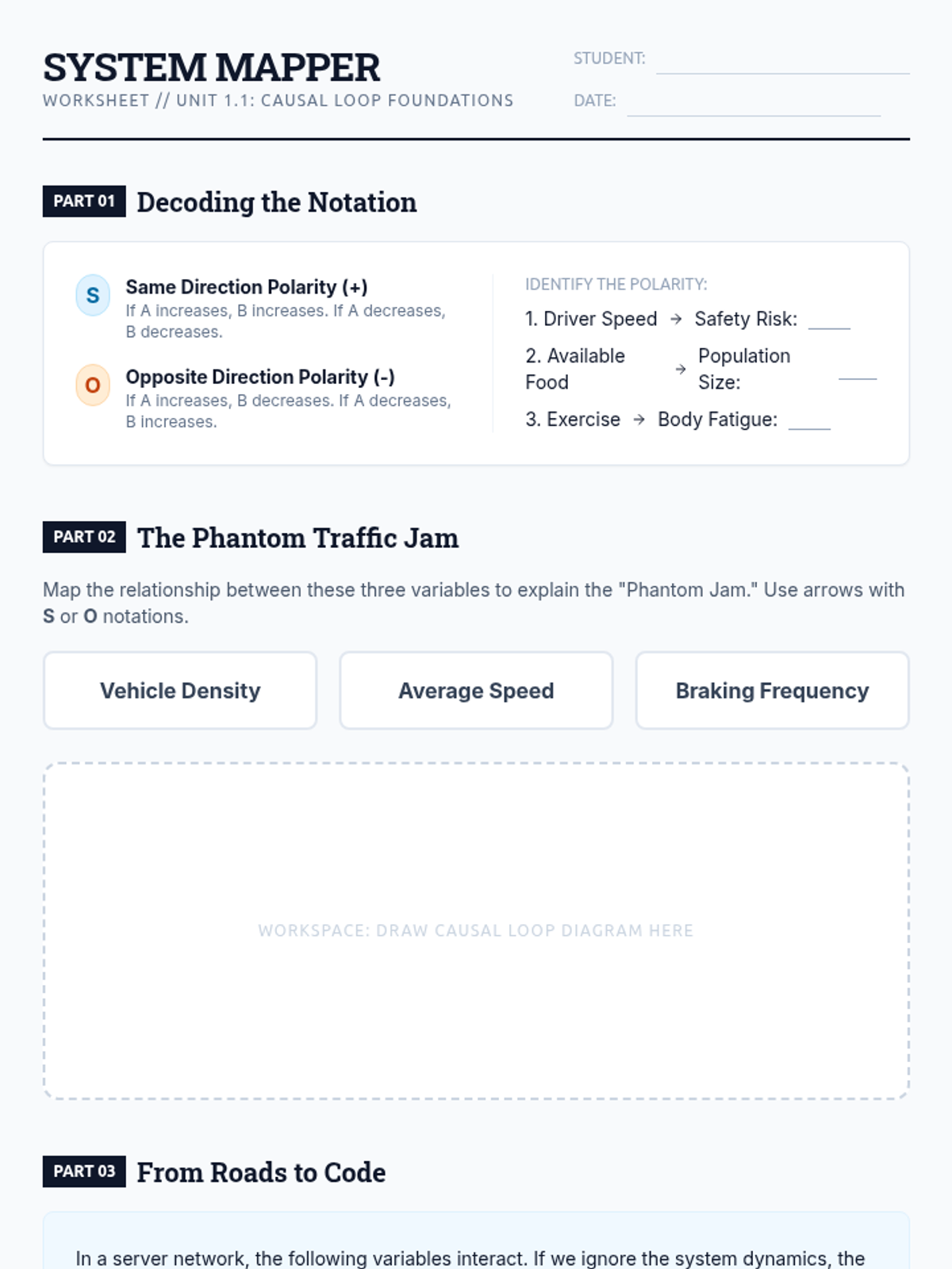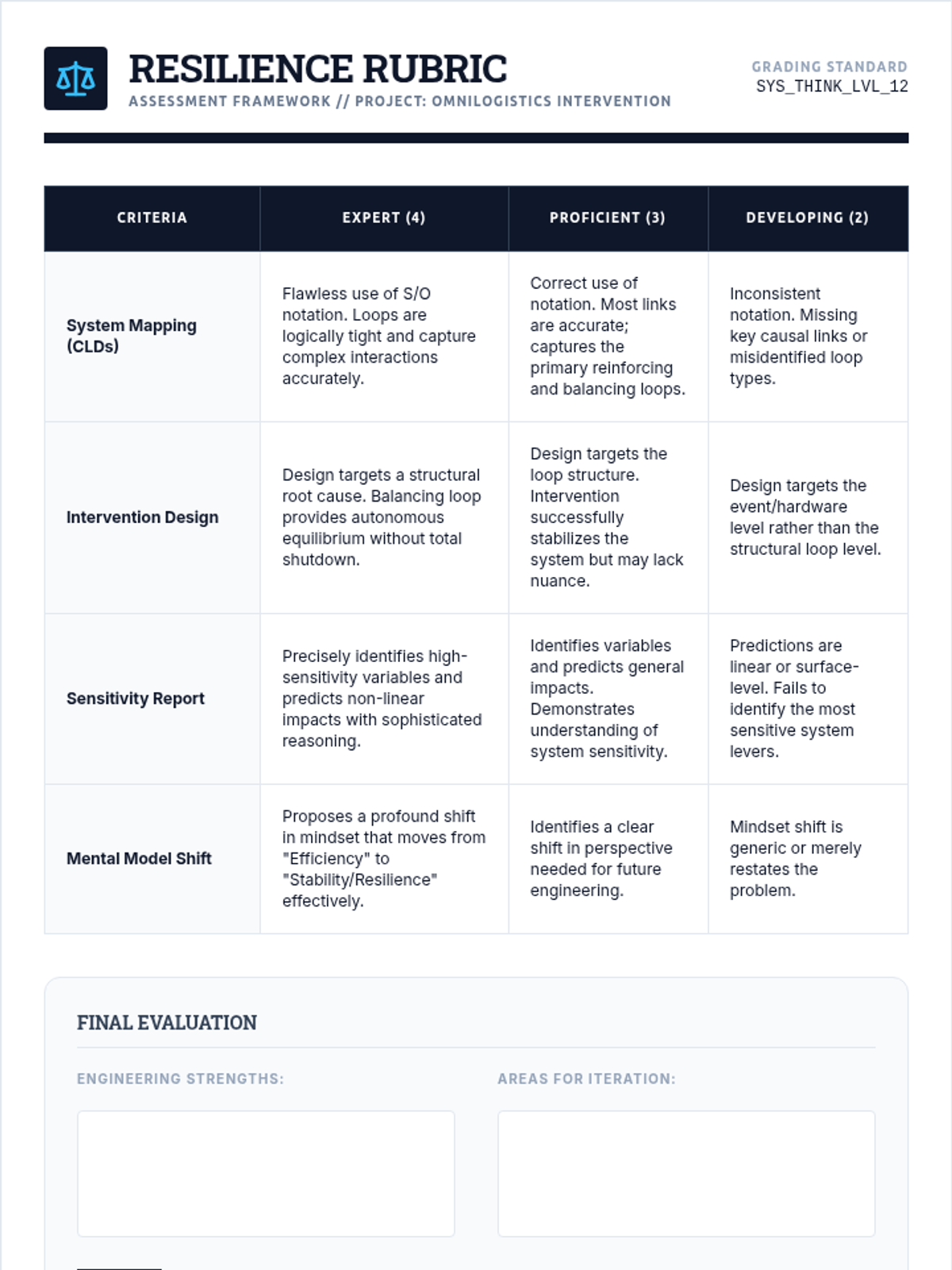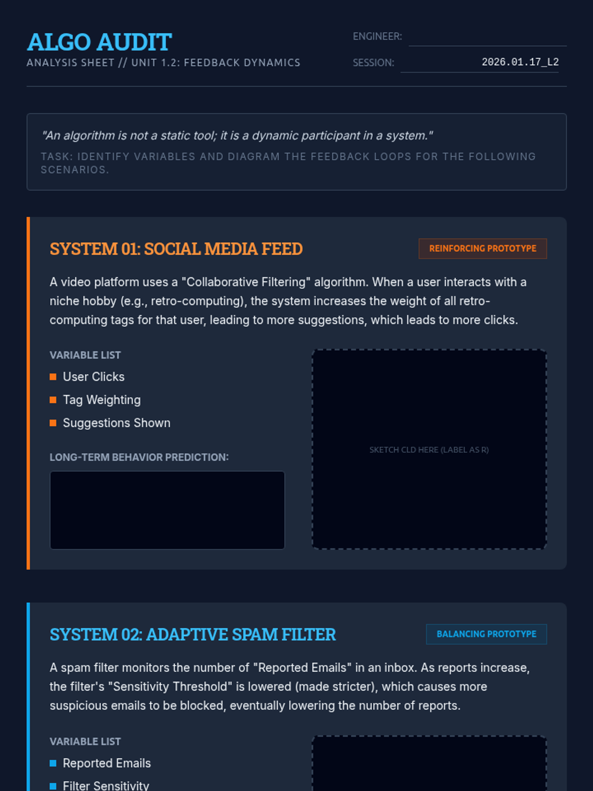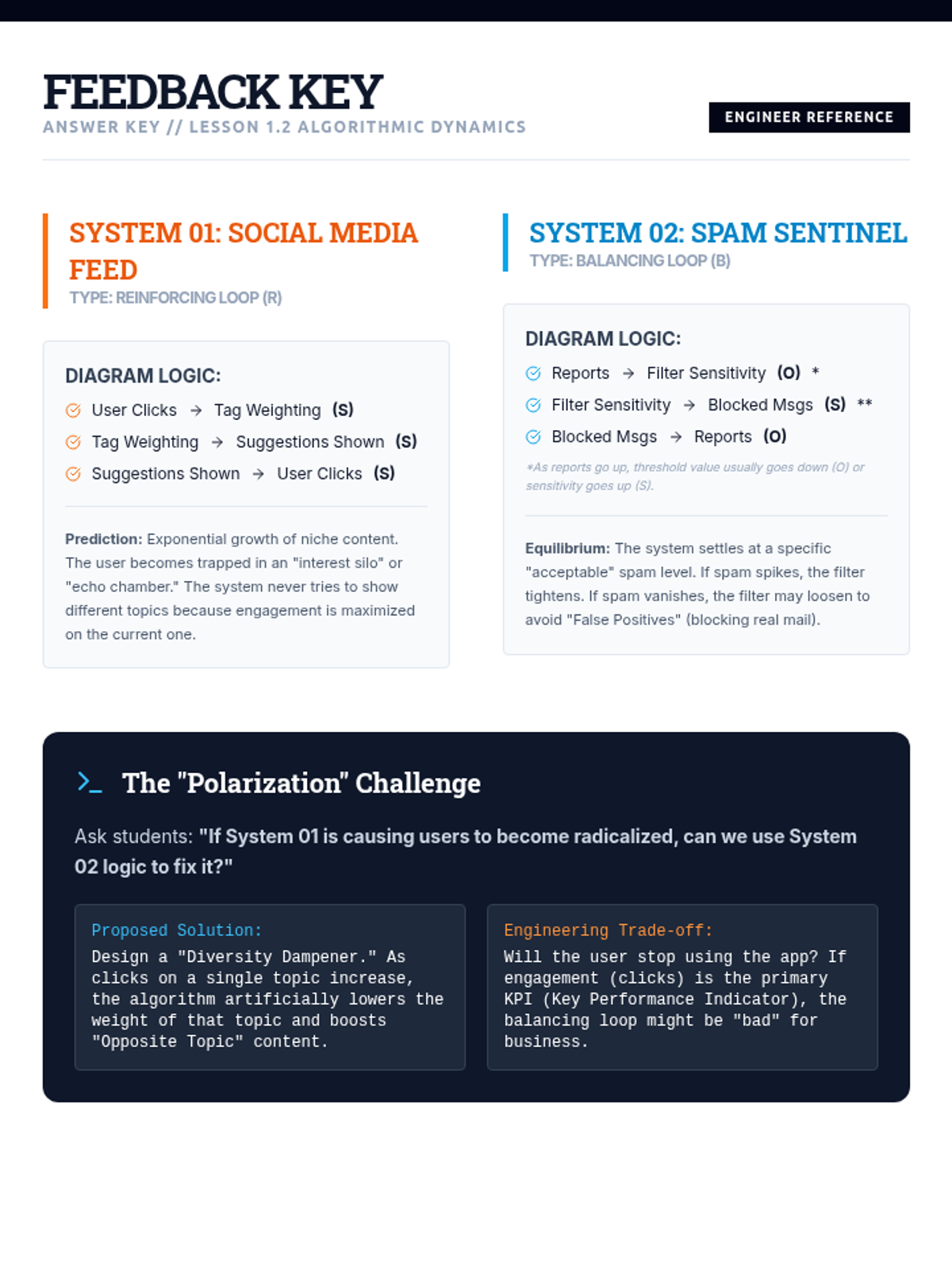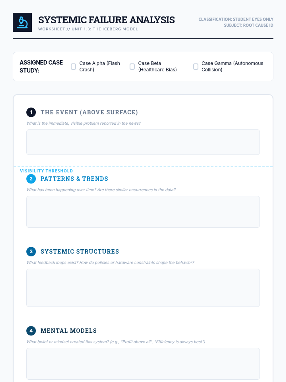 This advanced 12th-grade sequence explores systems thinking through the lens of AI engineering. Students master Causal Loop Diagrams, identify reinforcing and balancing feedback loops, apply the Iceberg Model to systemic failures, and design resilient mitigation strategies for complex algorithmic systems.