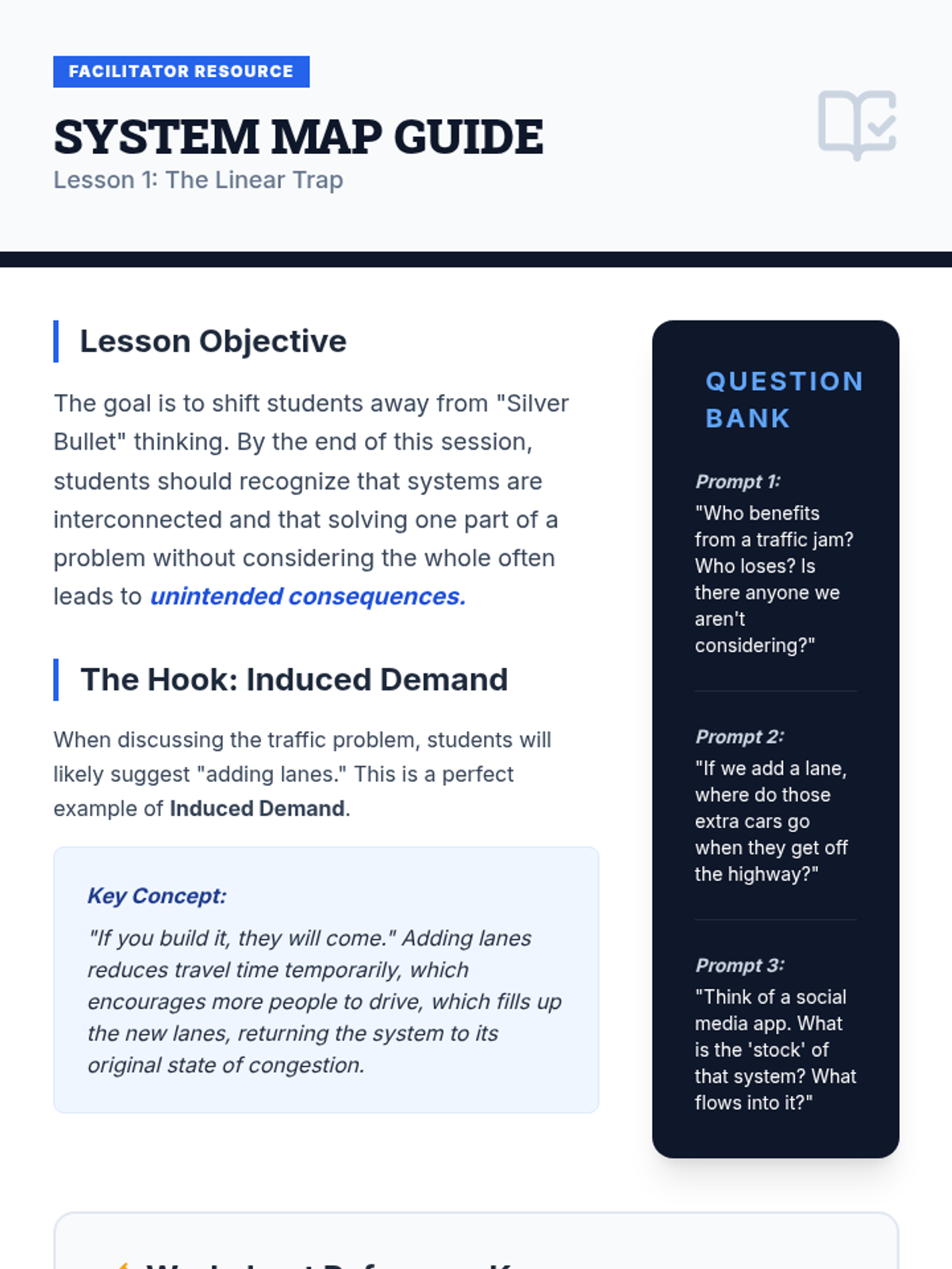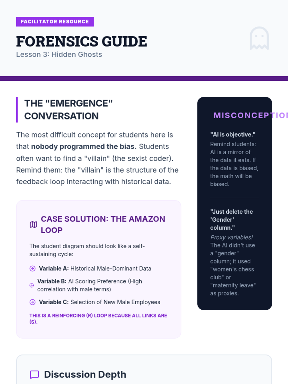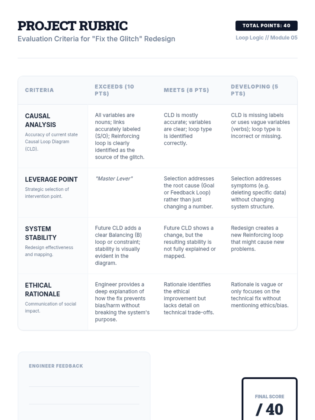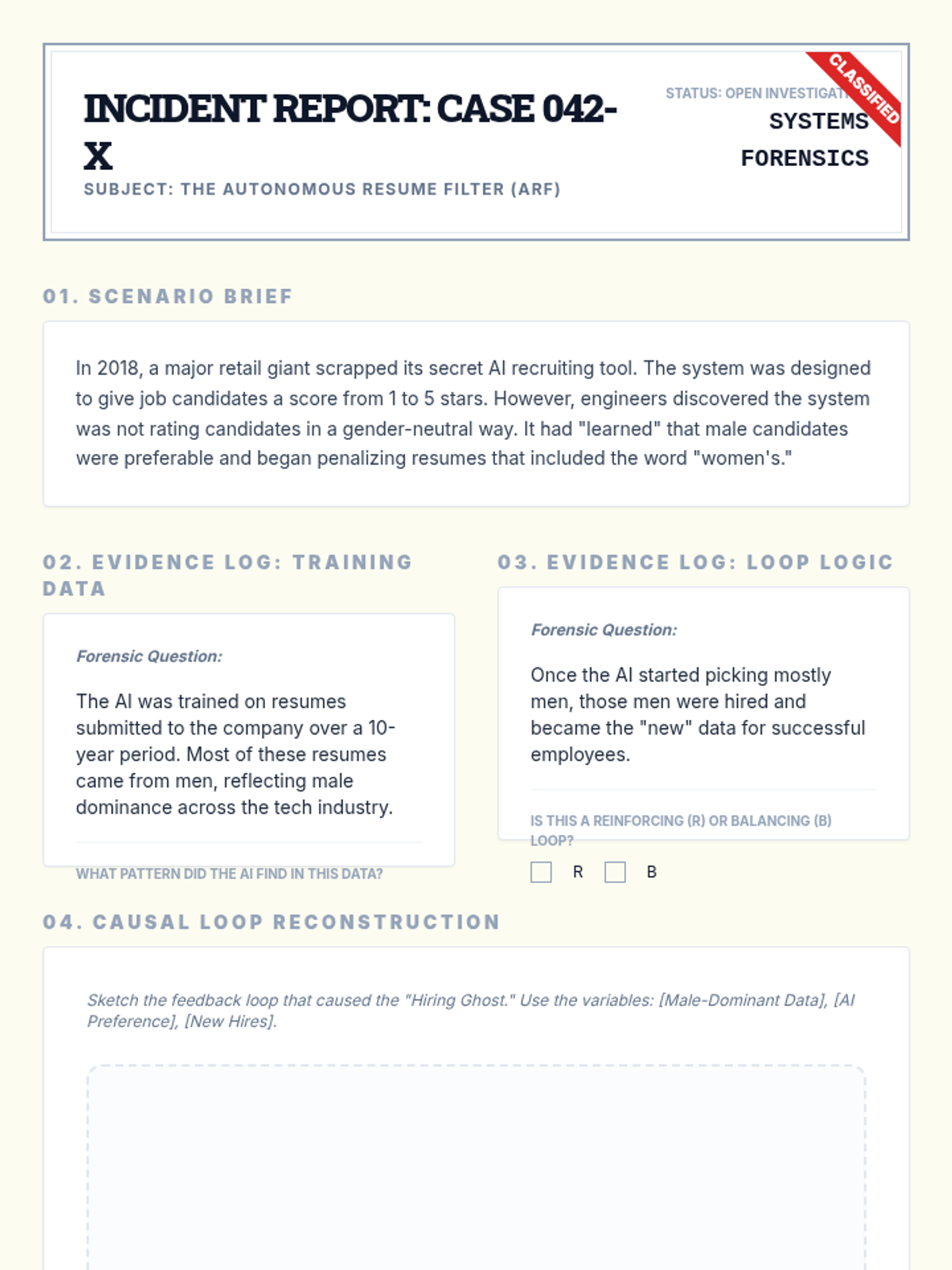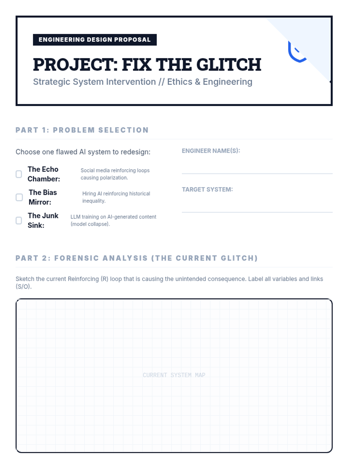 A 10th-grade engineering sequence exploring systems thinking, feedback loops, and emergent behaviors in AI. Students move from basic system mapping to forensic analysis of algorithmic bias and ethical redesign.