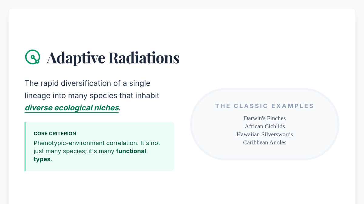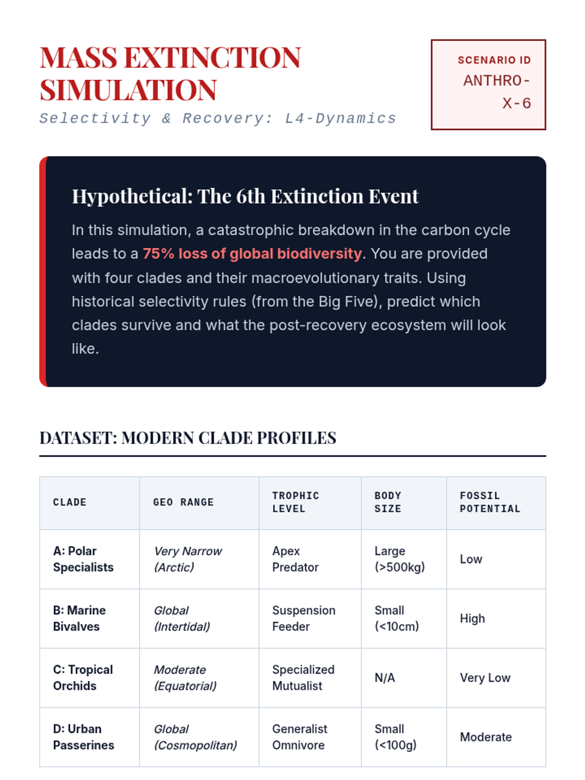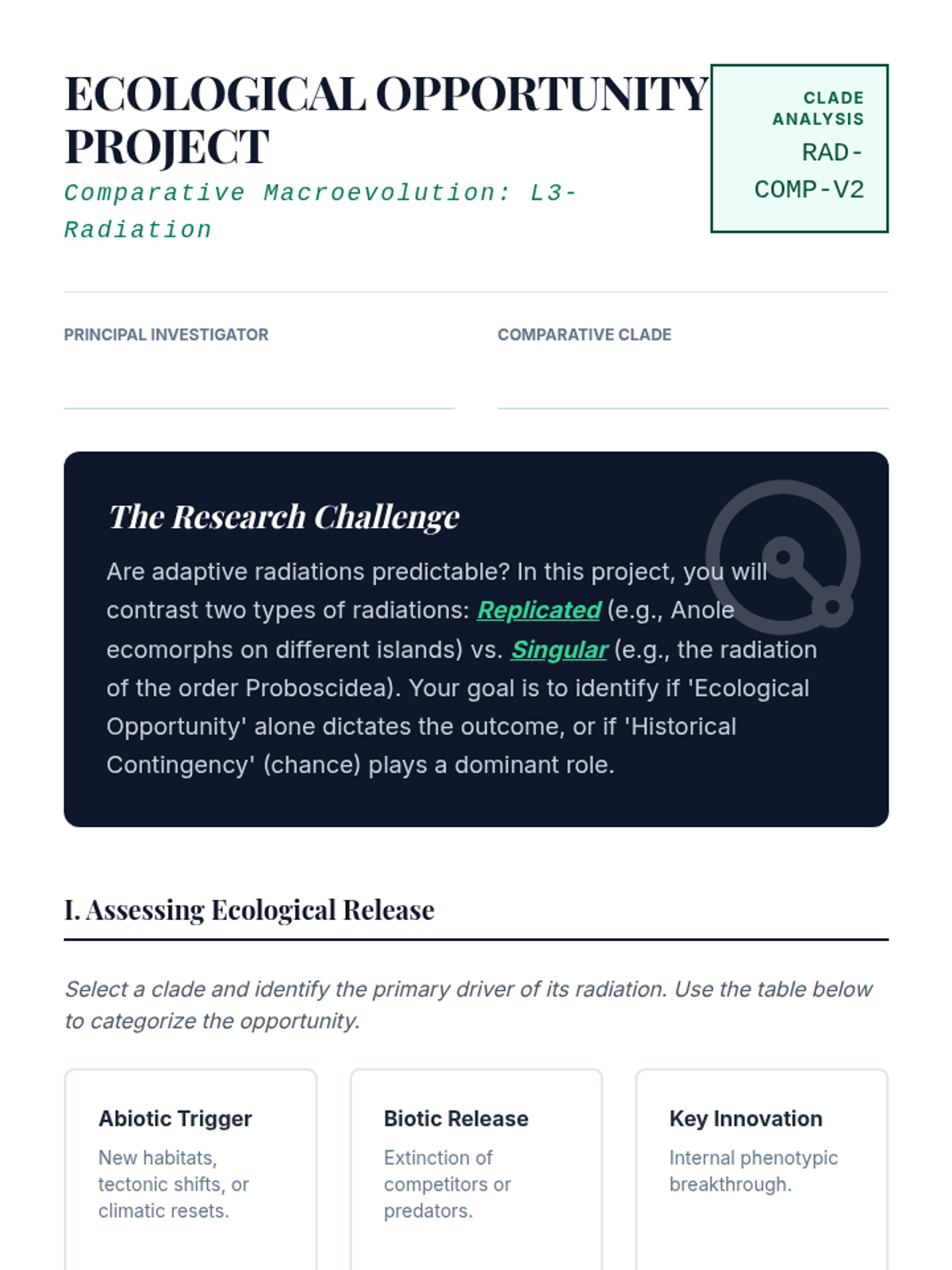 This advanced sequence for graduate students explores the mechanisms of macroevolution, focusing on speciation, extinction, and the tempo of change across geological timescales. Students will synthesize paleontological data with molecular methods to model adaptive radiations and investigate the drivers of mass extinctions.
