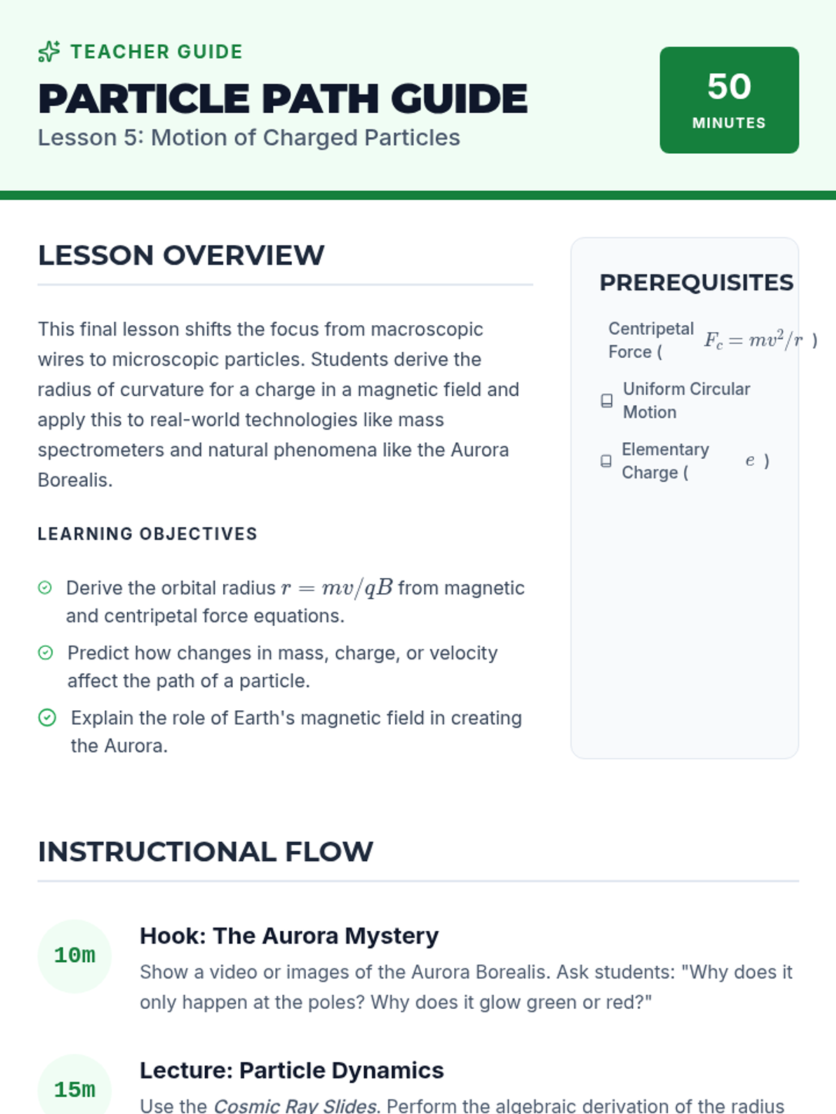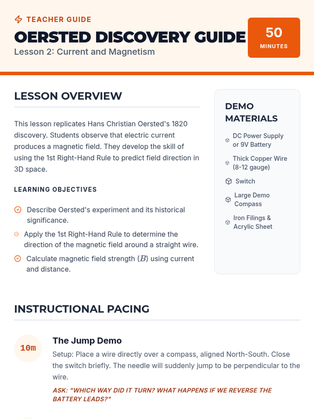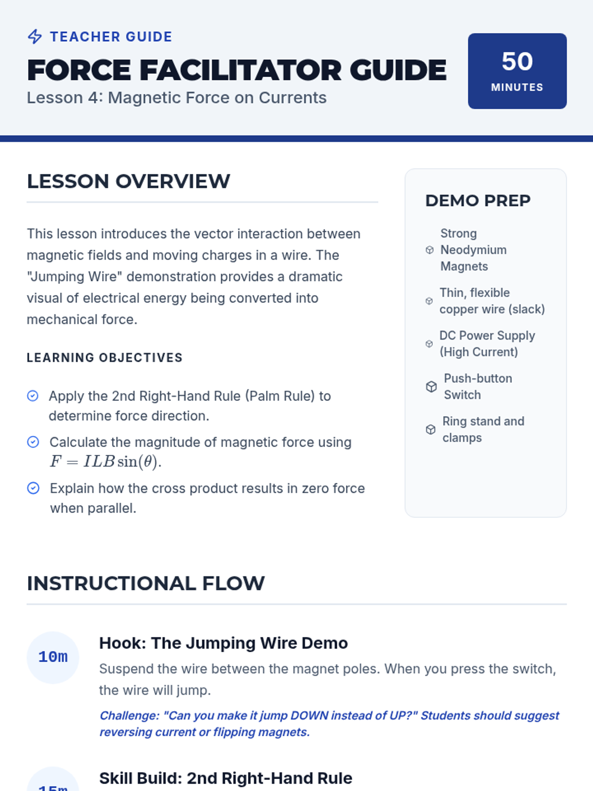 This sequence explores the fundamental relationship between electricity and magnetism. Students investigate magnetic fields around permanent magnets and current-carrying wires, build electromagnets, and calculate the forces exerted on moving charges and wires within magnetic fields.