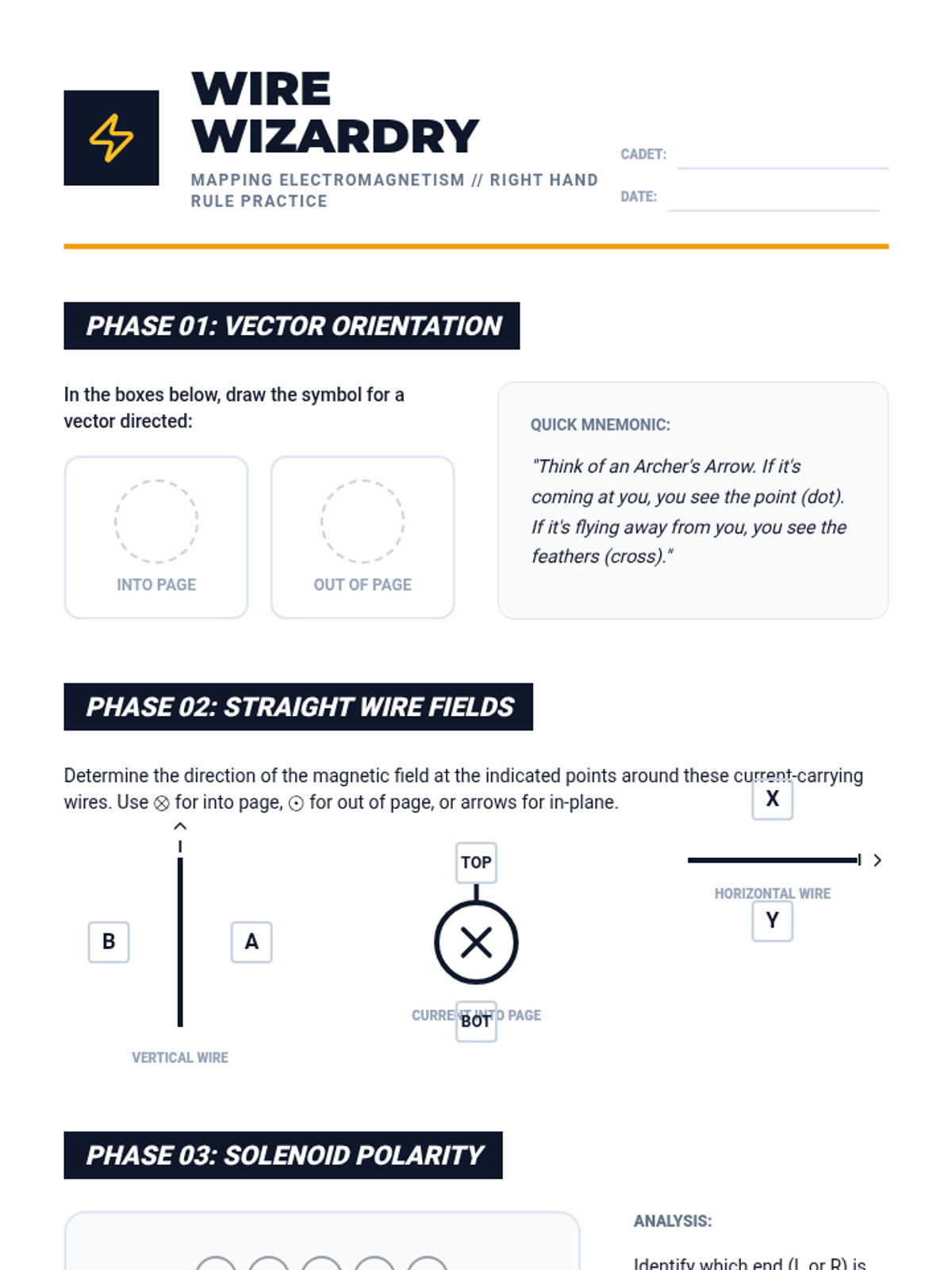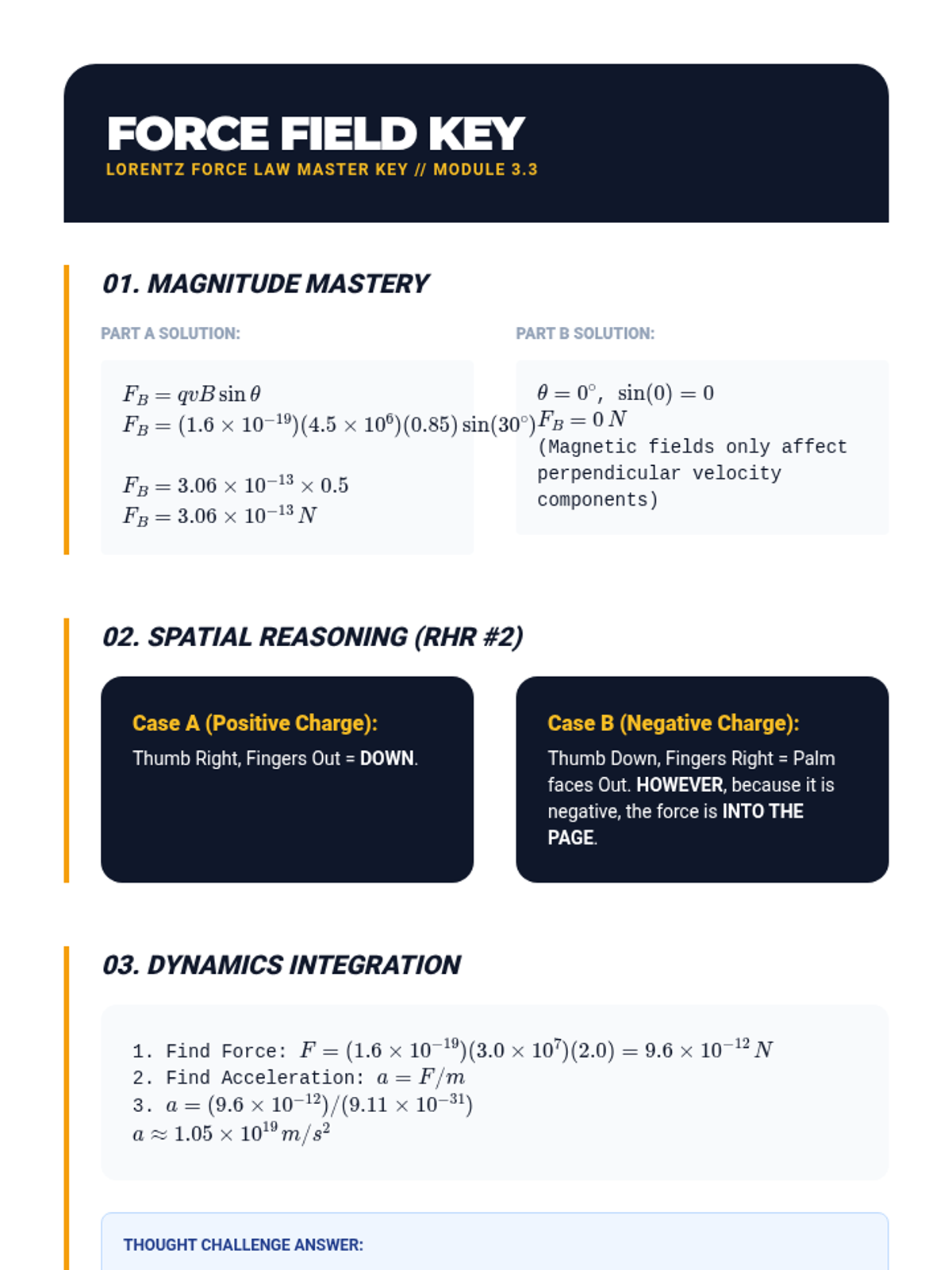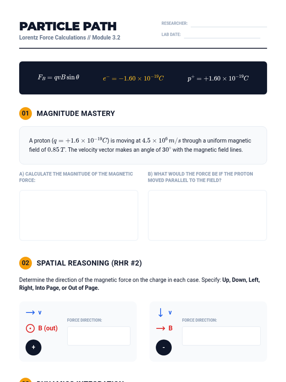 This sequence explores the relationship between electricity and magnetism, focusing on magnetic fields, the Lorentz force on moving charges, and practical applications in mass spectrometry. Students develop 3D spatial reasoning skills through the Right Hand Rule and apply kinematic principles to magnetic deflection.