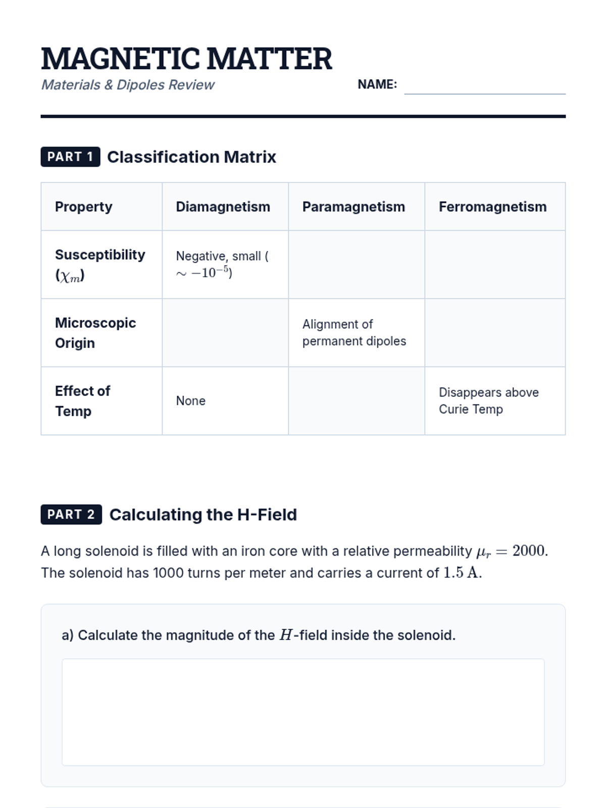 An undergraduate-level physics sequence exploring the fundamental principles of magnetostatics, including Lorentz forces, field generation via Biot-Savart and Ampere's Laws, and the properties of magnetic materials.
