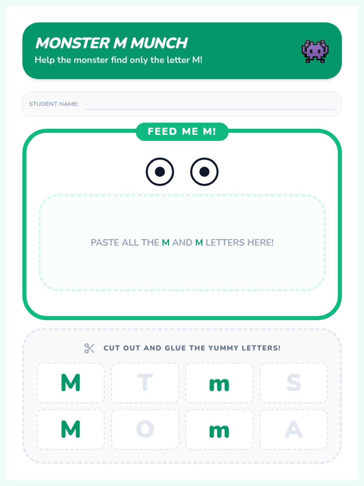 A foundational three-day introduction to the letter M, specifically designed for young learners with fine motor challenges. The sequence uses a 'Mighty Monster' theme to engage students through visual aids, large-print tracing, and initial sound identification.