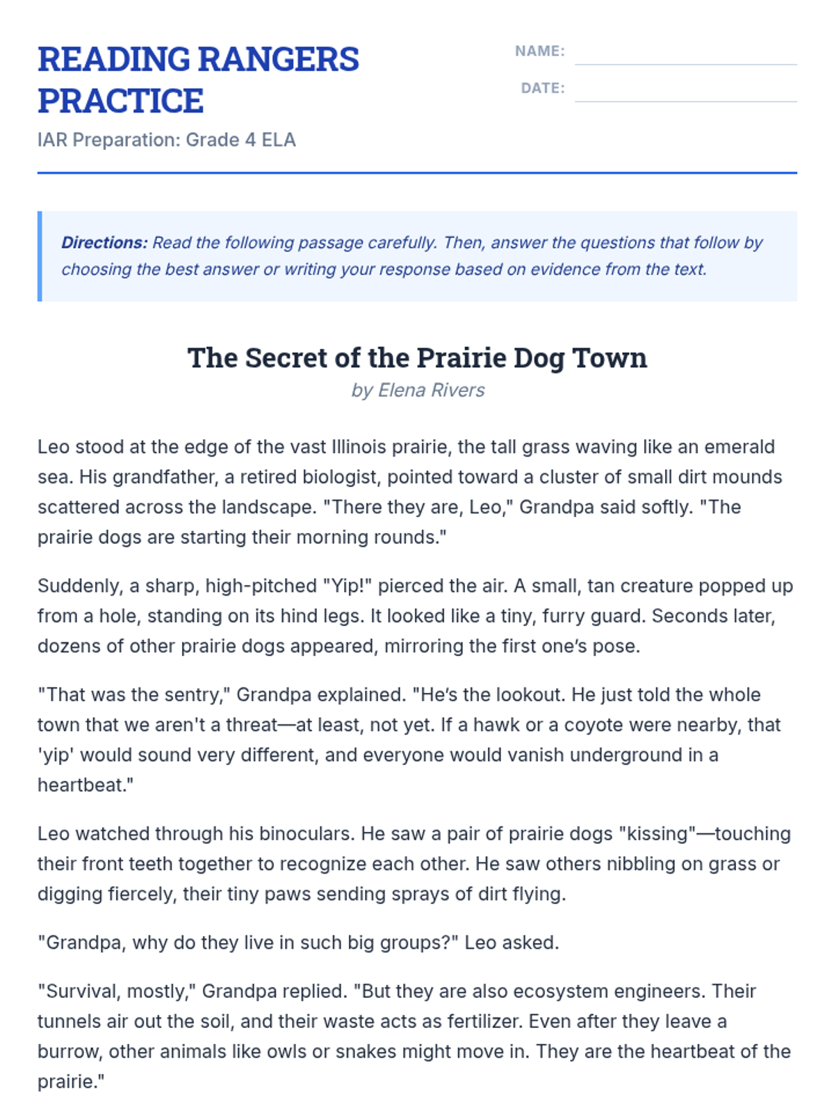 A comprehensive test preparation sequence designed specifically for the Illinois Assessment of Readiness (IAR). This unit provides 4th-grade students with targeted practice in English Language Arts and Mathematics, featuring realistic question types and formats they will encounter on the state exam.
