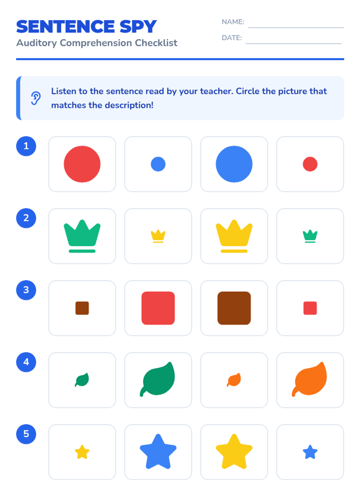 A series of lessons designed to improve listening and spoken language processing for young learners, focusing on auditory comprehension and descriptive language.