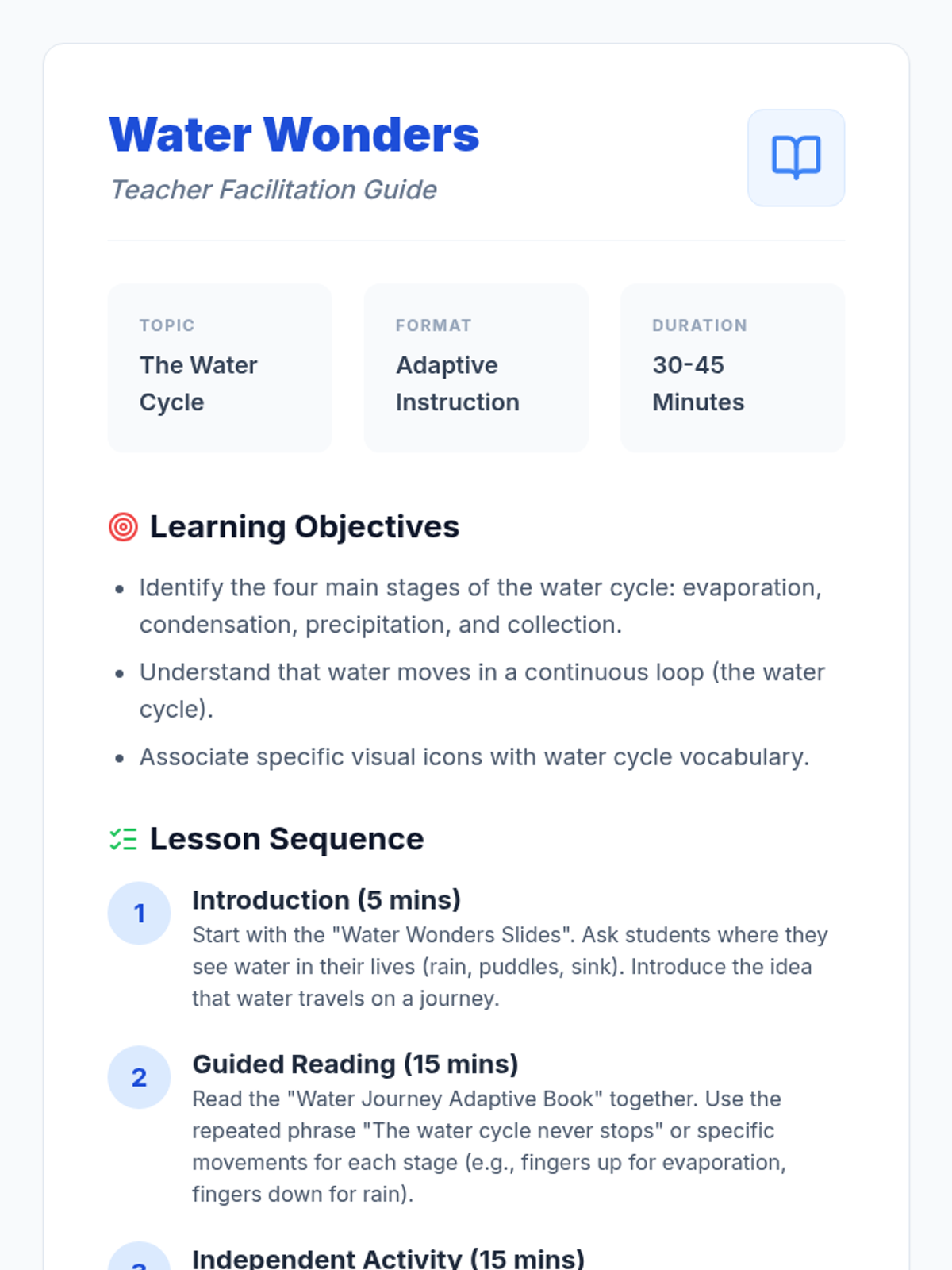 A series of lessons exploring the natural cycles of Earth, focusing on simplified concepts and accessible learning materials.