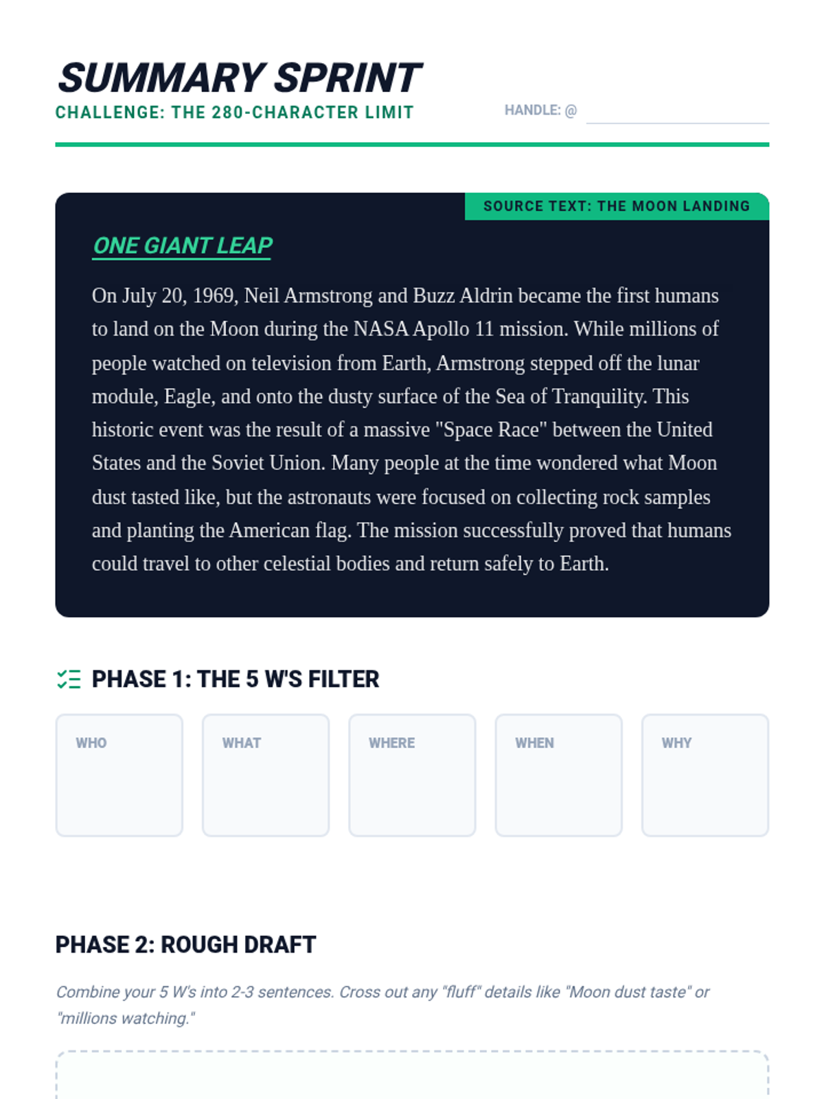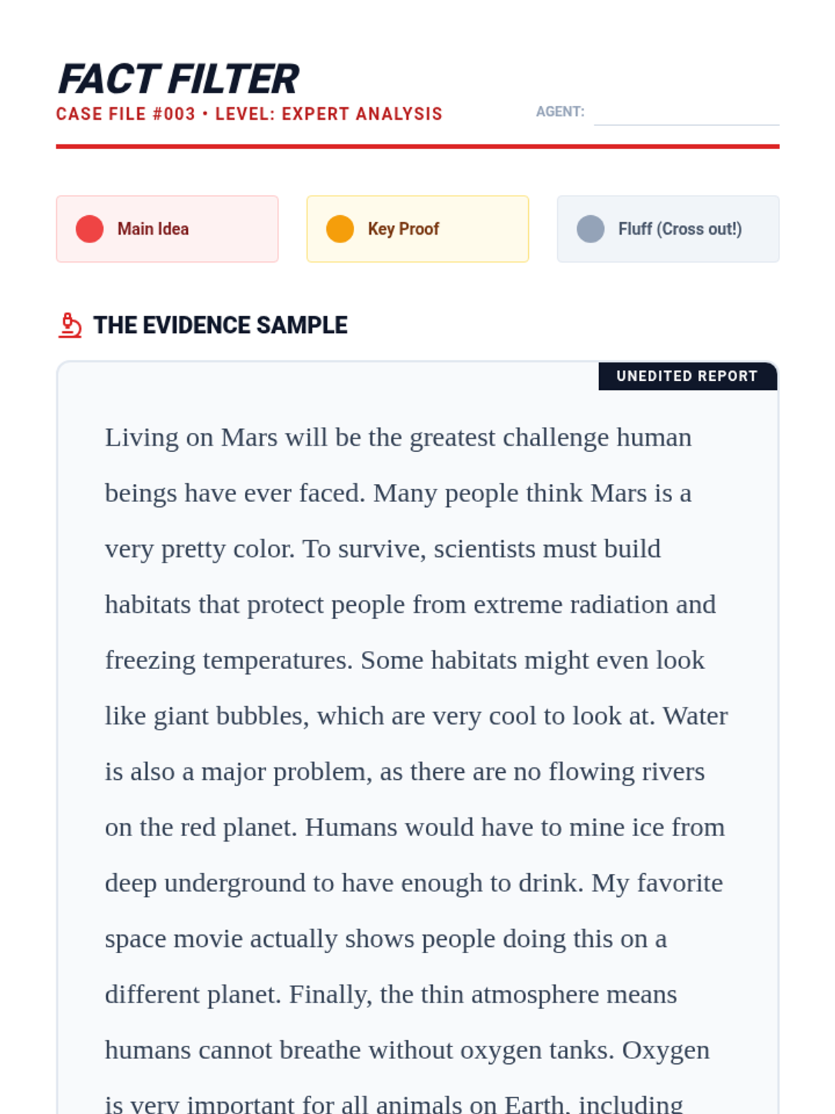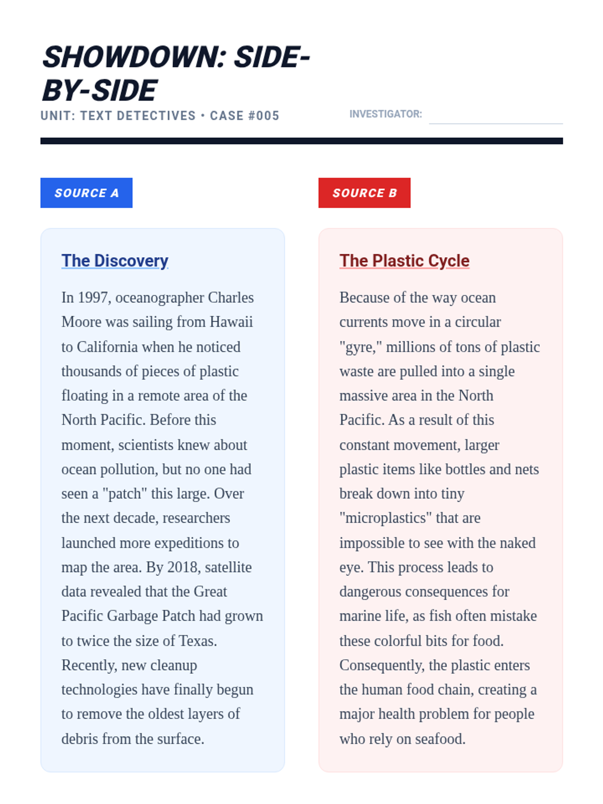 A comprehensive 8th-grade reading sequence designed for intermediate ELL students to master identifying main ideas and analyzing non-fiction text structures. Through a journalist-themed lens, students move from identifying surface-level text features to critically comparing how different structures convey central ideas.