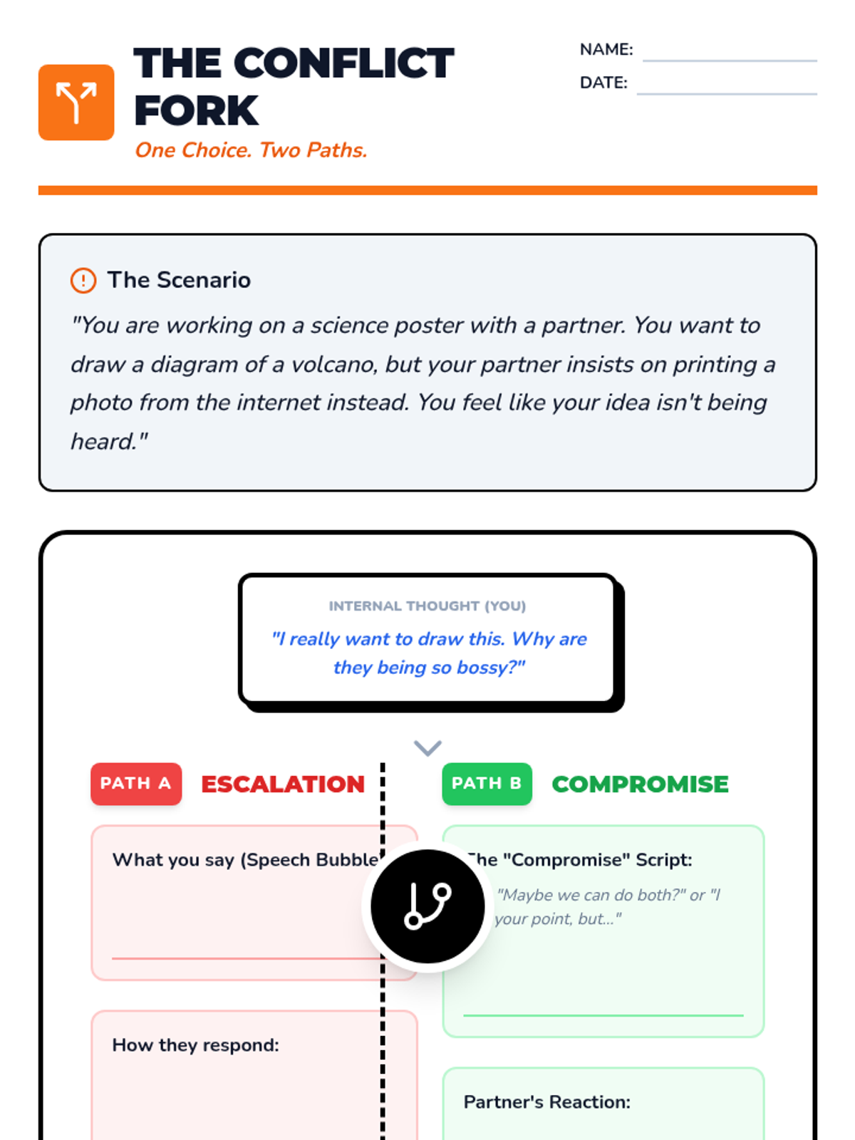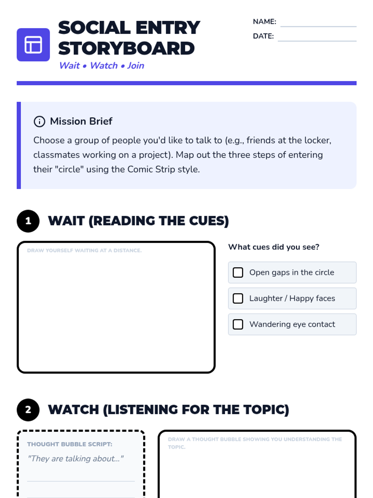 A specialized sequence for 8th-grade students using Comic Strip Conversations to navigate social interactions, resolve conflicts, and understand the distinction between thoughts and speech. Students move from learning visual social narratives to participating in a live social simulation.
