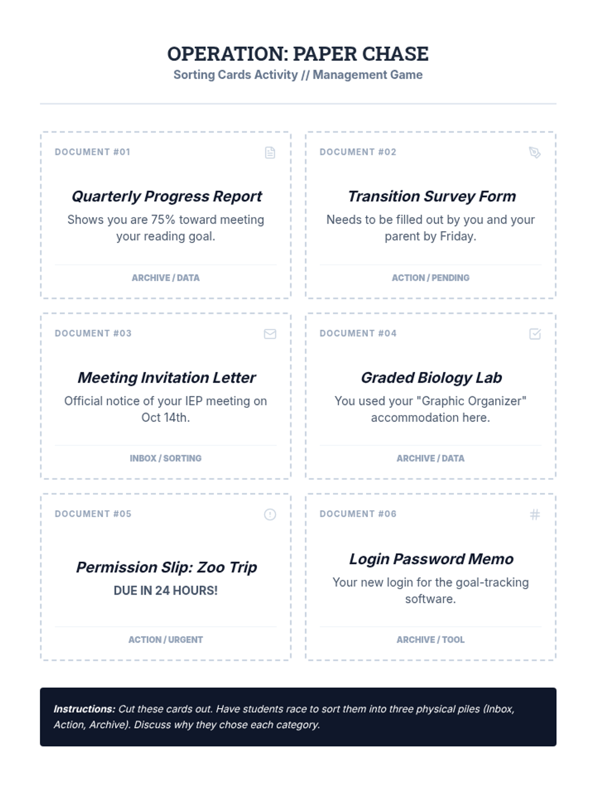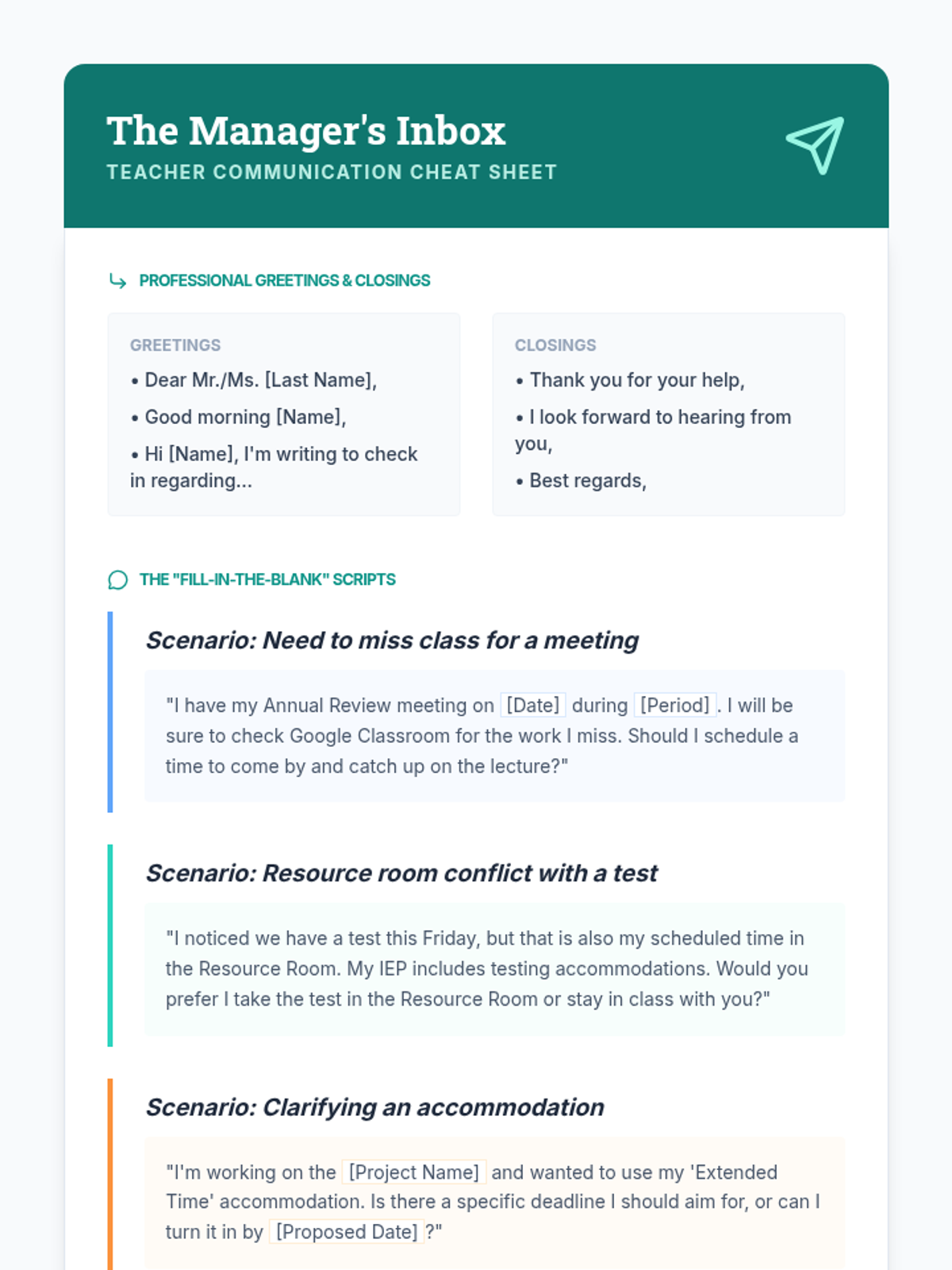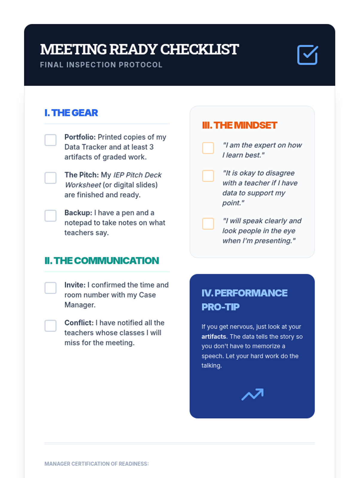 A 10th-grade sequence focused on empowering students to manage their own IEP/504 timelines, accommodations, and administrative responsibilities through the lens of project management. Students transition from passive recipients of services to active managers of their educational milestones.