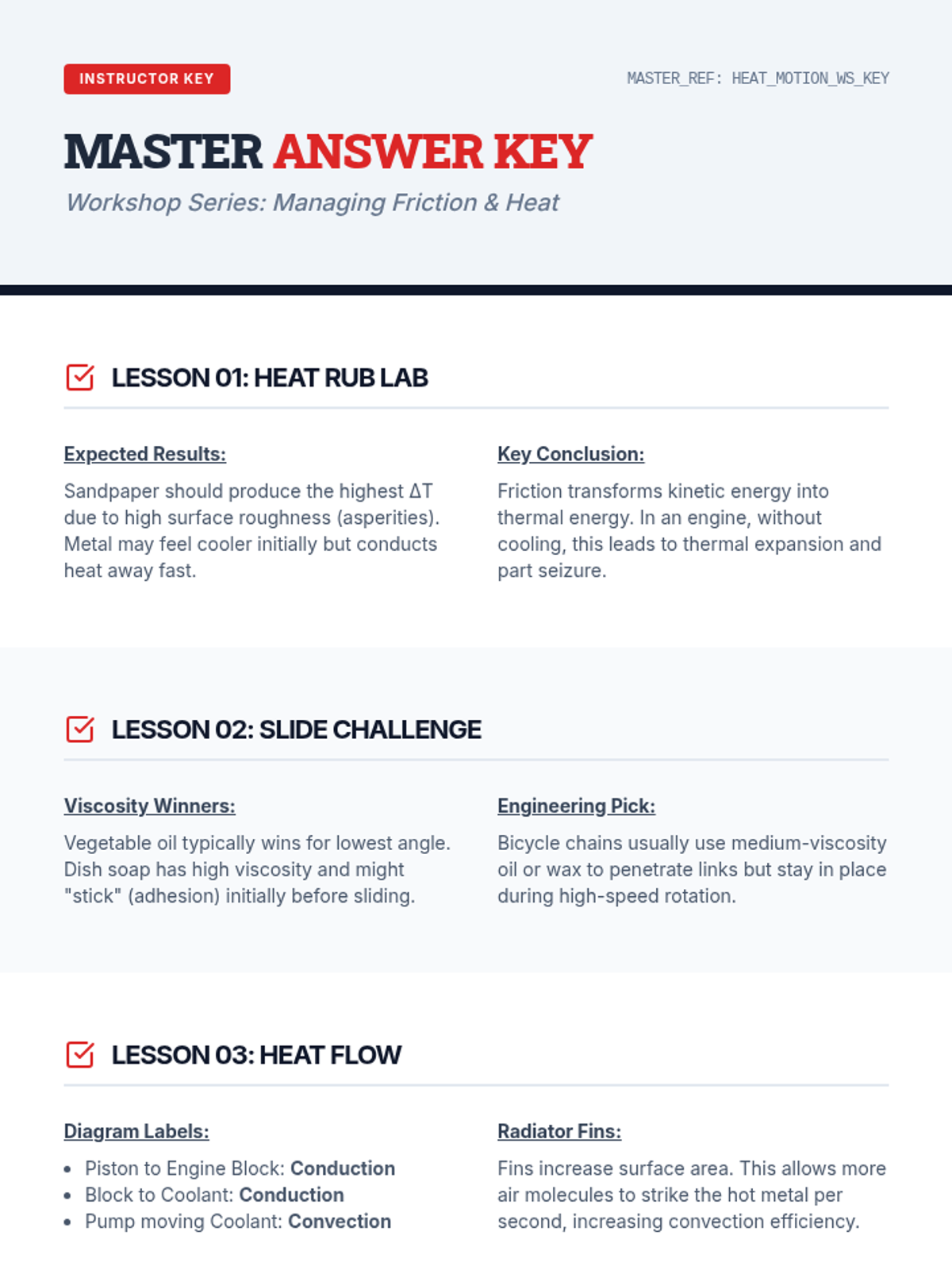 A 5-lesson sequence for 6th-grade students exploring the relationship between friction, heat, and mechanical engineering. Students investigate heat generation, lubrication, thermal management systems, and predictive maintenance.