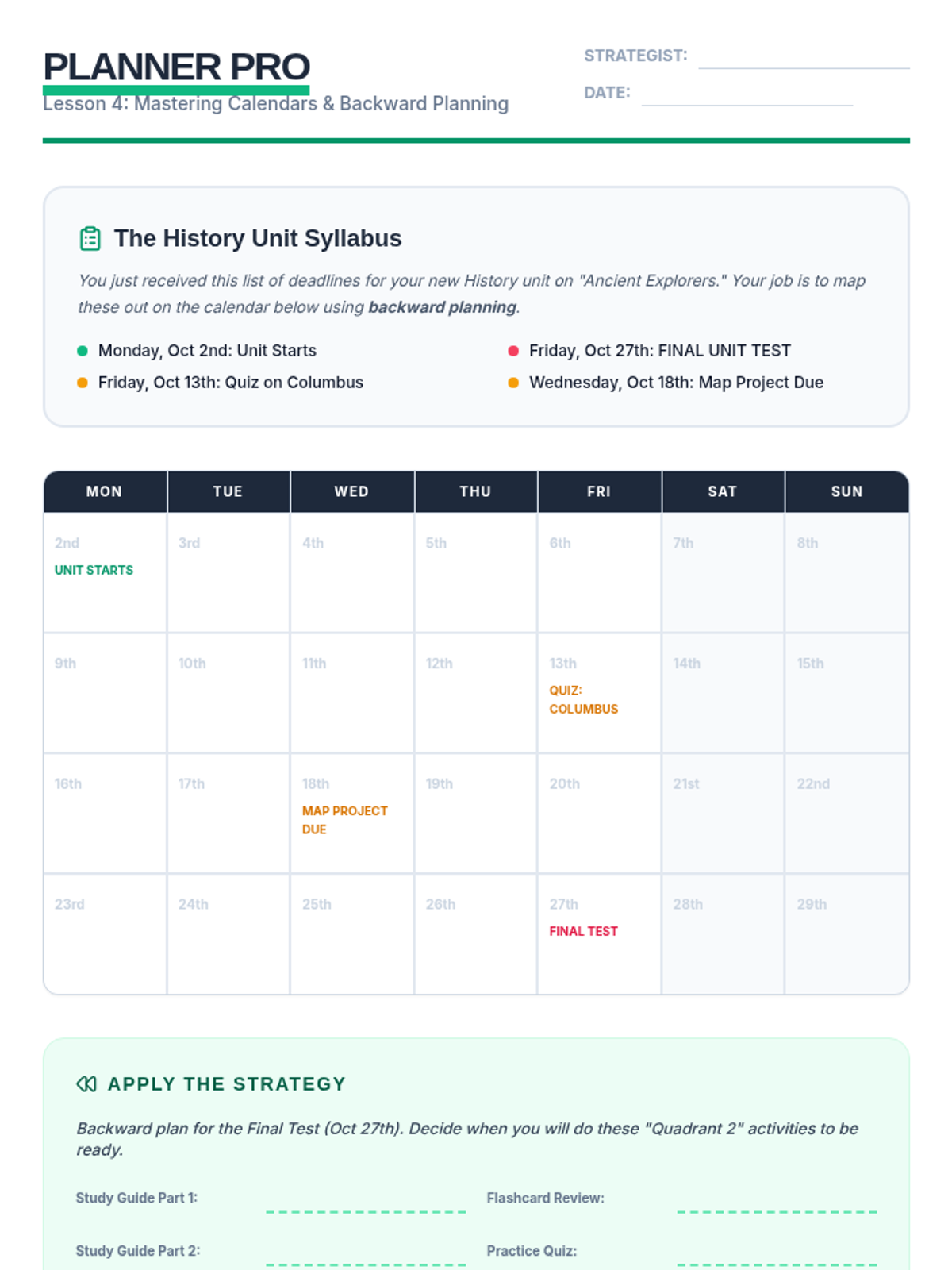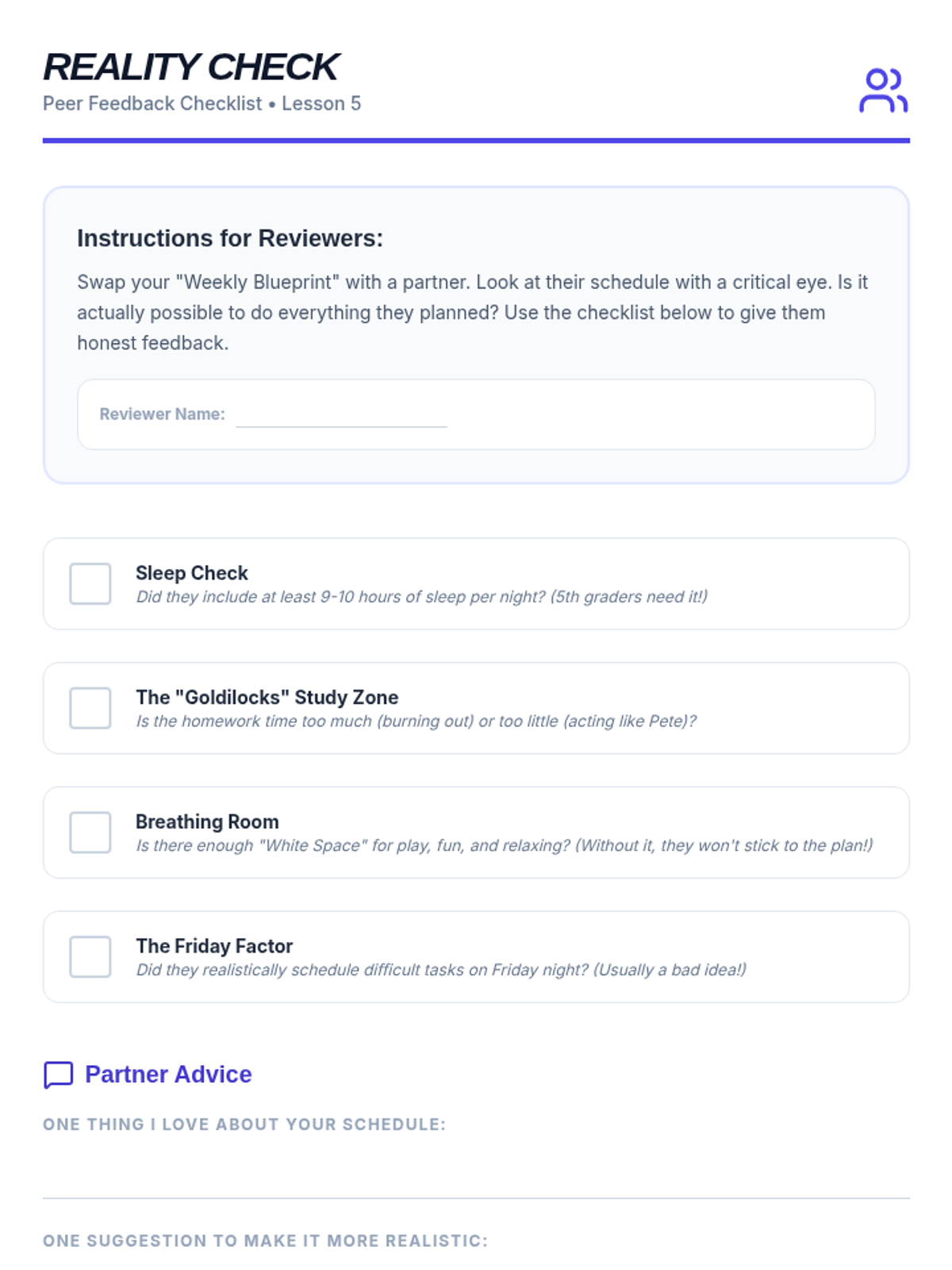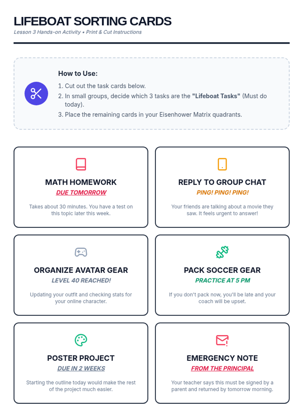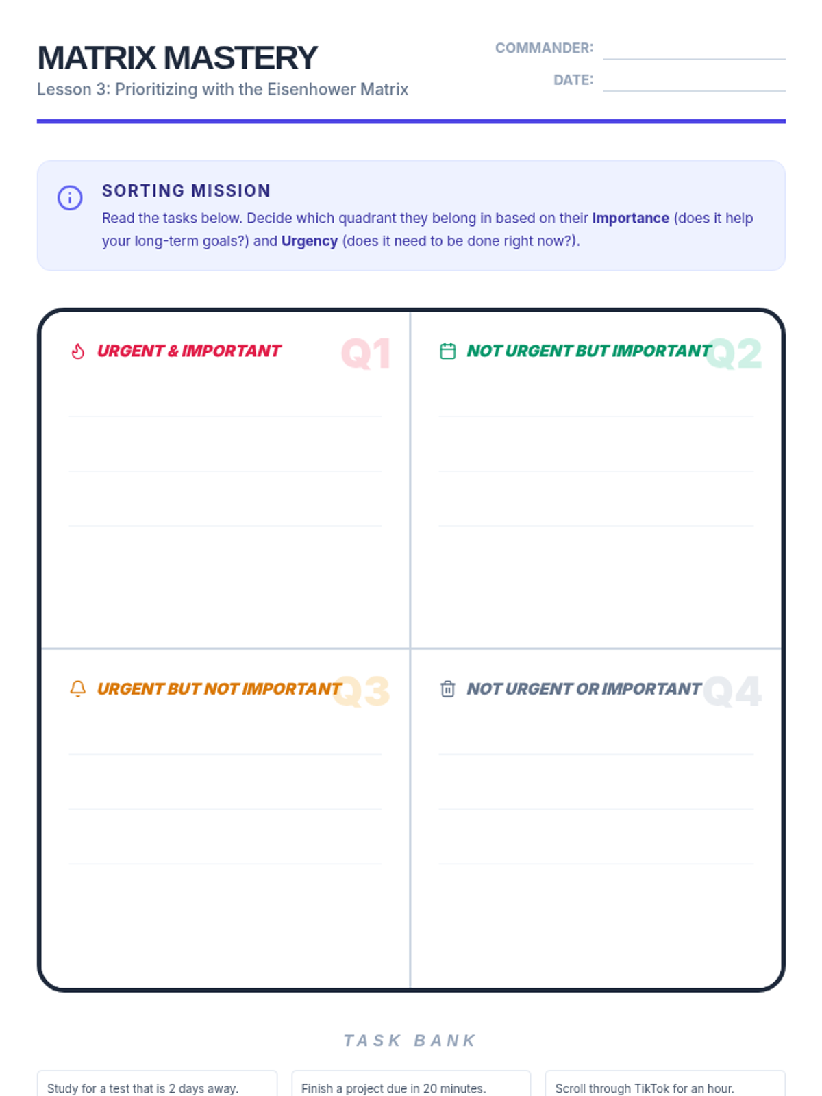 A comprehensive sequence for 5th-grade students focusing on executive function skills, time management, and task organization. Students move from analyzing case studies to creating their own actionable weekly schedules.