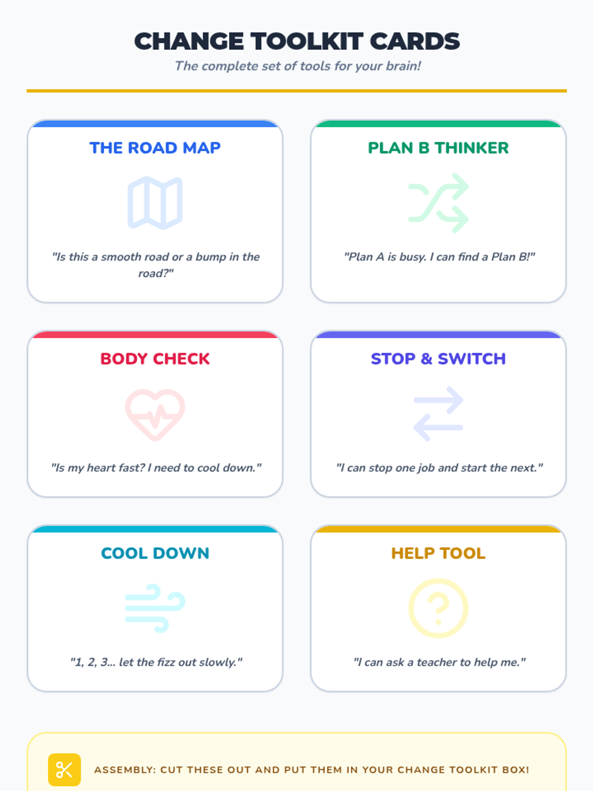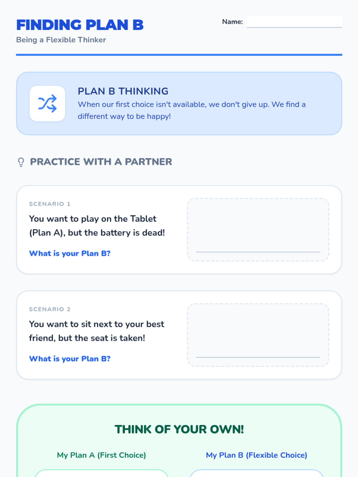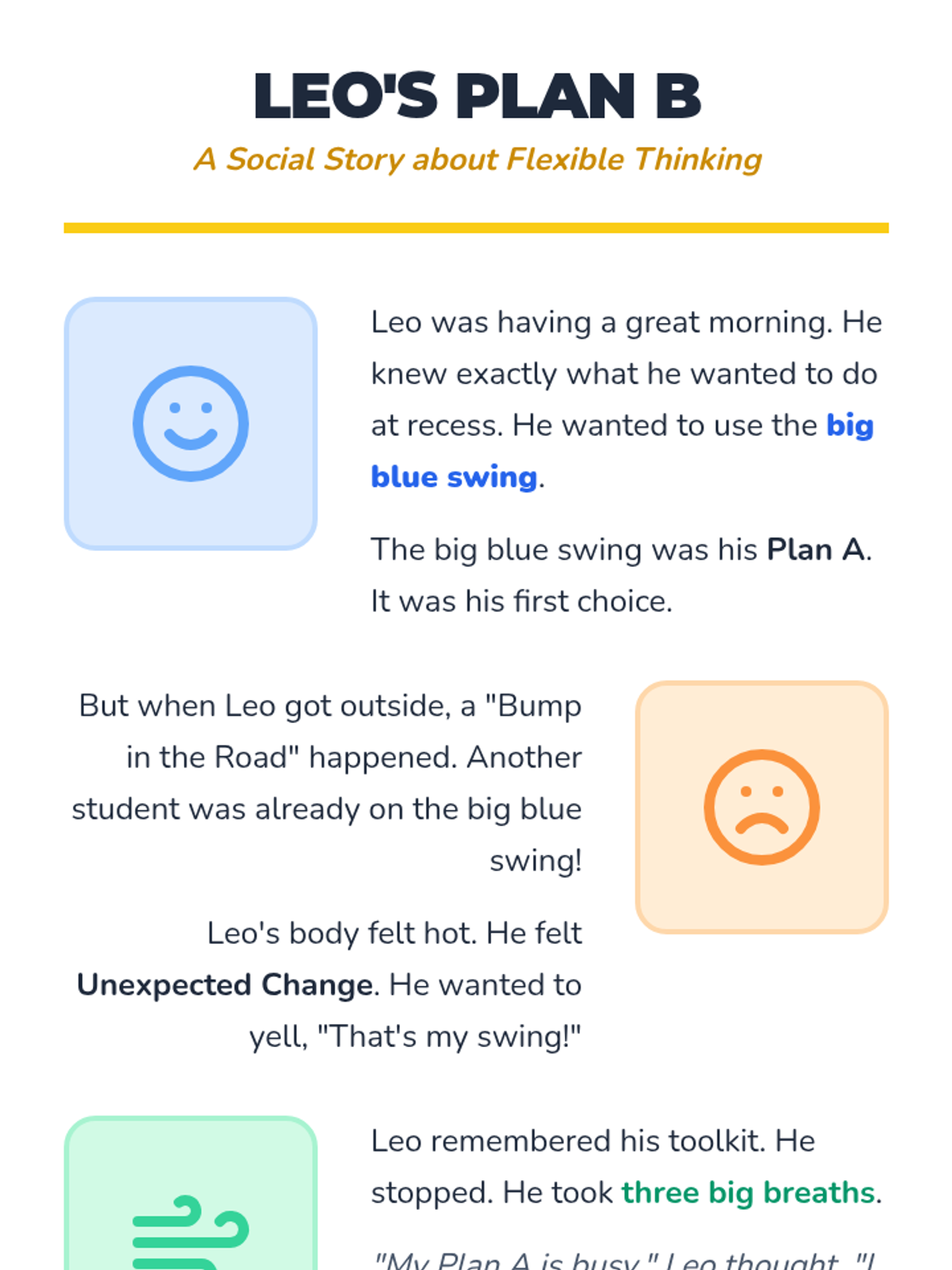 This sequence helps 2nd-grade students navigate unexpected changes and transitions. Using social stories and practical coping tools, students learn to identify their feelings, practice calming strategies, and develop flexible 'Plan B' thinking to handle life's 'bumps in the road'.