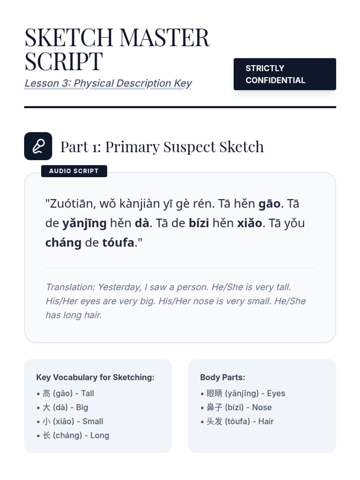 A comprehensive sequence for 9th Grade Mandarin learners focused on family kinship, possession, and physical descriptions through an inquiry-based listening curriculum. Students build from basic terms to synthesizing complex oral histories.
