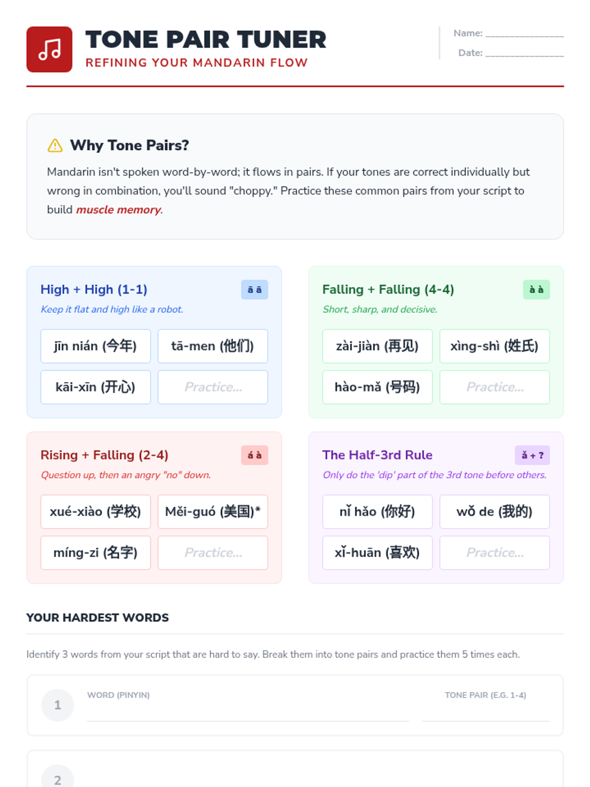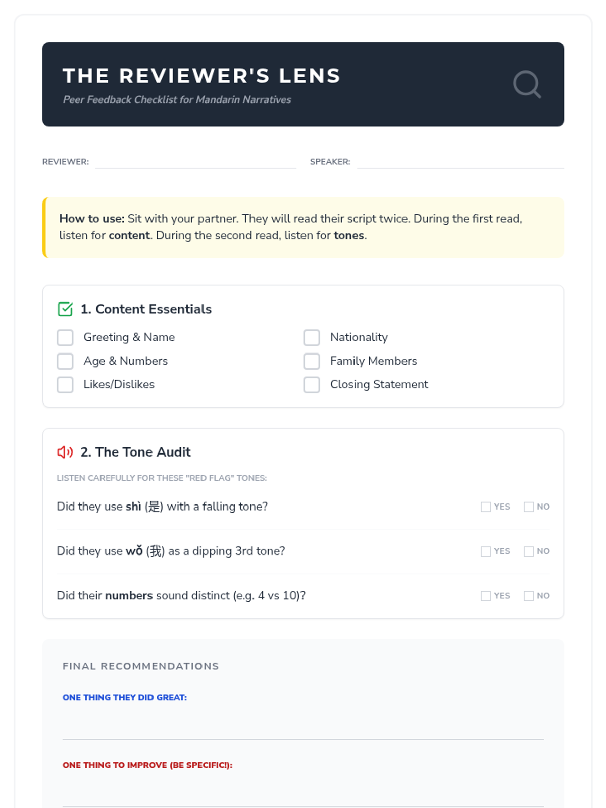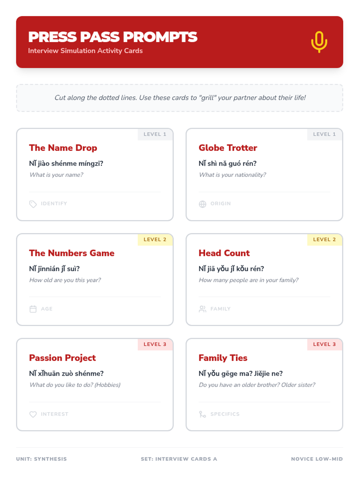 This final sequence for 9th-grade Mandarin students synthesizes foundational phonetics, greetings, numbers, and family vocabulary. Students transition from isolated sentences to a coherent personal narrative through project-based learning, culminating in a professional video introduction (vlog) for a hypothetical host family.