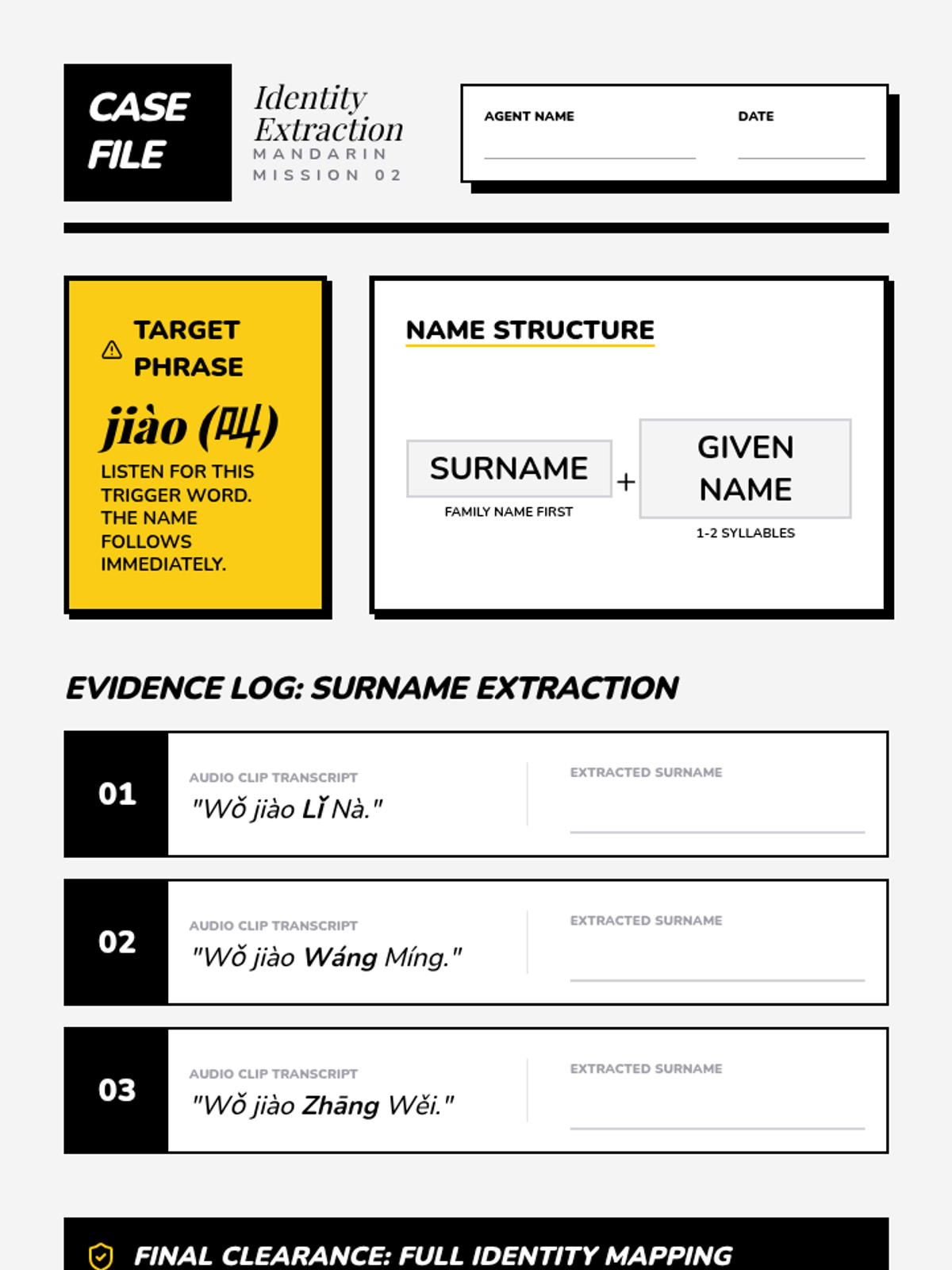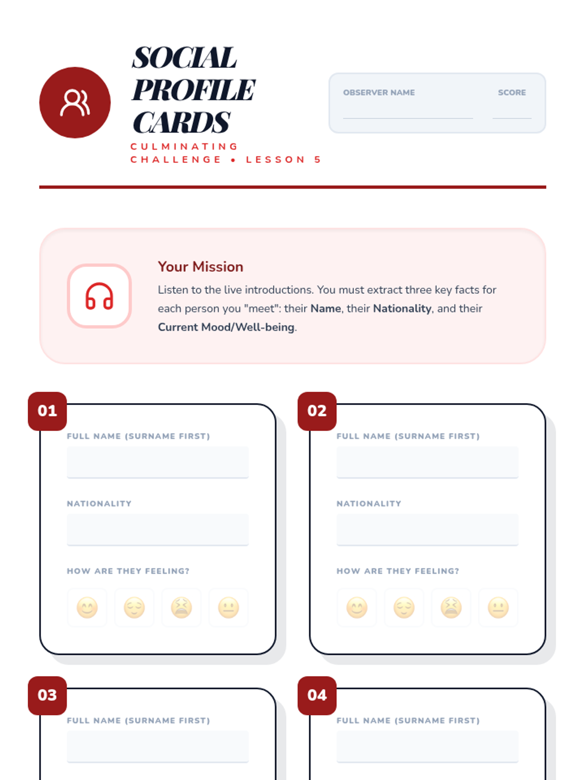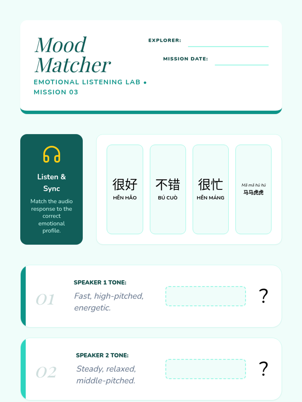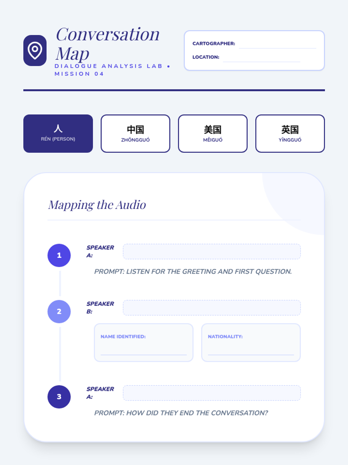 A 5-lesson sequence for 6th-grade students focusing on beginner Mandarin listening skills for greetings and introductions. Students progress from basic hellos to complex introduction dialogues, emphasizing formality, tone, and information extraction.