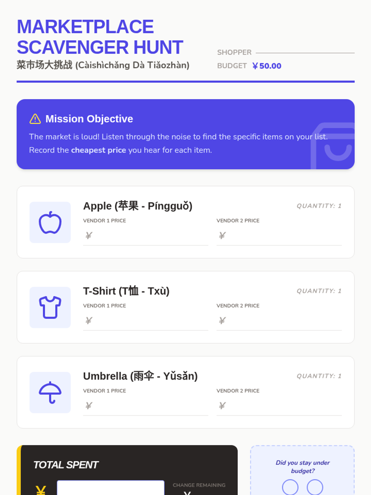 A beginner-level Mandarin sequence focused on functional listening skills for real-world scenarios. Students move from basic action verbs to navigating restaurants, directions, and markets through immersive simulations.