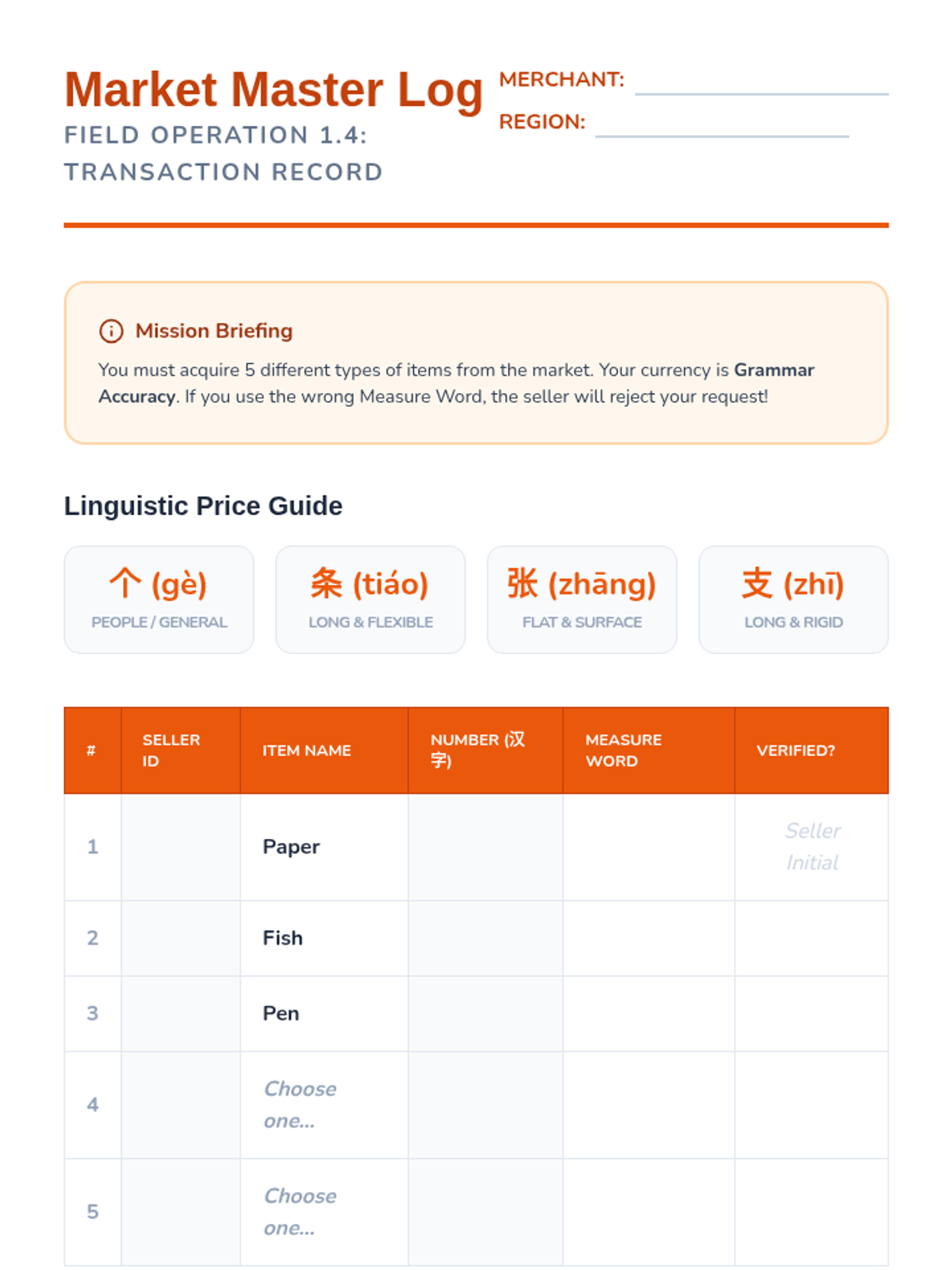 This sequence focuses on the cognitive processing of numerical data in Mandarin Chinese, moving from basic digits to complex phone numbers, calendar dates, clock times, and marketplace currency. Students will develop rapid auditory recognition through gamified scenarios like emergency dispatch, time travel, and transit scheduling.