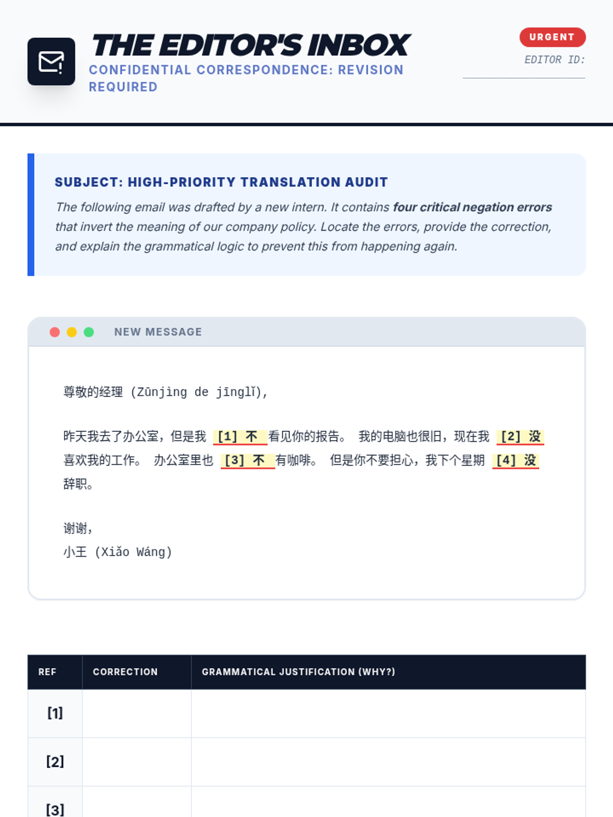 A comprehensive 10th-grade Mandarin Chinese grammar sequence focusing on the nuances of negation. Students master the distinct uses of 'bù' and 'méi' through case studies, creative writing, and linguistic analysis.