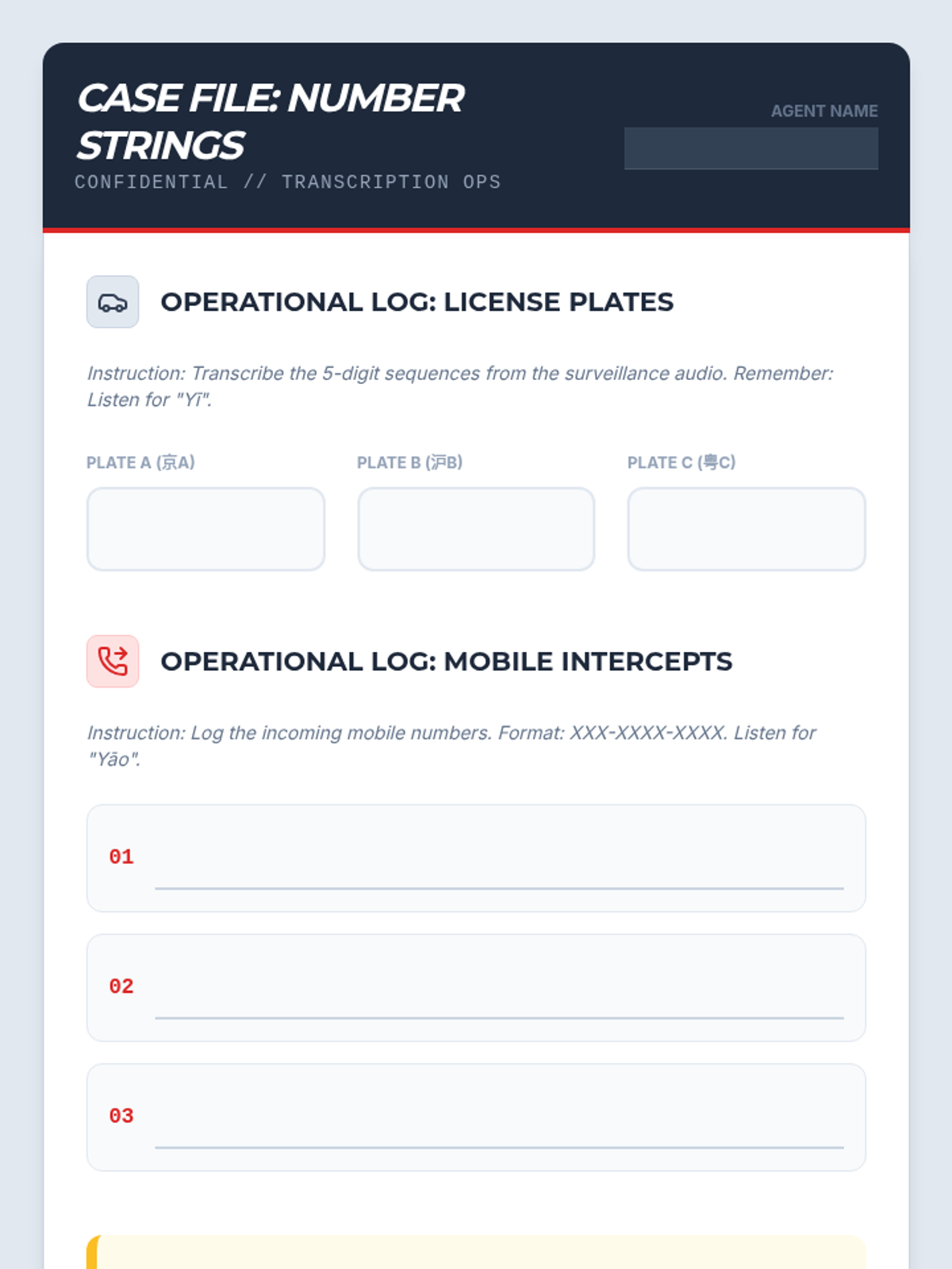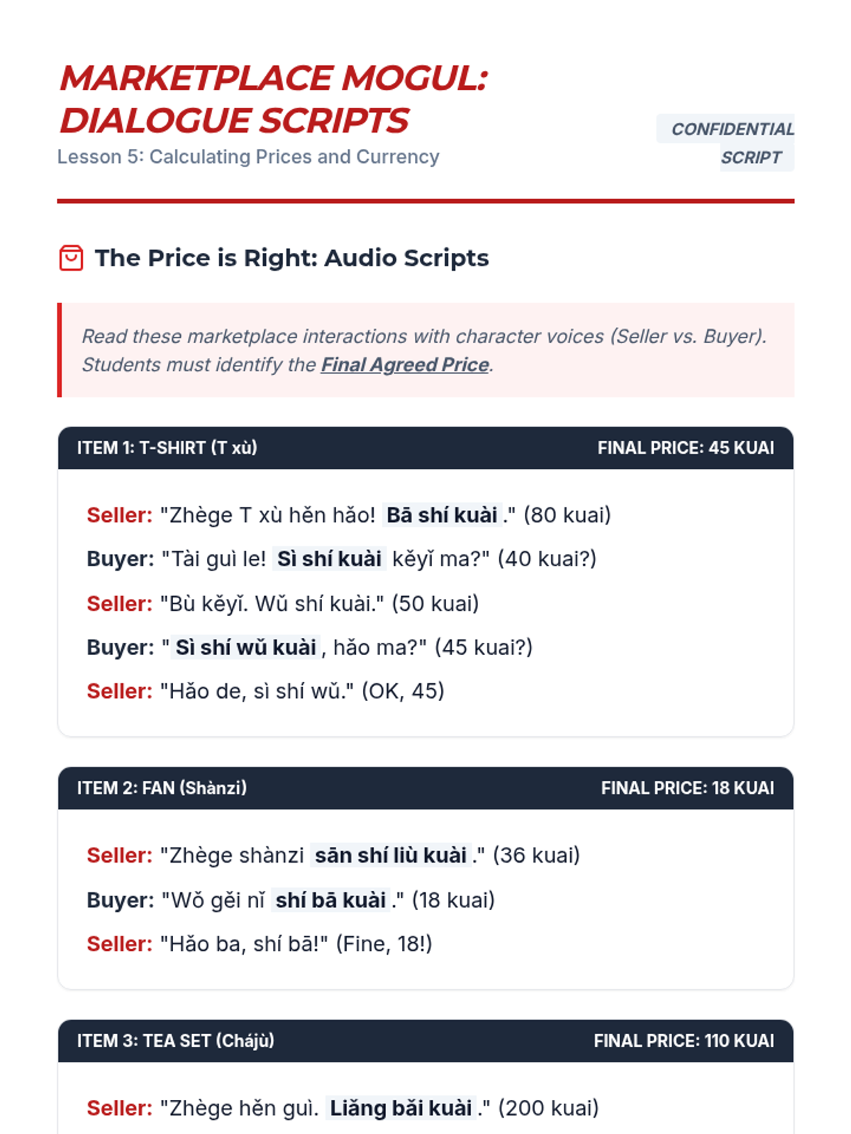 A 9th-grade Mandarin Chinese listening sequence focused on identifying and processing numerical data, from basic digits to complex schedules and marketplace negotiations. Students master the logical structure of Chinese numbers through game-based and immersive listening challenges.